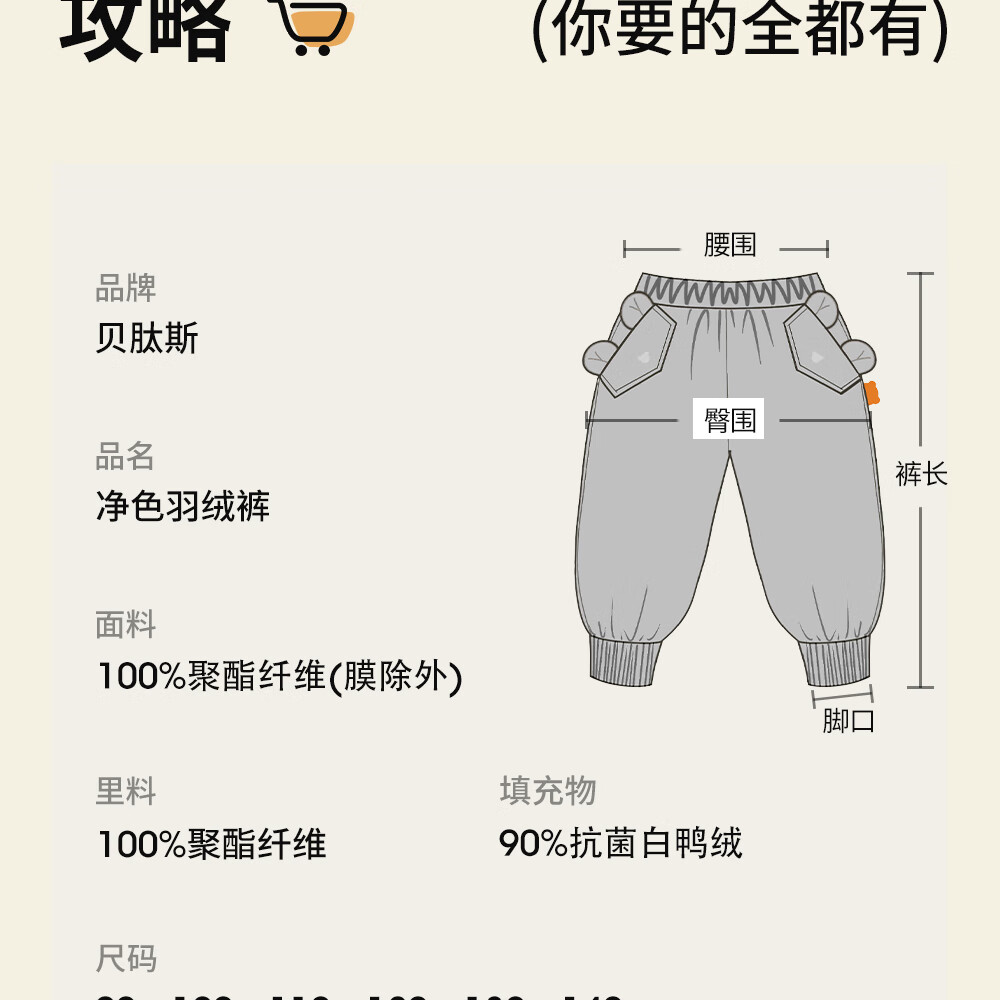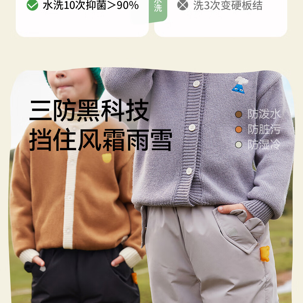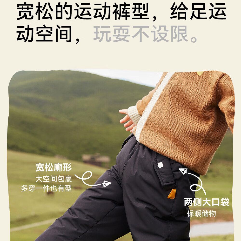 贝肽斯儿童羽绒裤冬季新款三防男女童宝宝90白鸭绒休闲保暖裤抗菌绒 陨石黑 【三防耐脏污】 130 cm 充绒量约40.57g