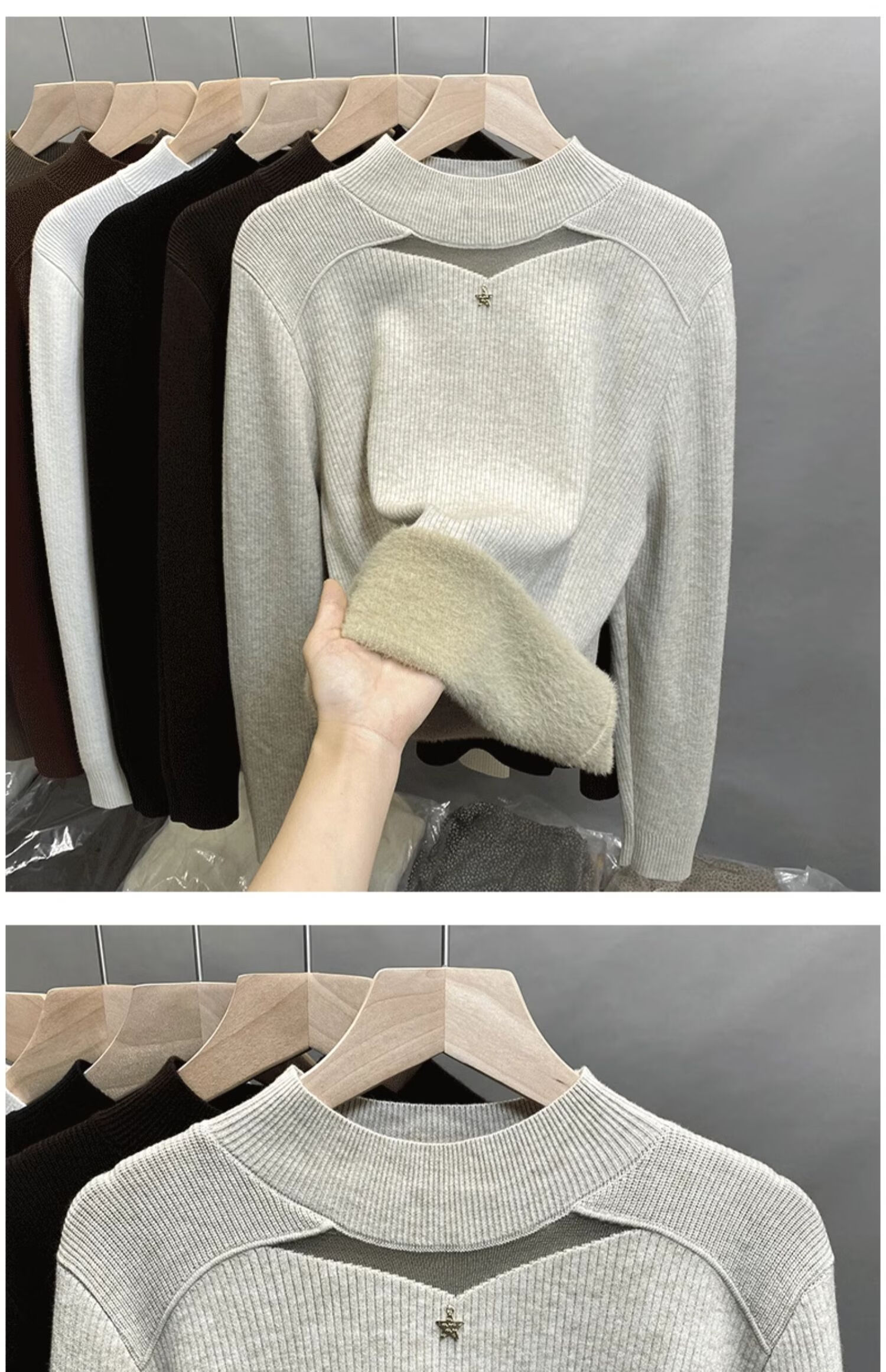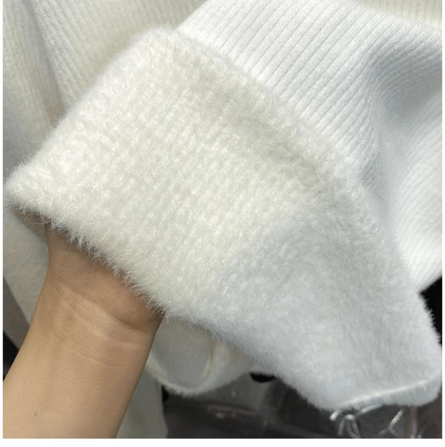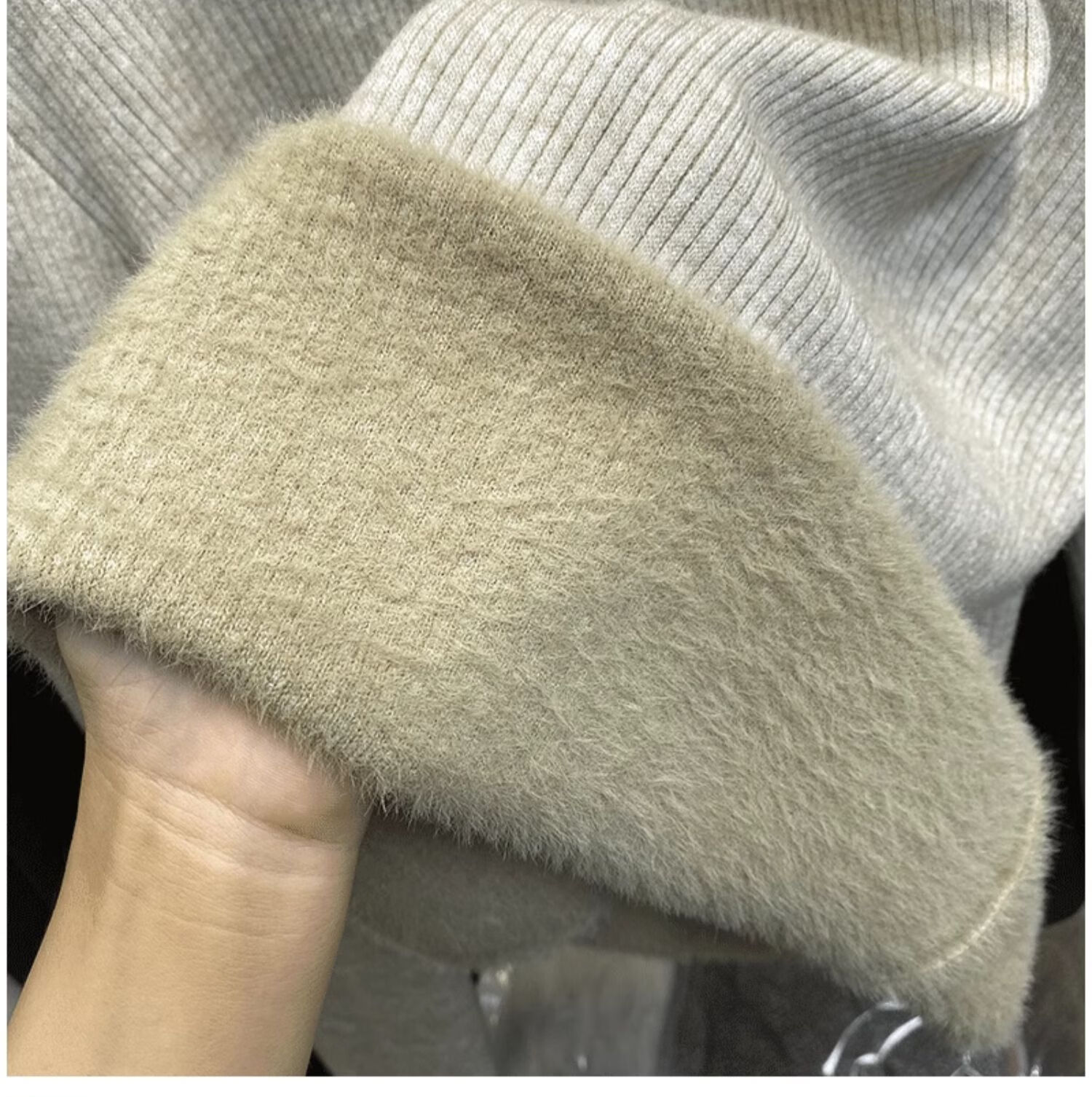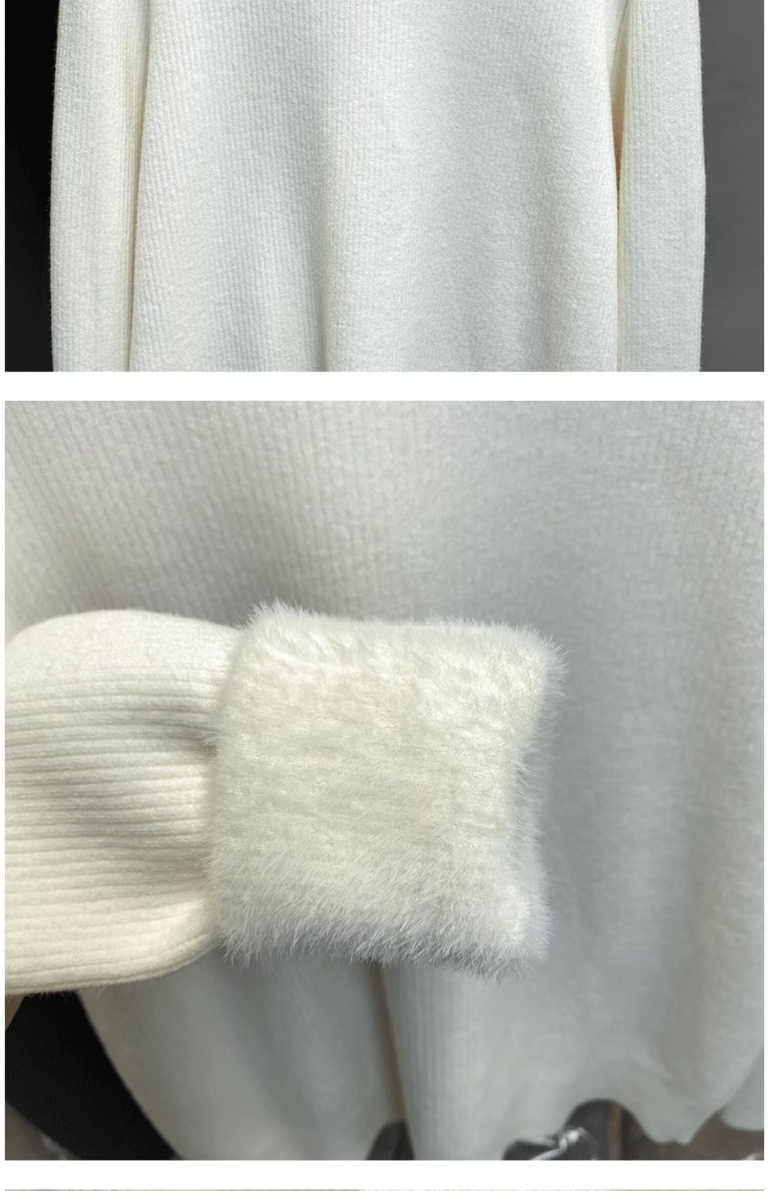 香影芬一体绒蕾丝半高领毛衣女加绒厚打底衫2025秋冬新款针织衫内搭上衣 米白色 2XL (建议125-135斤)
