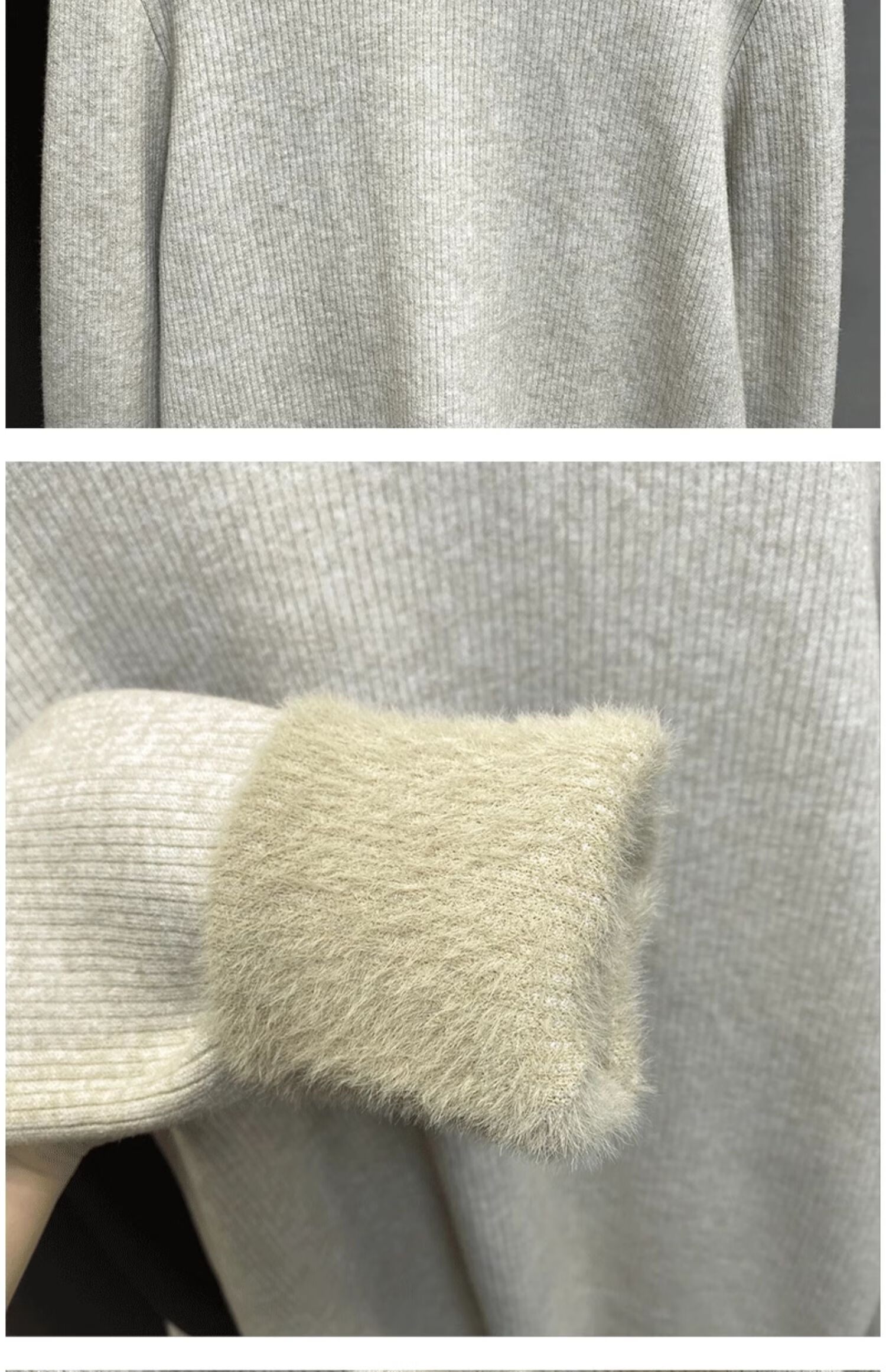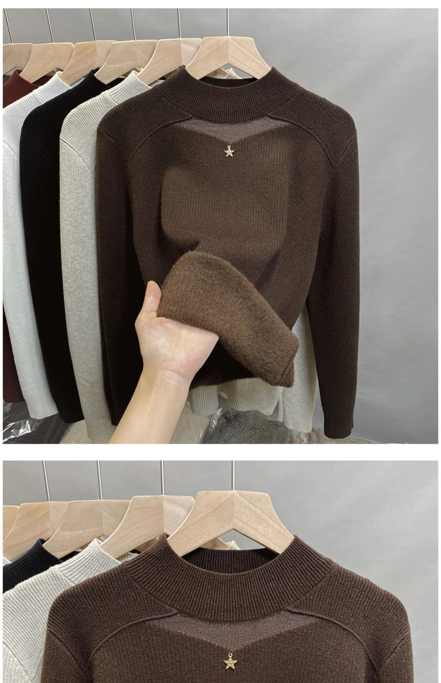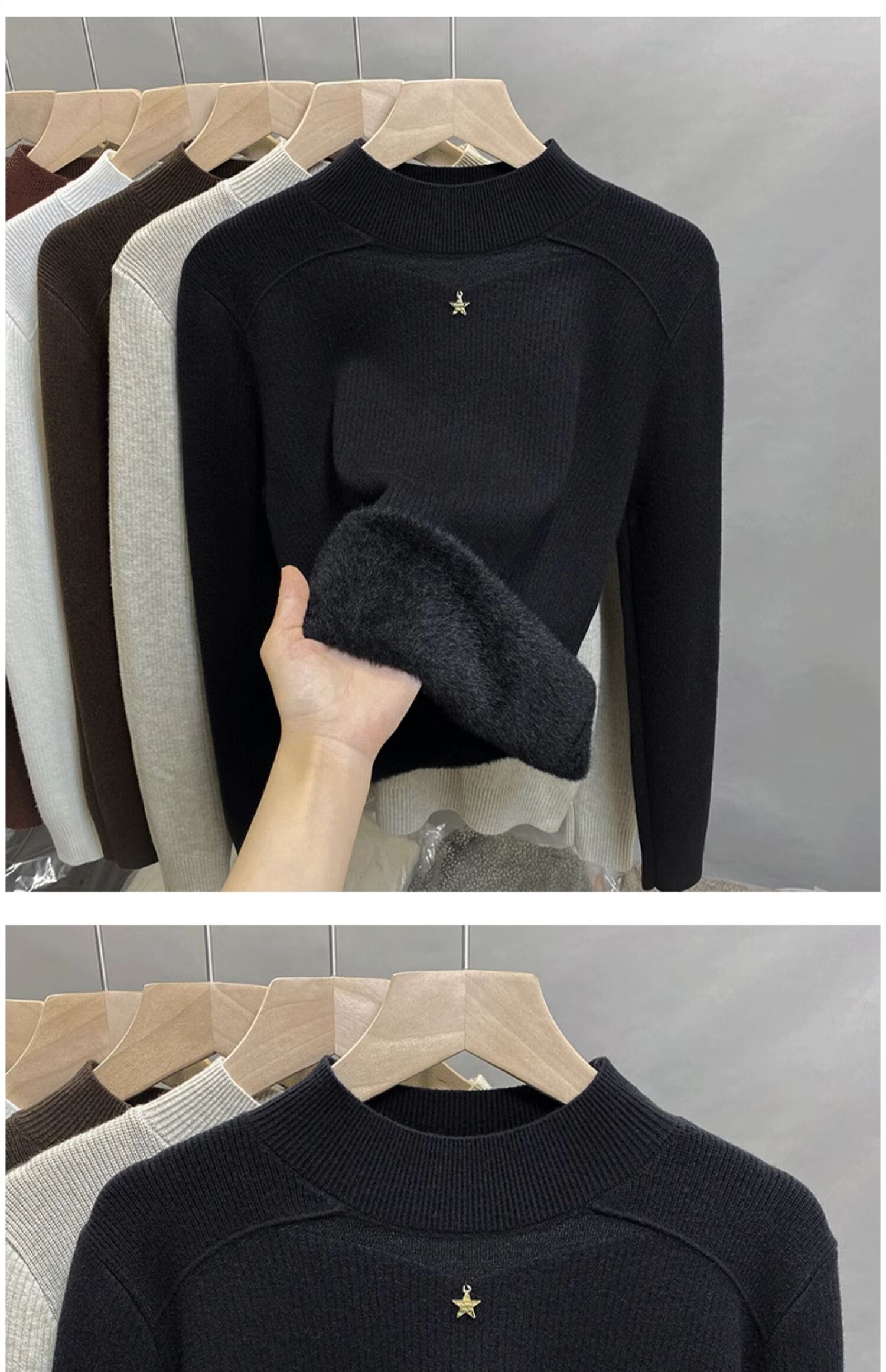 香影芬一体绒蕾丝半高领毛衣女加绒厚打底衫2025秋冬新款针织衫内搭上衣 米白色 2XL (建议125-135斤)