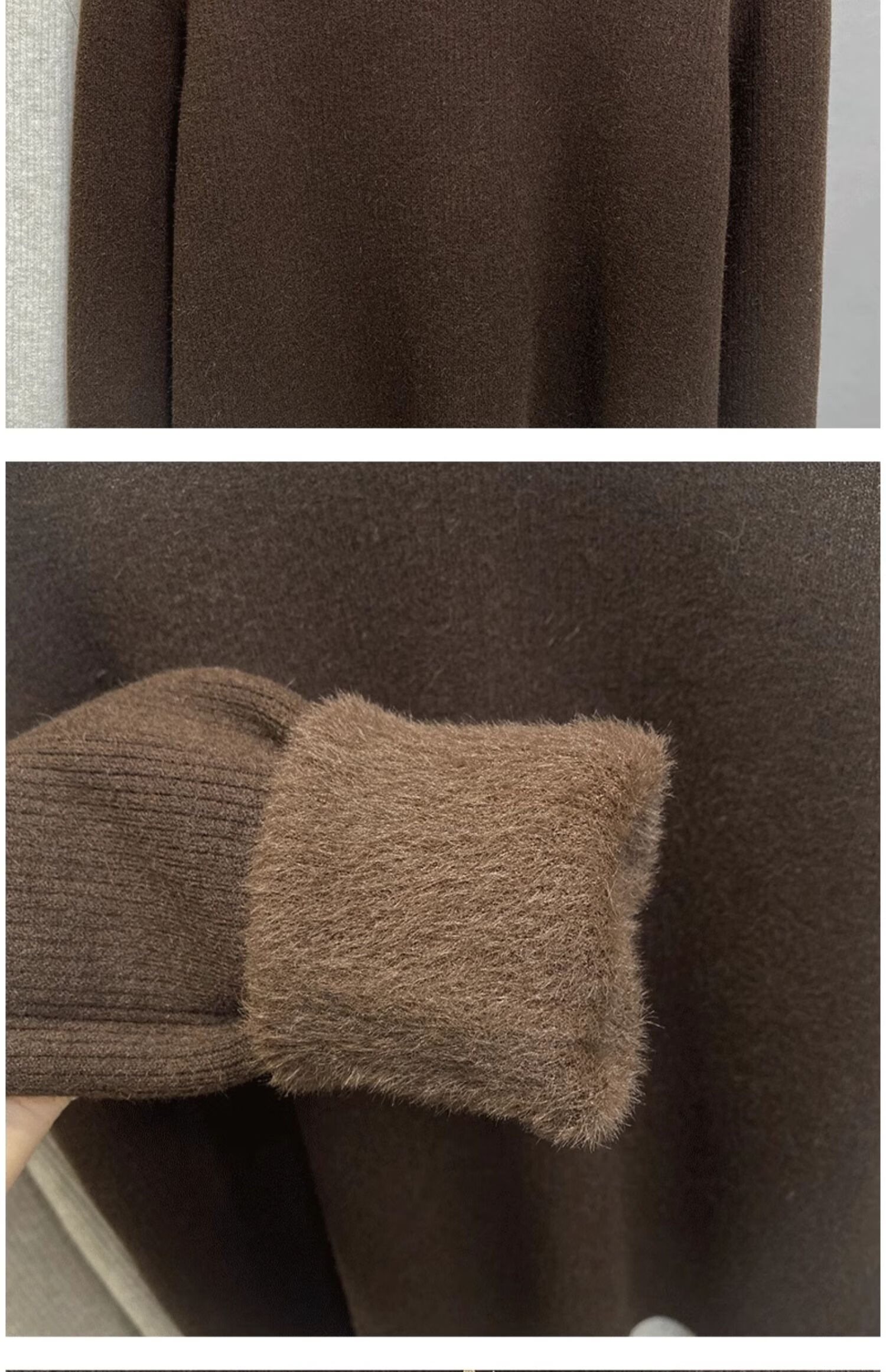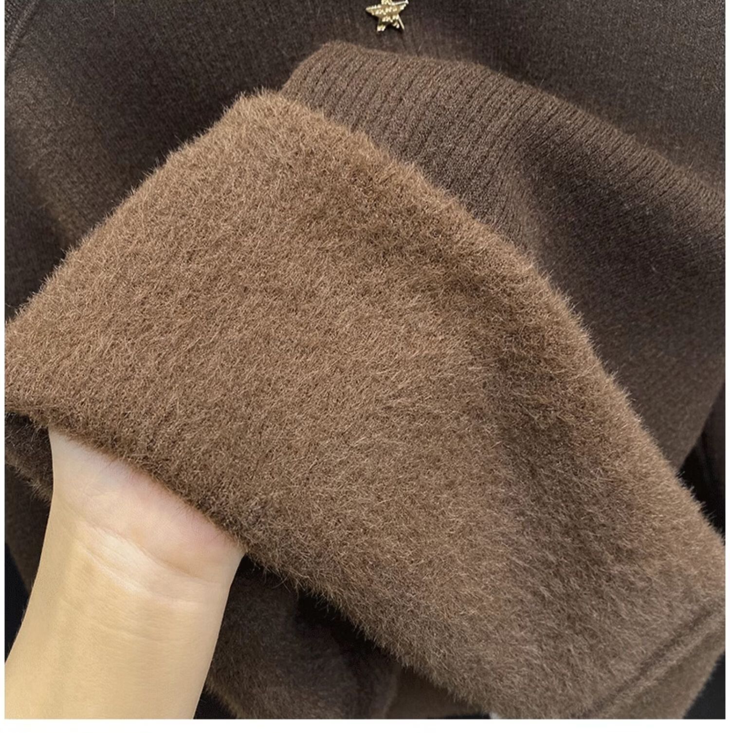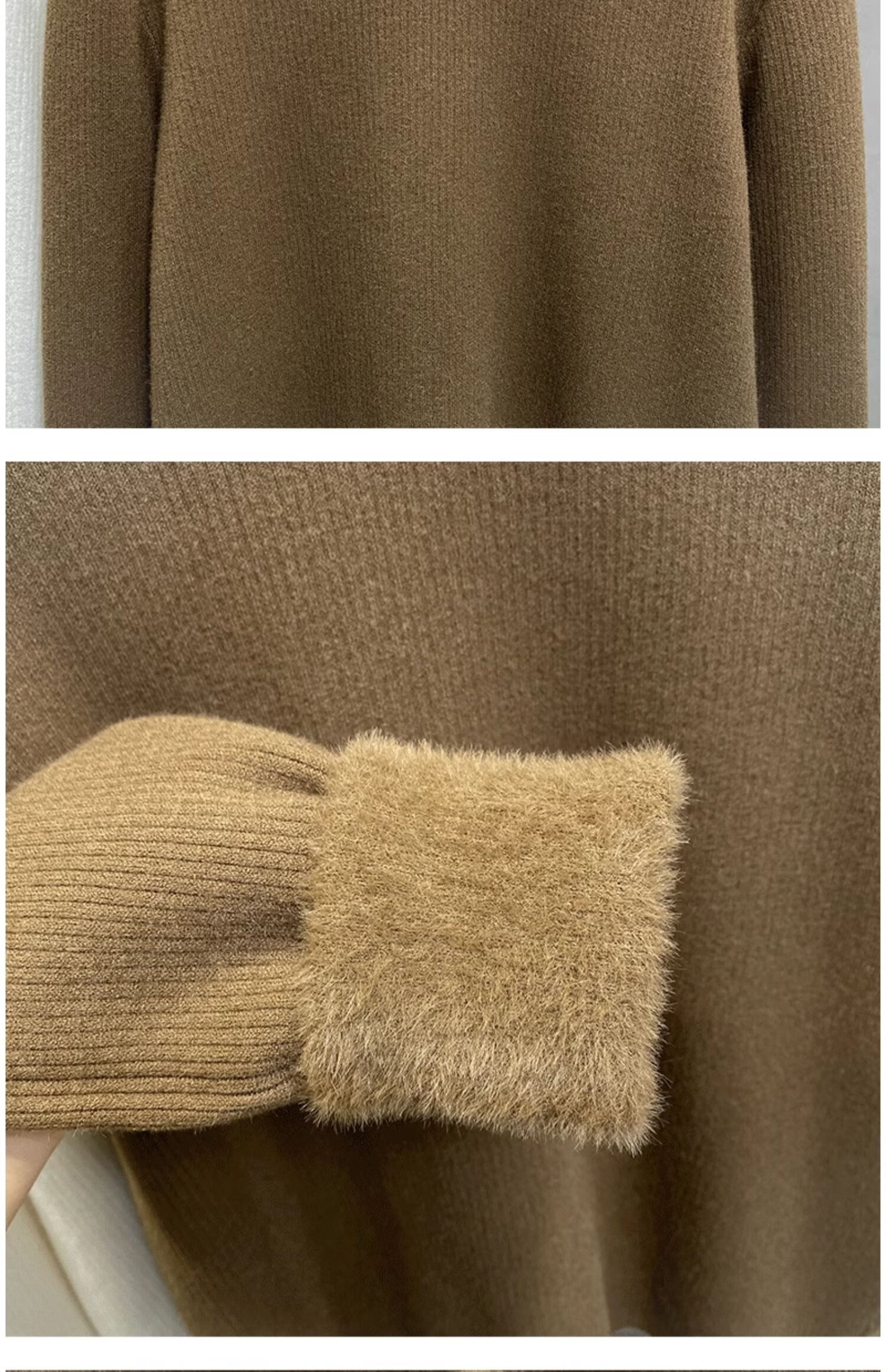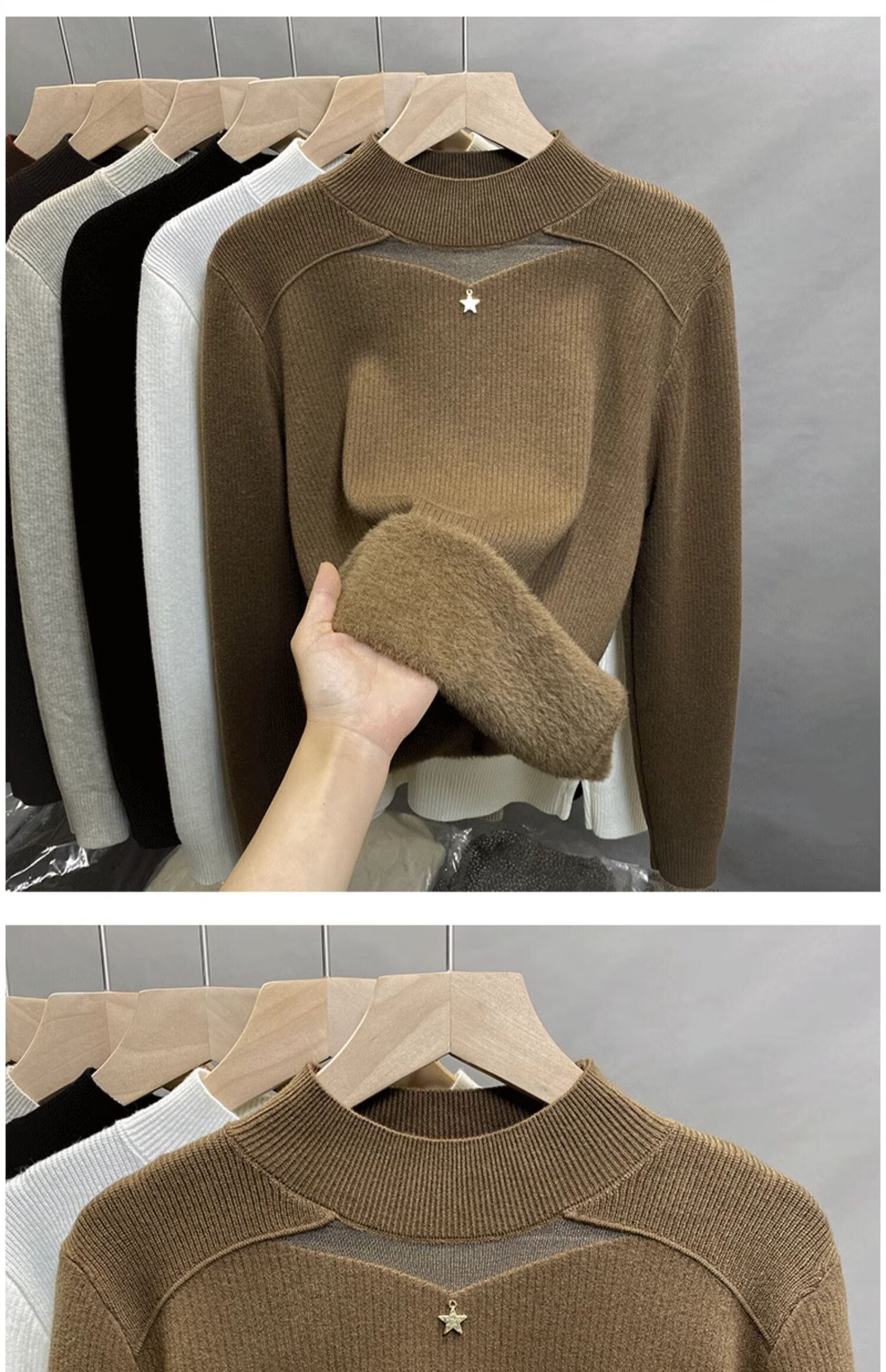 香影芬一体绒蕾丝半高领毛衣女加绒厚打底衫2025秋冬新款针织衫内搭上衣 米白色 2XL (建议125-135斤)