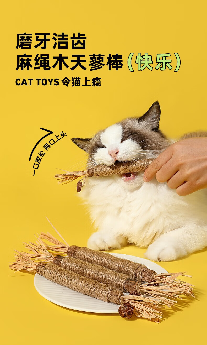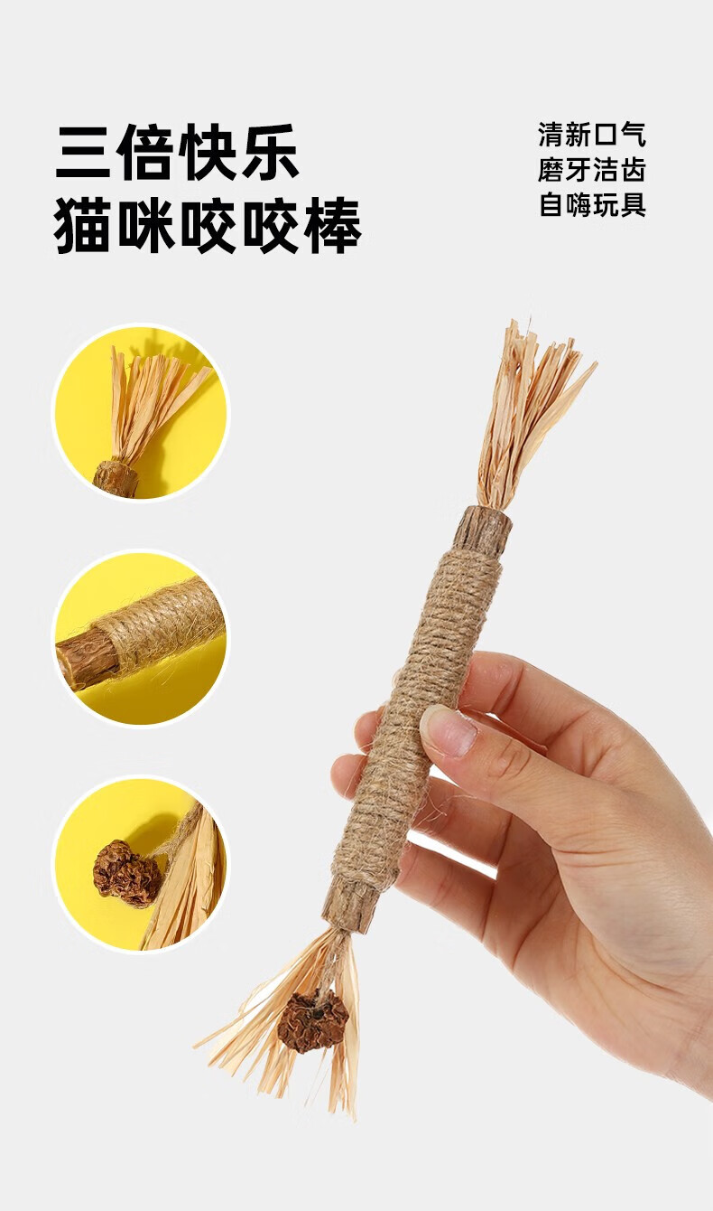 猫玩具磨牙棒剑麻球耐咬发声解闷神器 木天蓼磨牙棒
