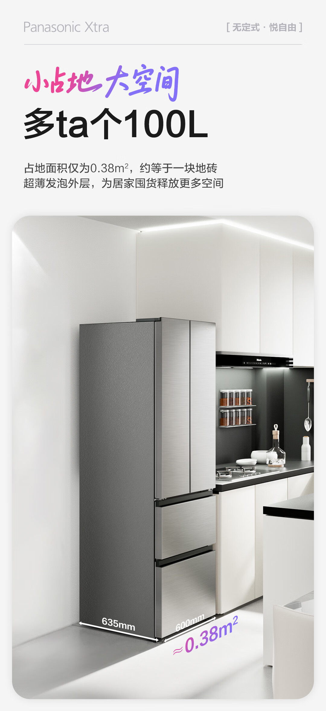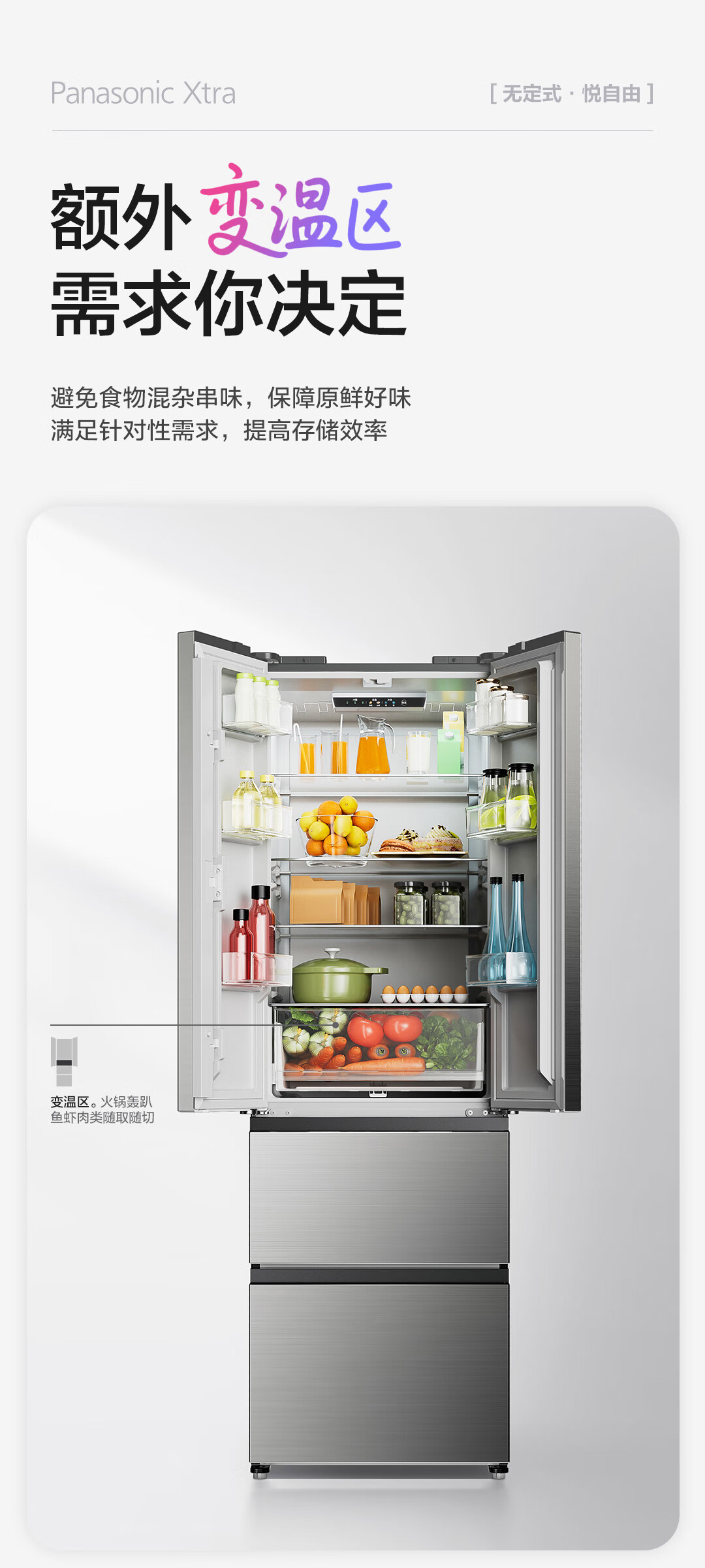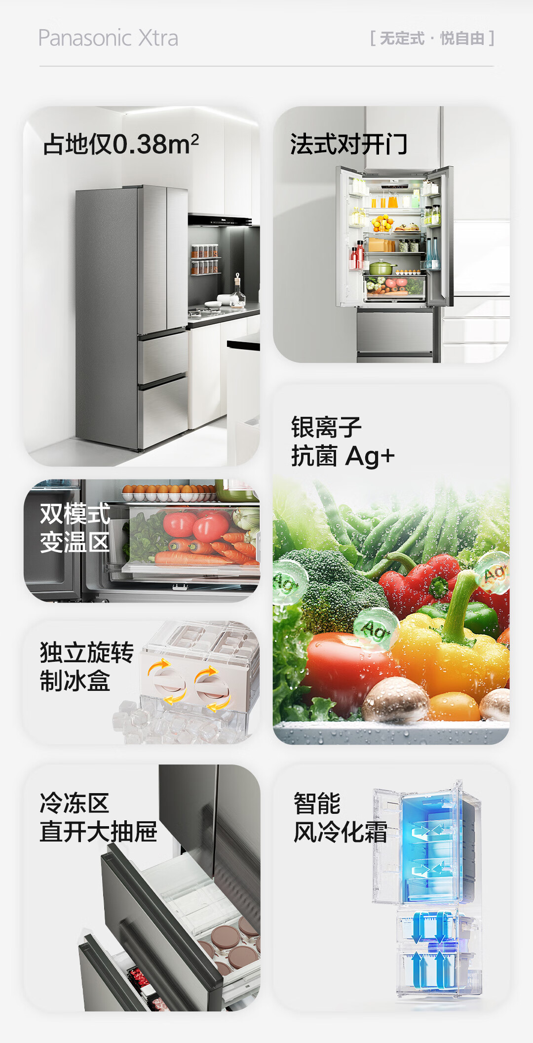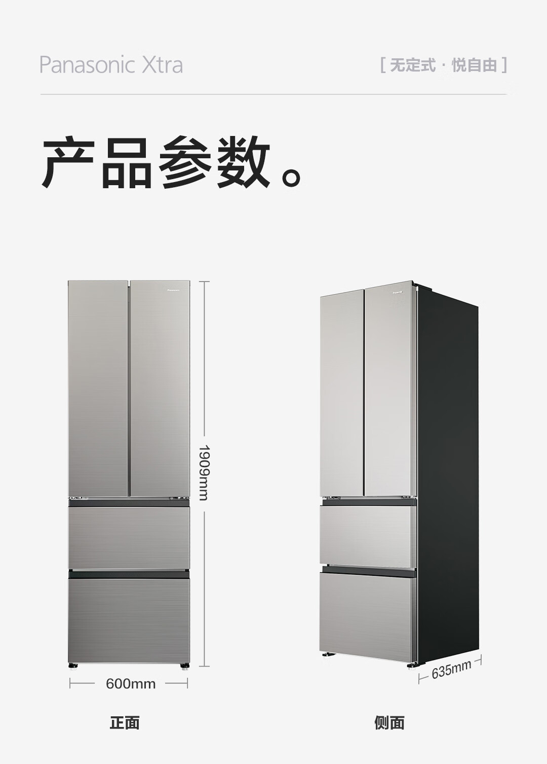 松下(Panasonic)Xtra小法棍400L法式多门冰箱家用小户型超薄风冷无霜以旧换新星际银NR-XG41PEB-S【国家补贴】