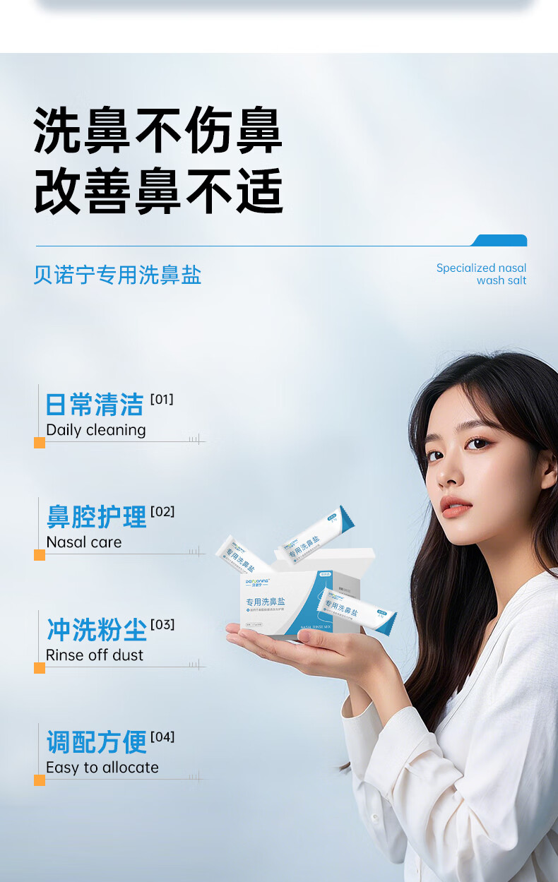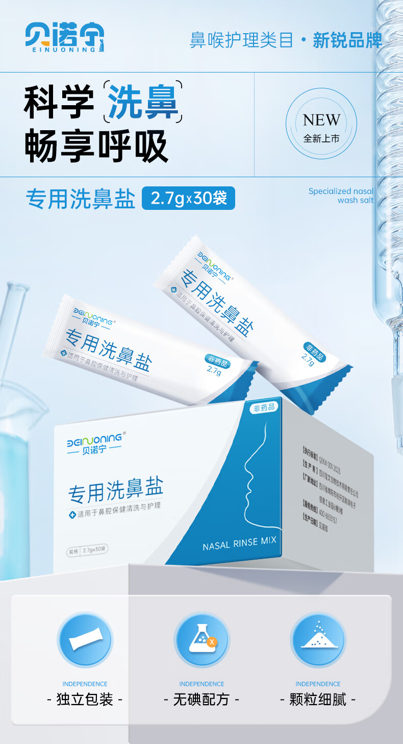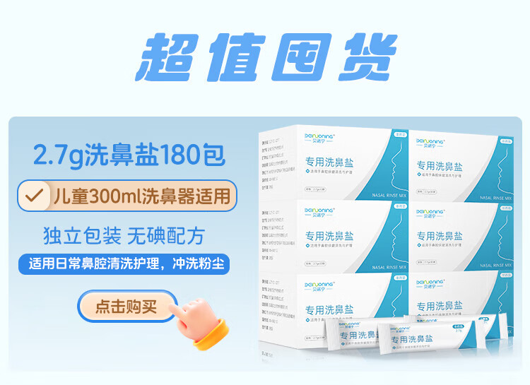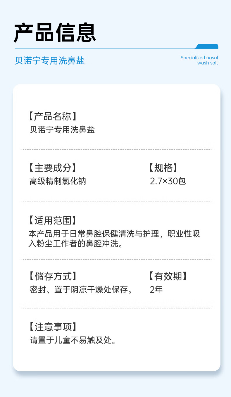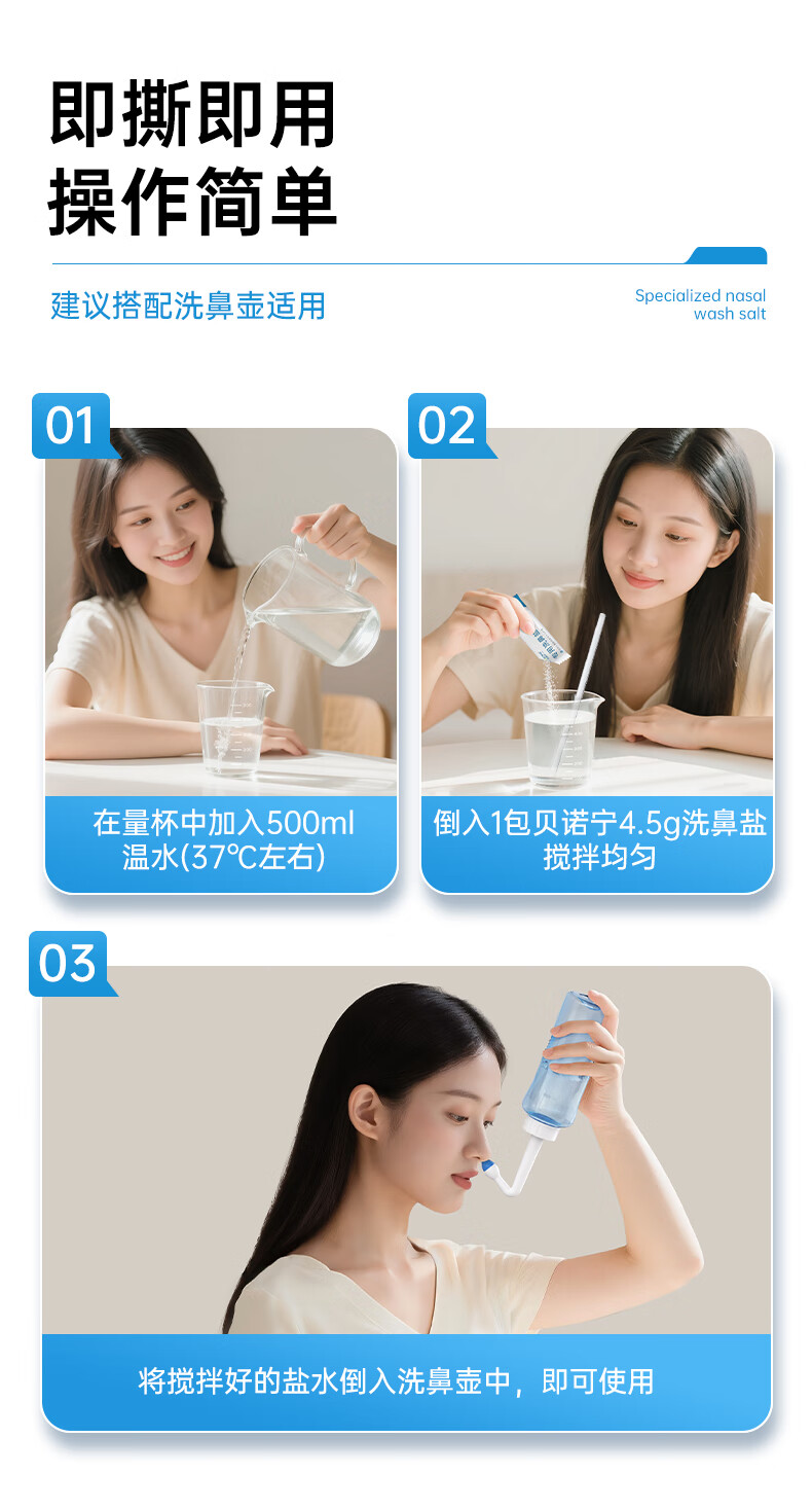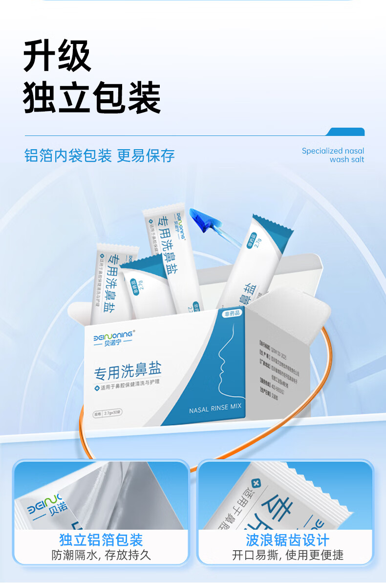 贝诺宁洗鼻盐儿童成人生理盐水洗鼻器专用海盐水洗鼻盐水盐包2.7g*30包