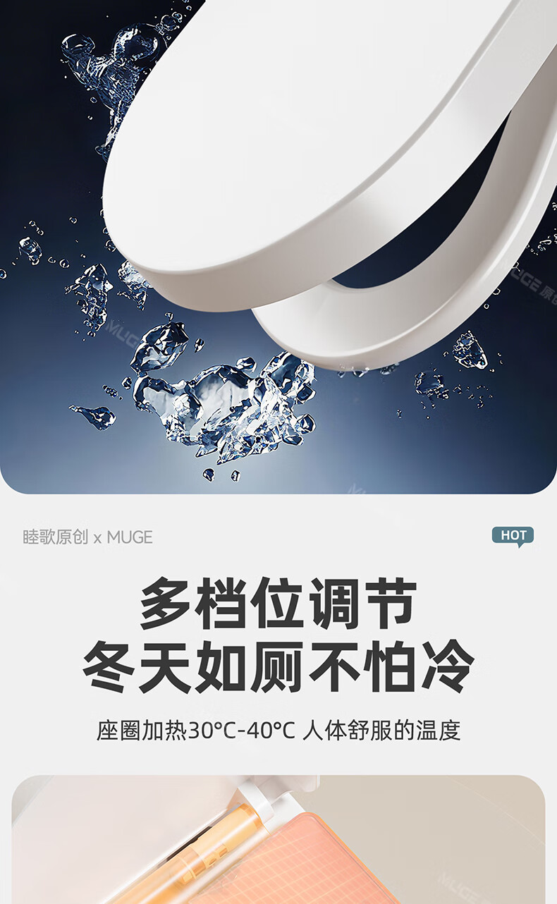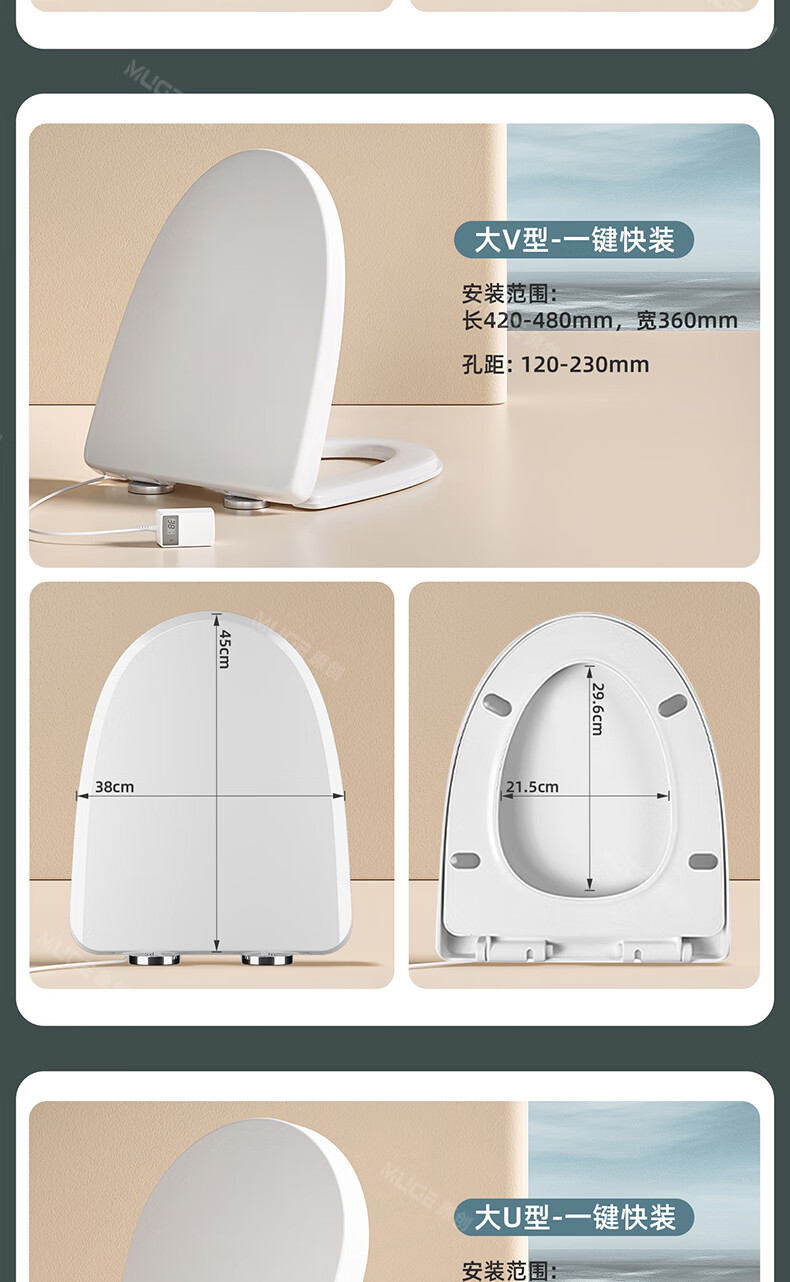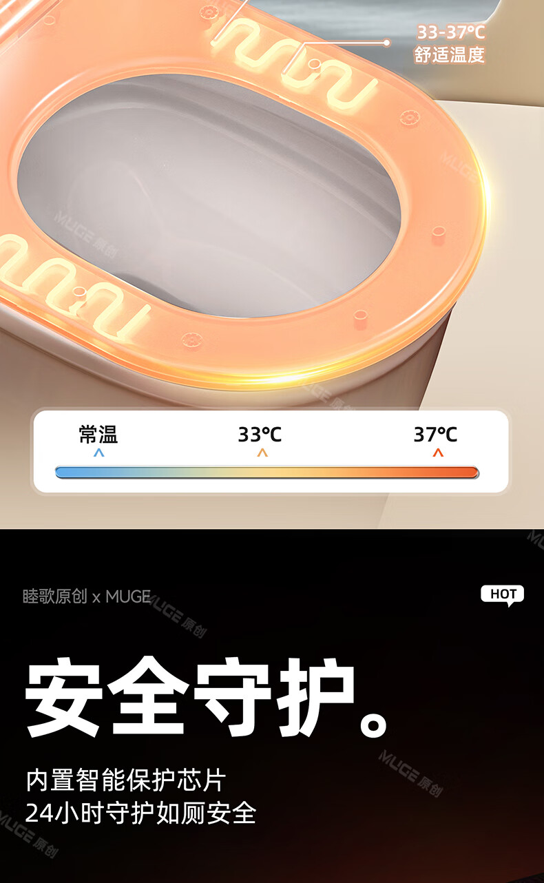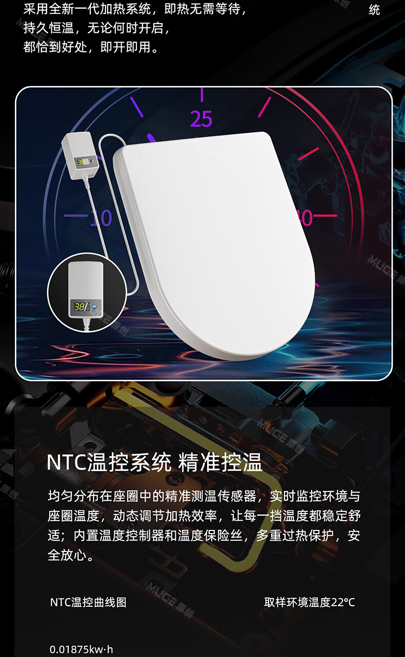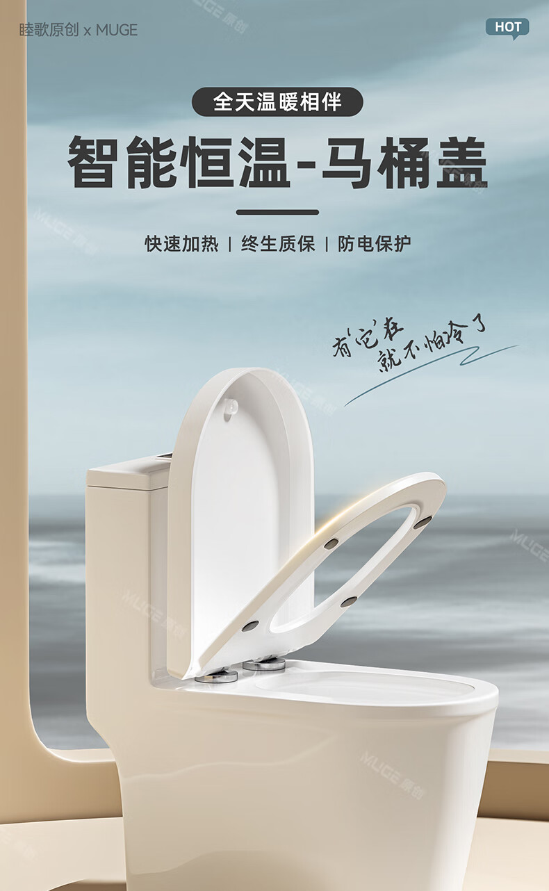 睦歌(MUGE)v型u型智能电加热马桶盖即热式通用座圈单加热坐便盖马桶圈防漏电 四档调温【通用U型】加热马桶盖