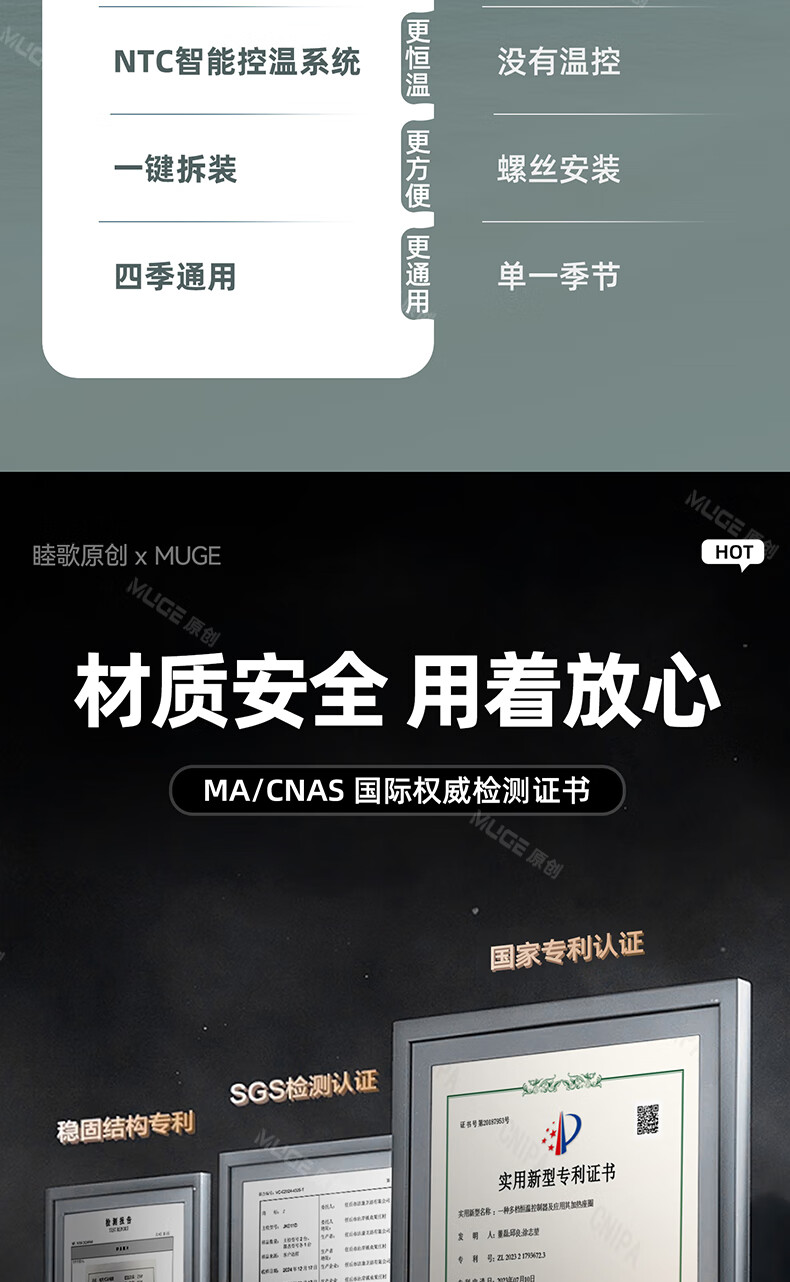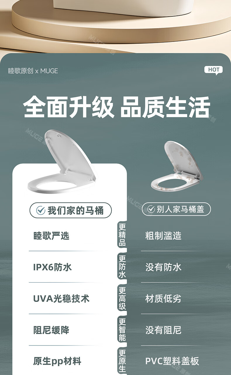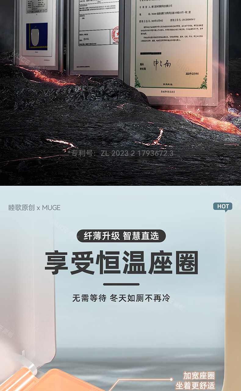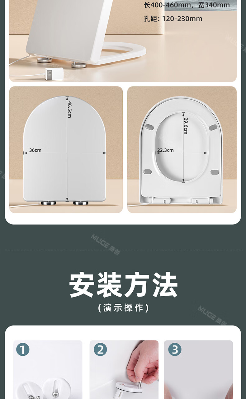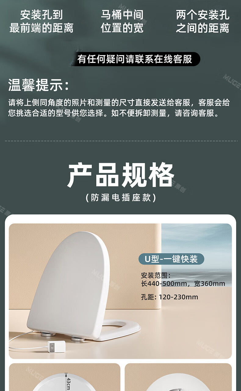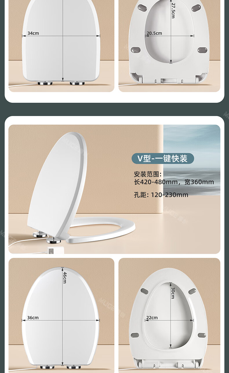 睦歌(MUGE)v型u型智能电加热马桶盖即热式通用座圈单加热坐便盖马桶圈防漏电 四档调温【通用U型】加热马桶盖