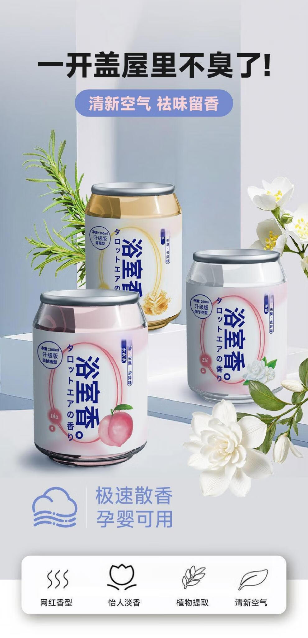 依姿露厕所除臭神器去异味香薰固体香氛卫生间卧室持久留香空气清新香剂 浴室香(白桃)
