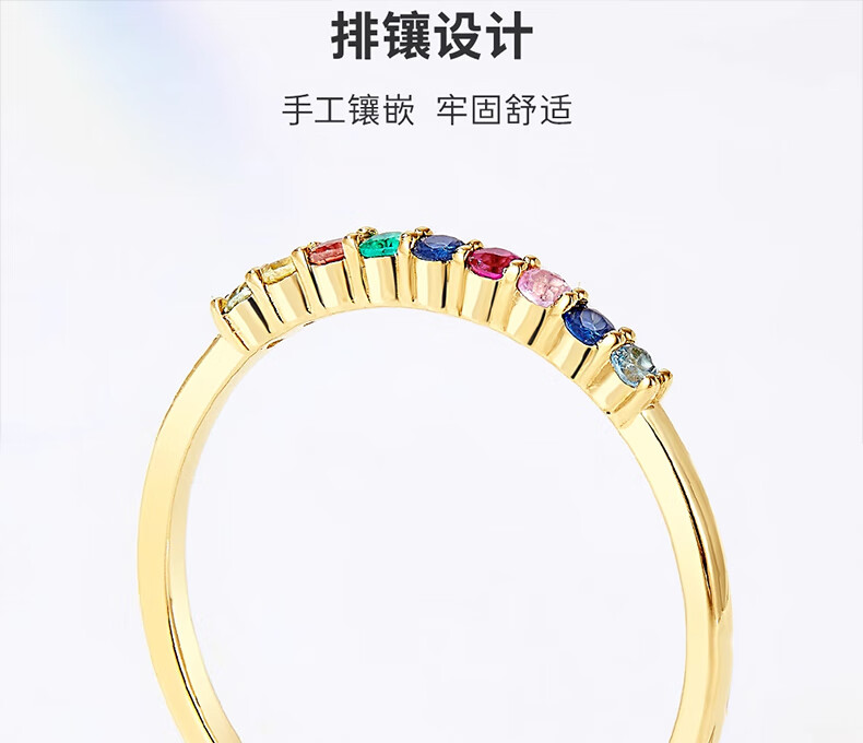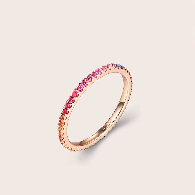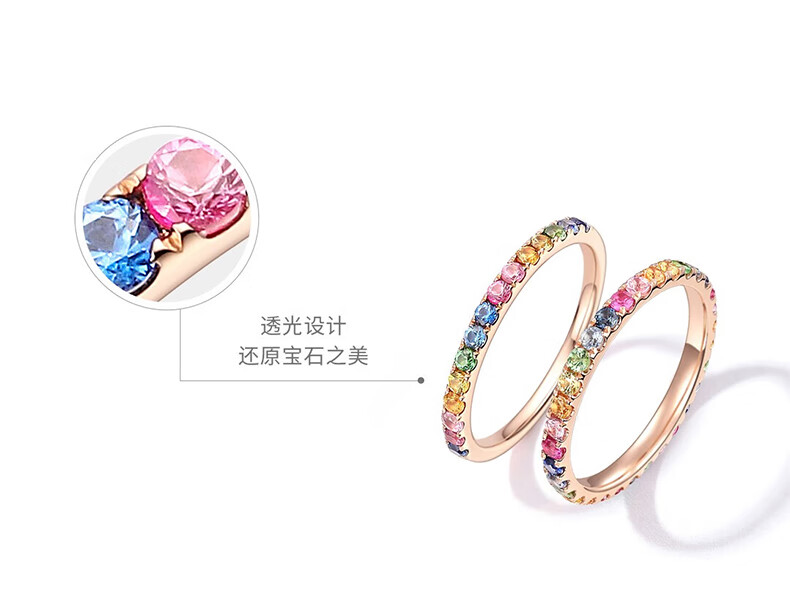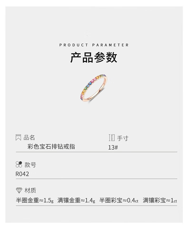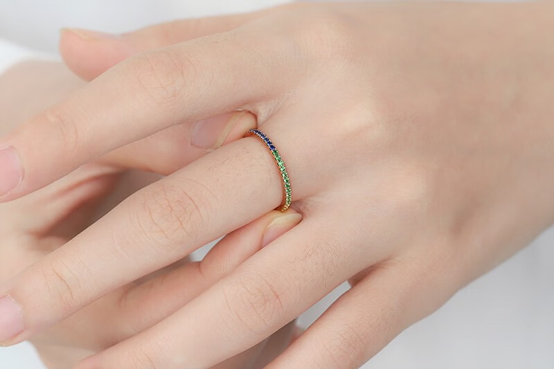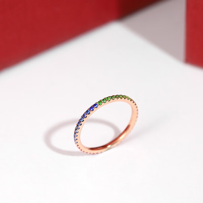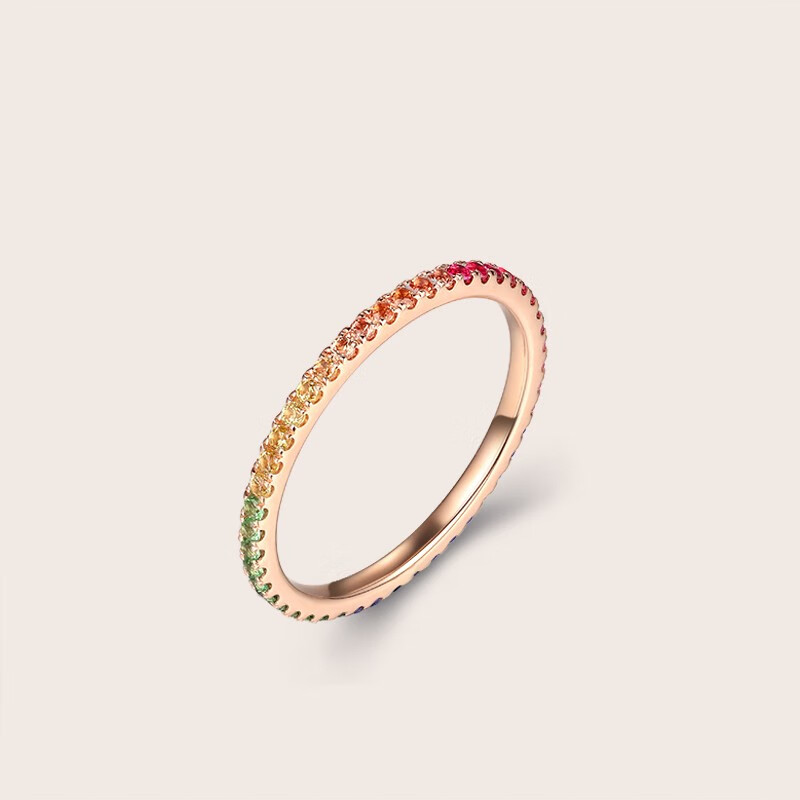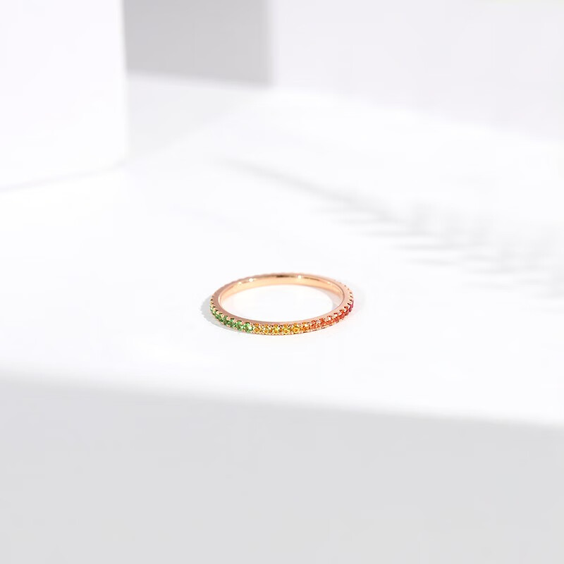 星眸珠宝18K金单排满钻彩色宝石真钻石戒指女欧美ins风镶钻百搭手饰送圣诞 S925镶锆石 (6-8美码)