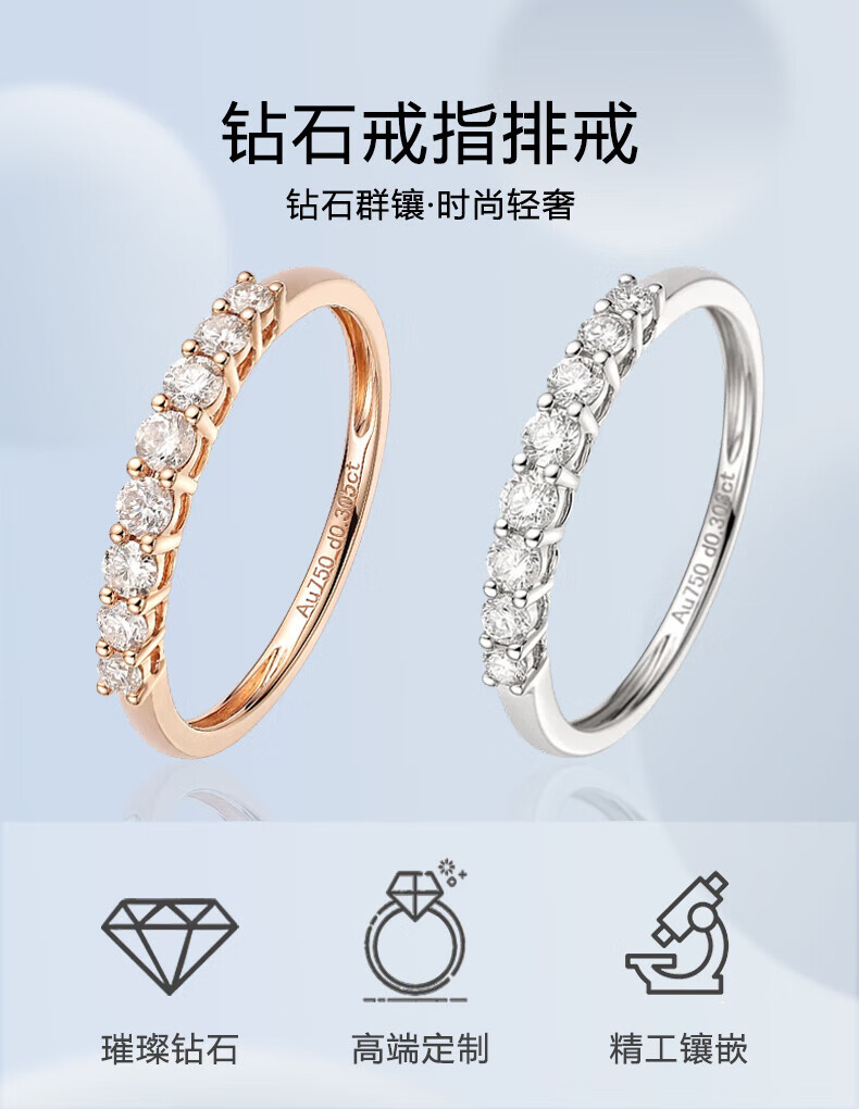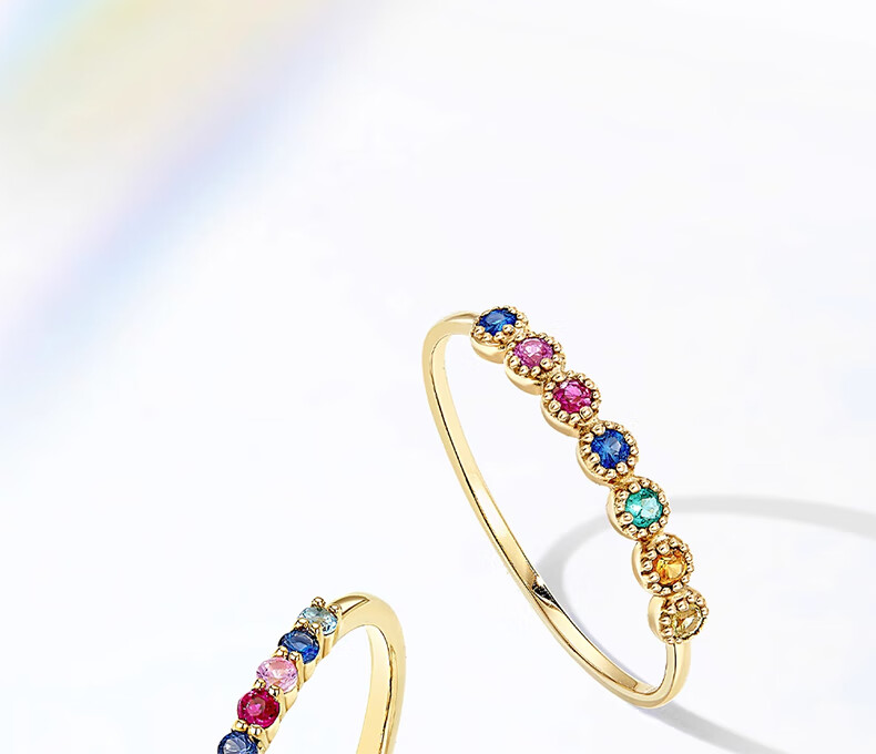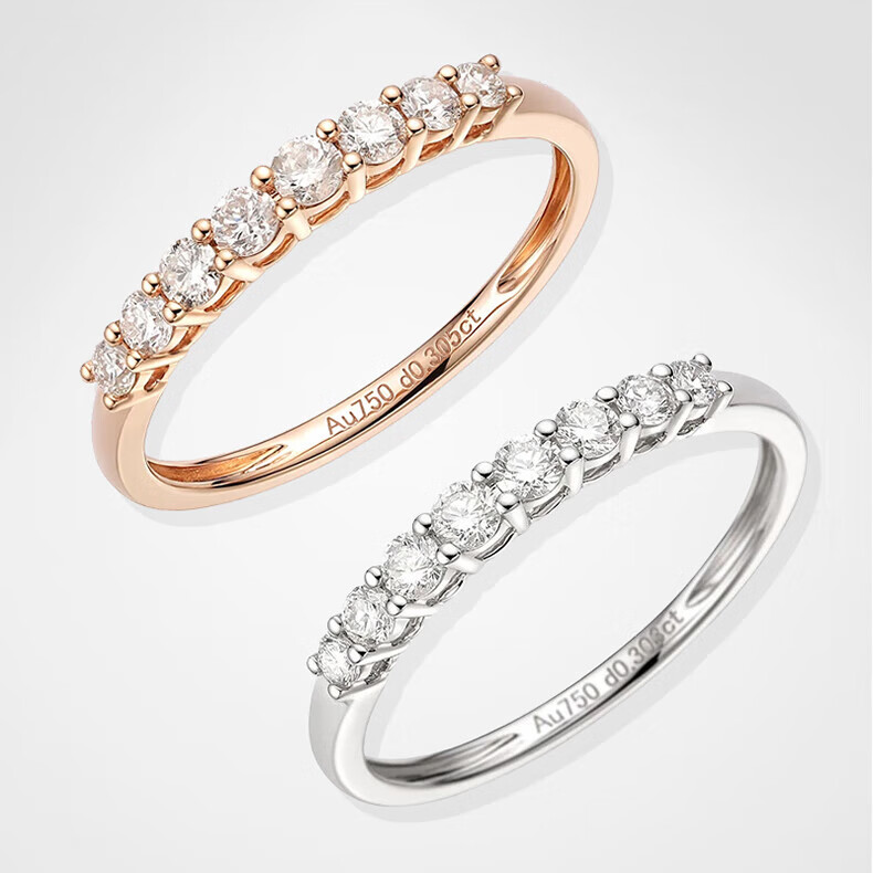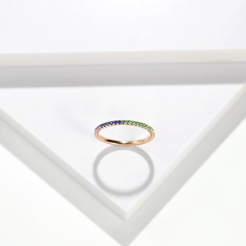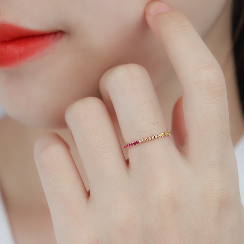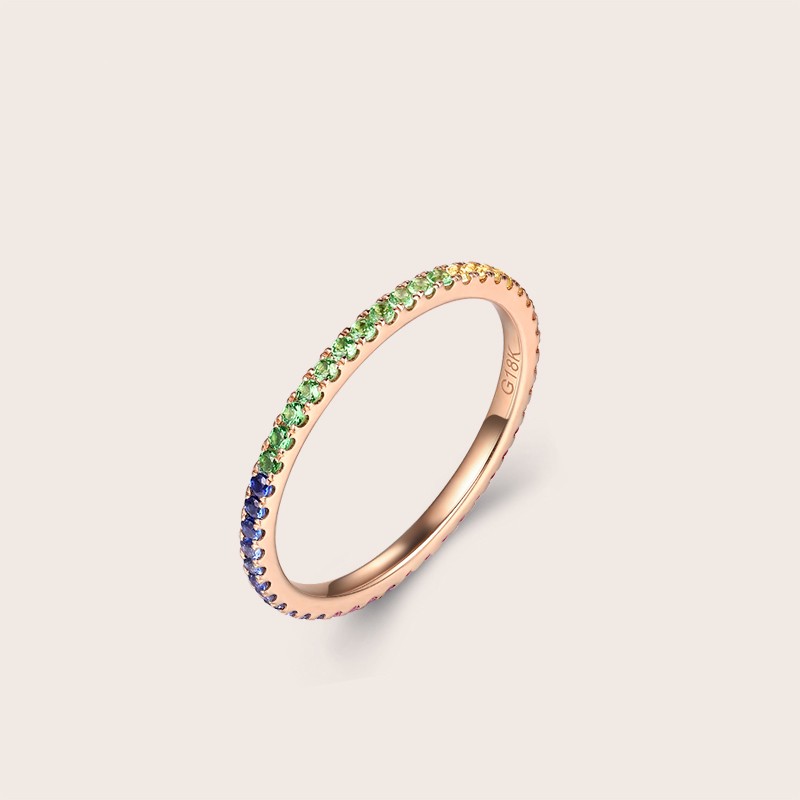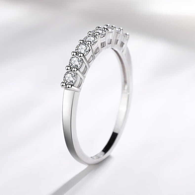 星眸珠宝18K金单排满钻彩色宝石真钻石戒指女欧美ins风镶钻百搭手饰送圣诞 S925镶锆石 (6-8美码)