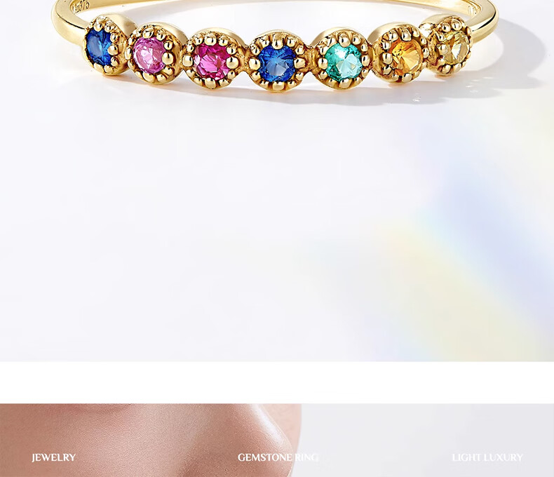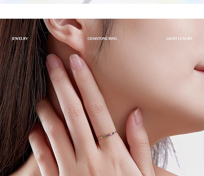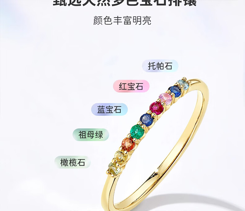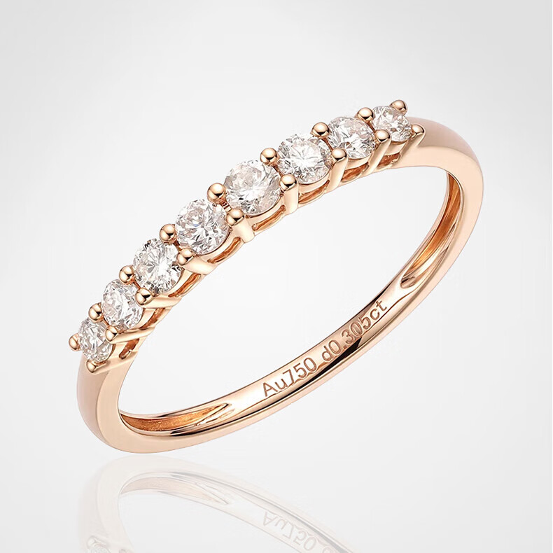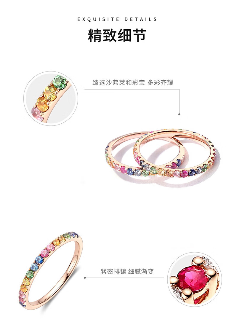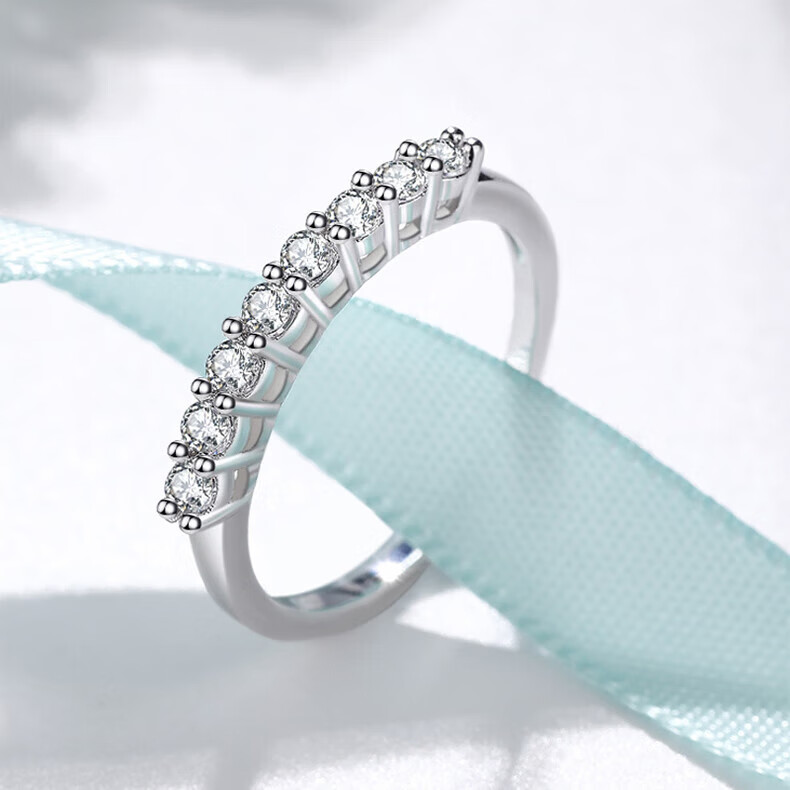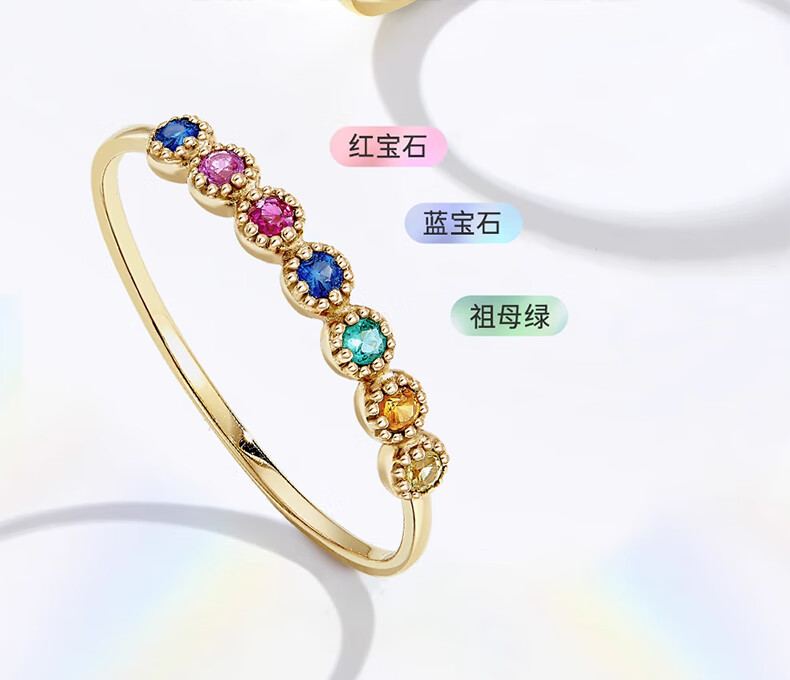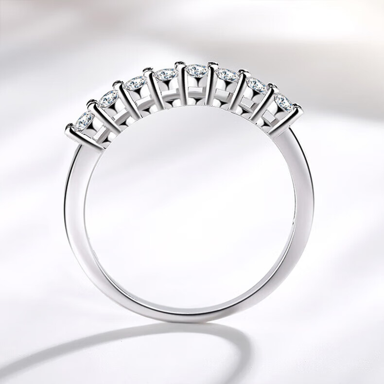 星眸珠宝18K金单排满钻彩色宝石真钻石戒指女欧美ins风镶钻百搭手饰送圣诞 S925镶锆石 (6-8美码)