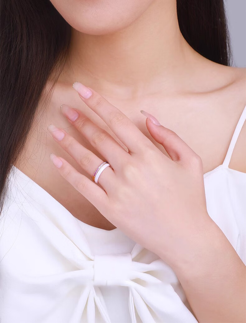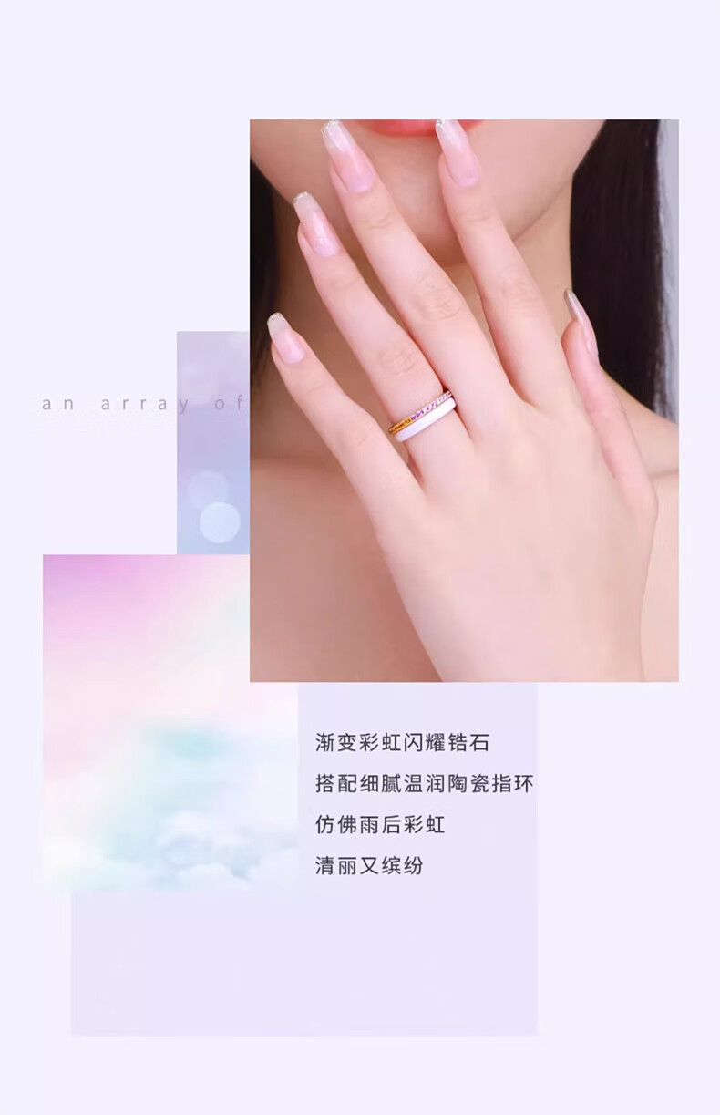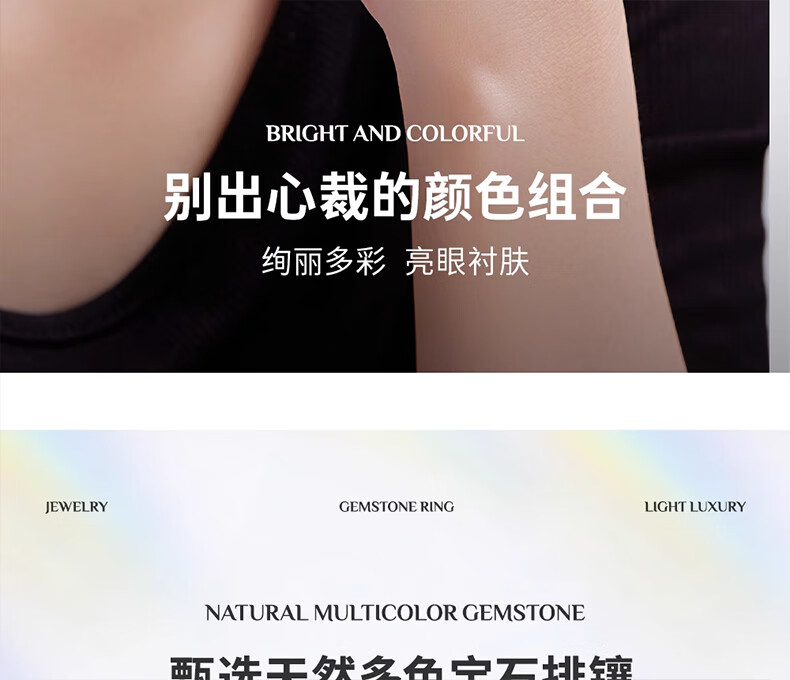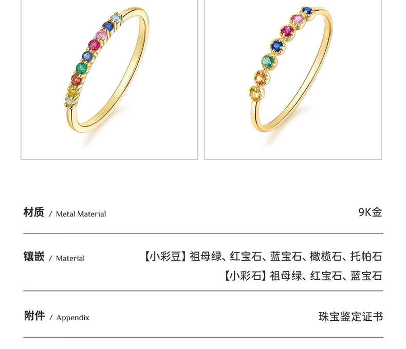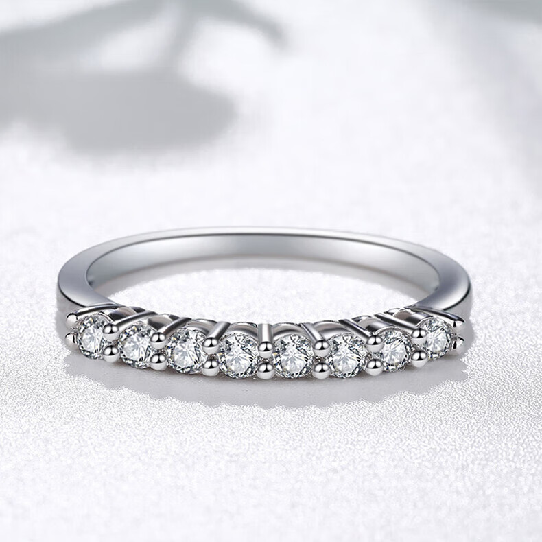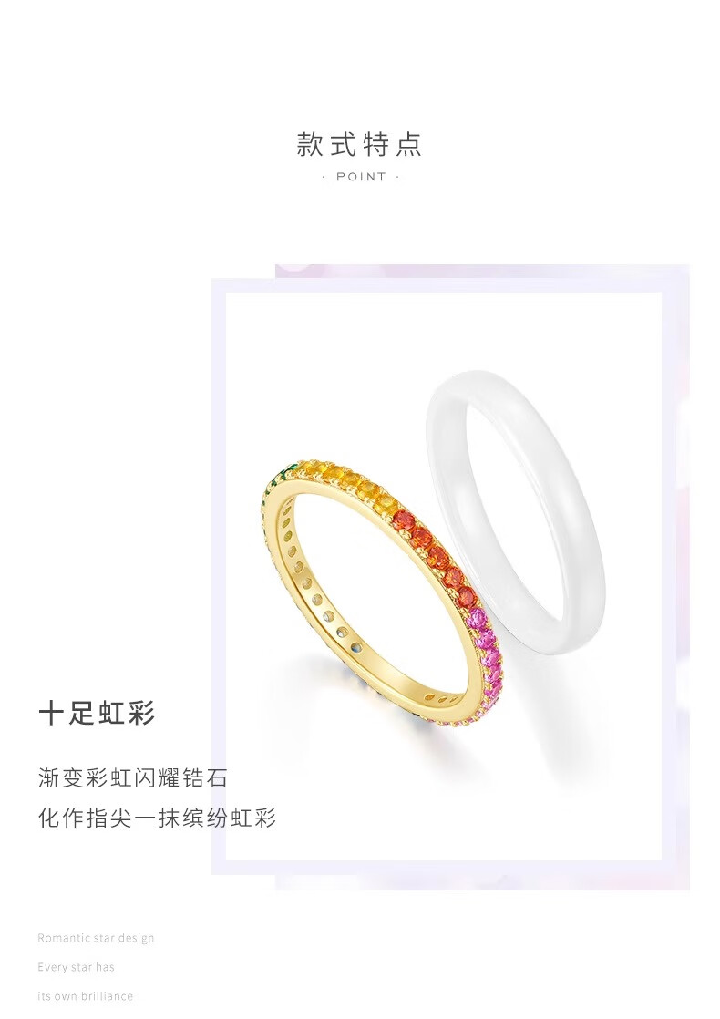 星眸珠宝18K金单排满钻彩色宝石真钻石戒指女欧美ins风镶钻百搭手饰送圣诞 S925镶锆石 (6-8美码)