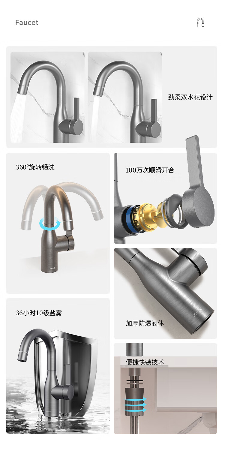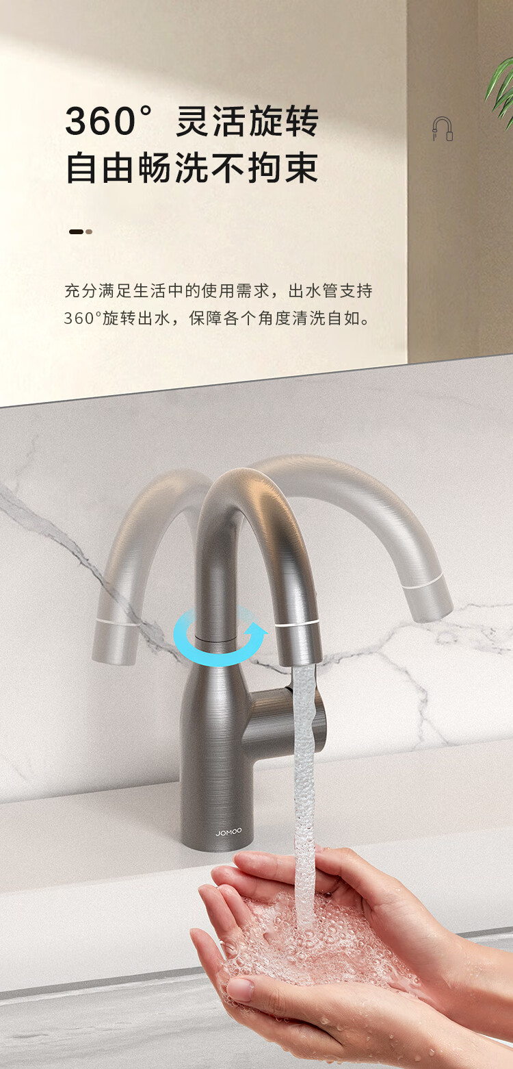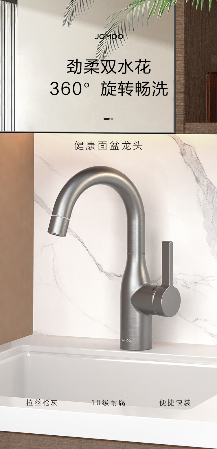 九牧(JOMOO)面盆龙头洗手洗脸盆浴室冷热龙头卫生间浴室柜坐式单孔水龙头 32686【可旋转双水花】亮银