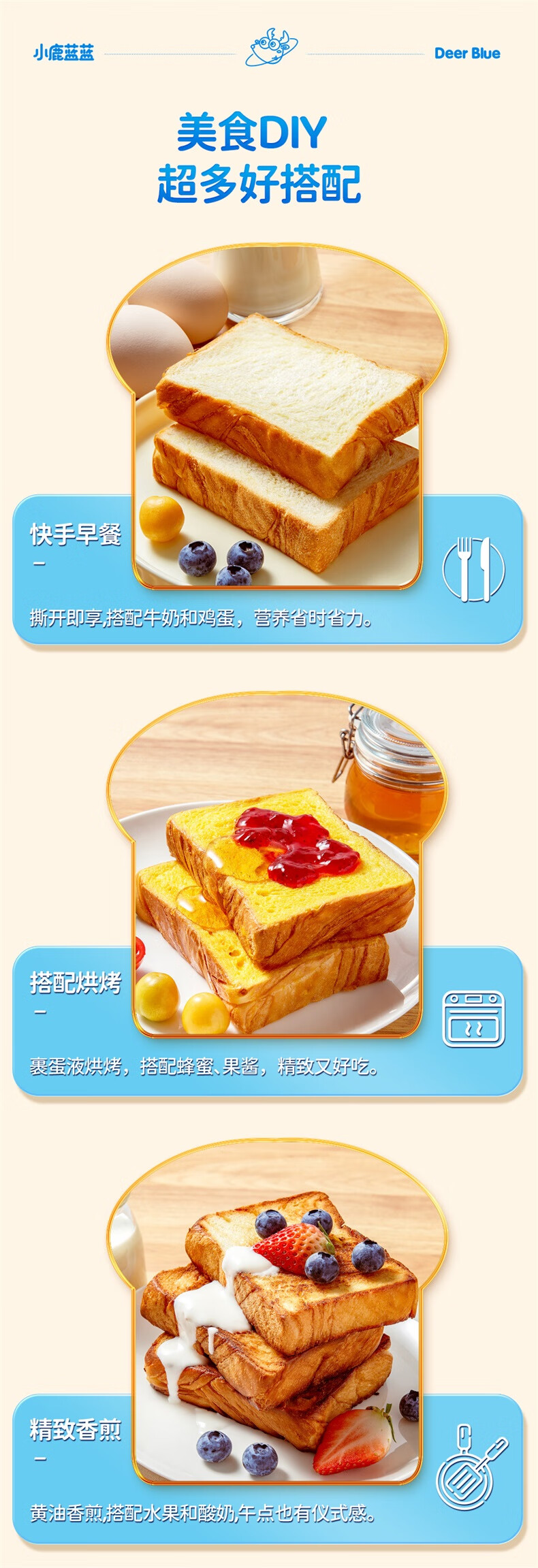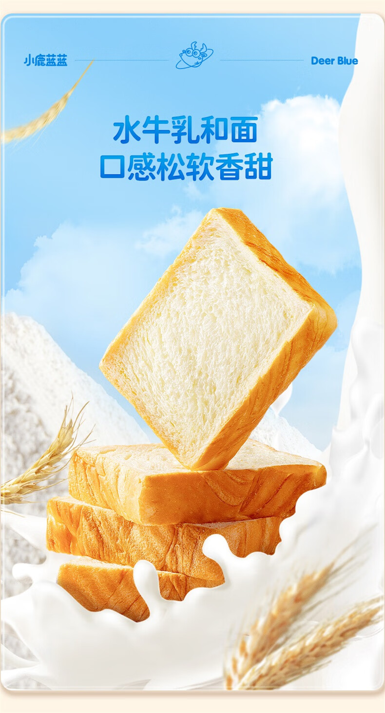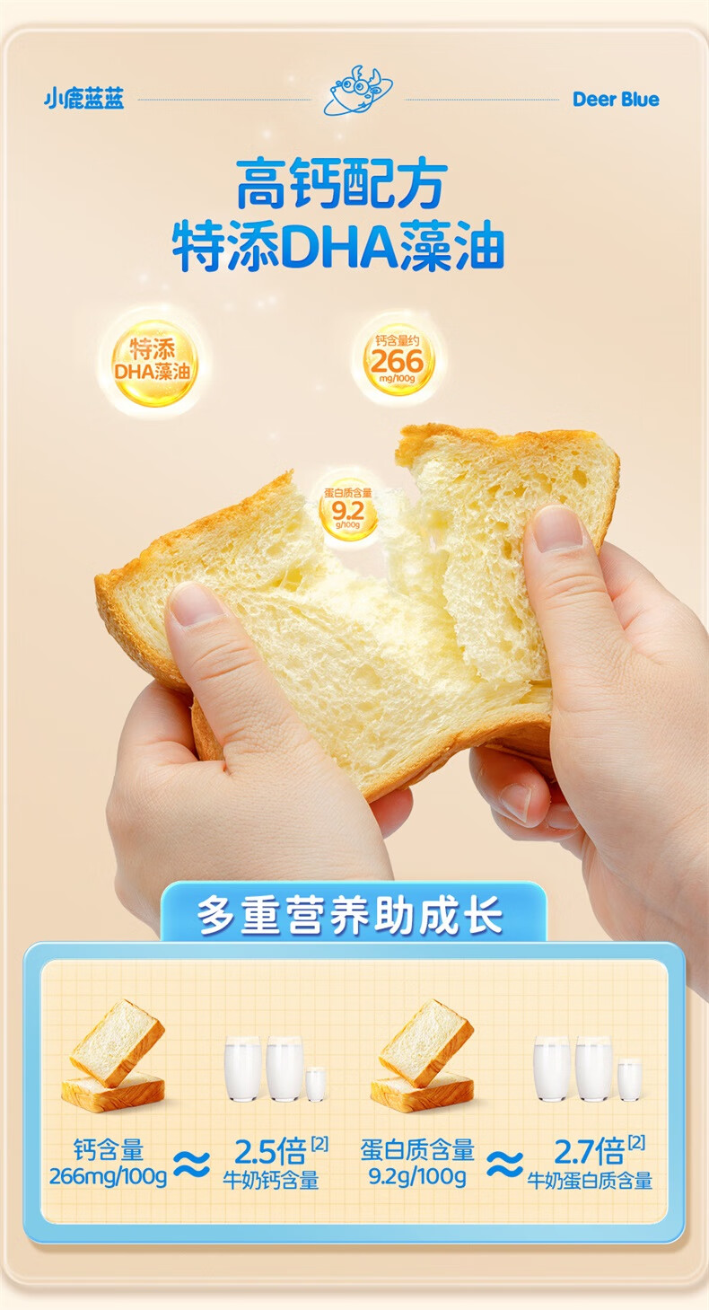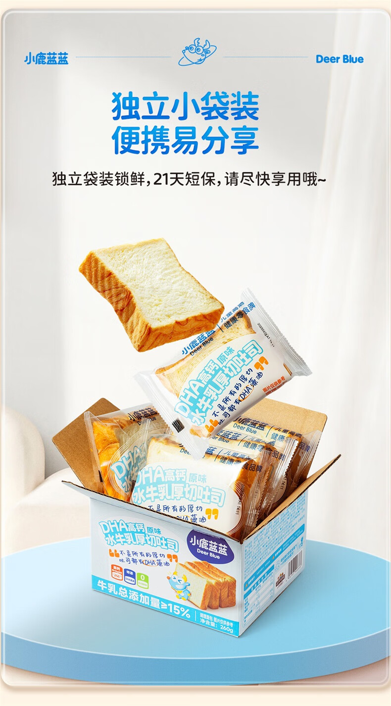 小鹿蓝蓝宝宝零食黄油吐司面包嫩蛋糕面包棒烘焙新鲜短保早餐 【早餐爆款】DHA高钙水牛乳吐司1箱/260g