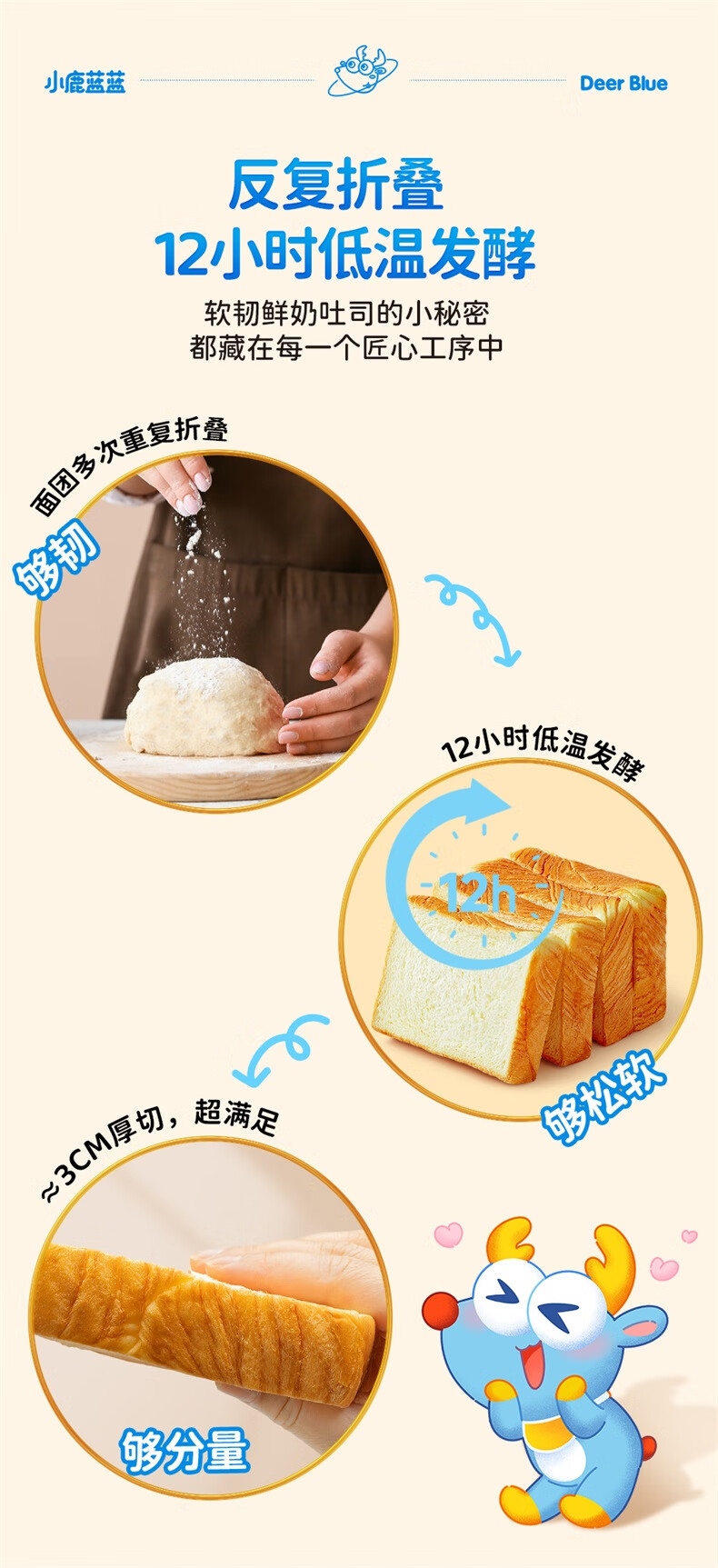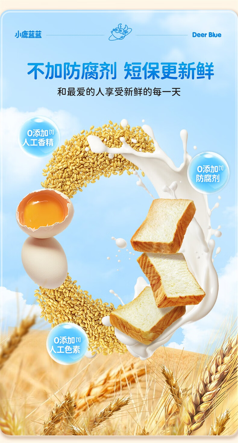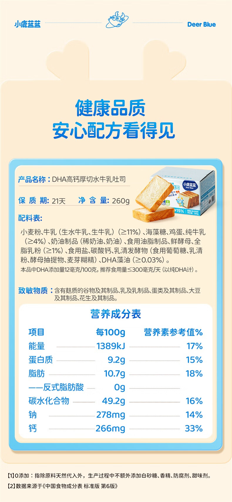 小鹿蓝蓝宝宝零食黄油吐司面包嫩蛋糕面包棒烘焙新鲜短保早餐 【早餐爆款】DHA高钙水牛乳吐司1箱/260g