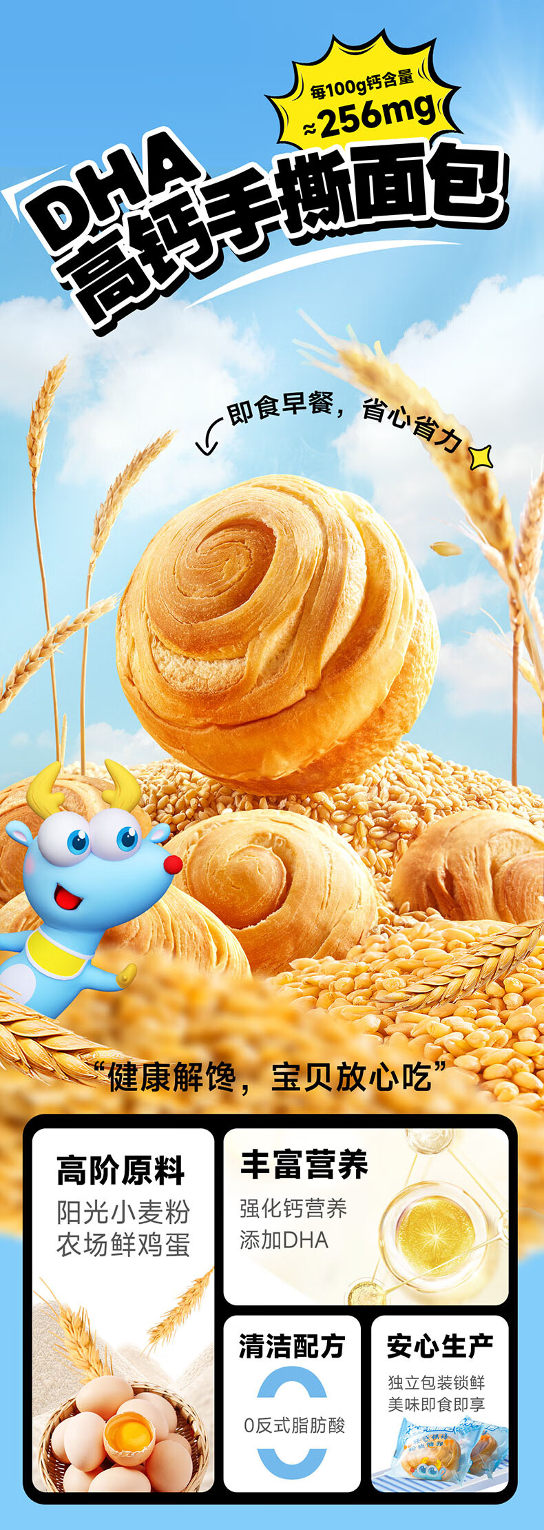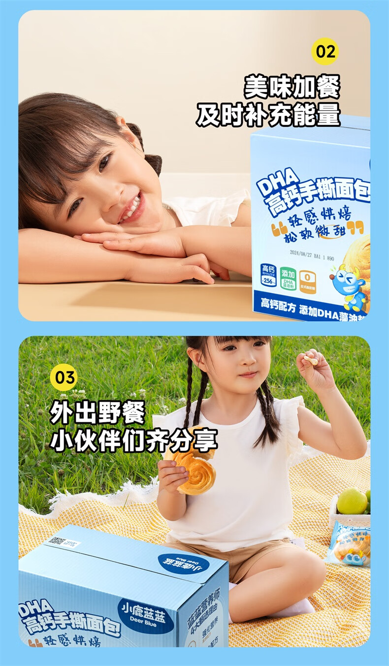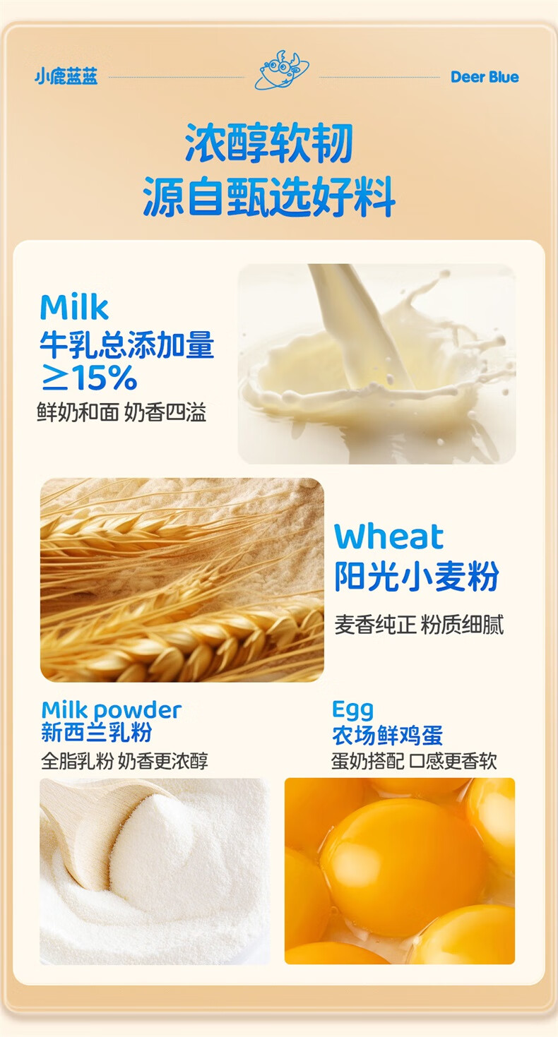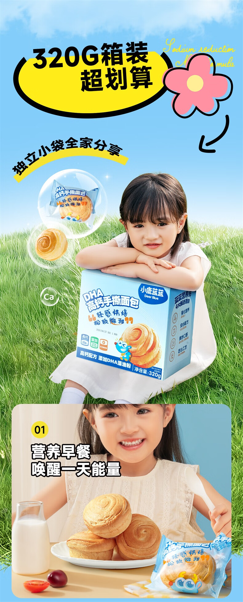 小鹿蓝蓝宝宝零食黄油吐司面包嫩蛋糕面包棒烘焙新鲜短保早餐 【早餐爆款】DHA高钙水牛乳吐司1箱/260g
