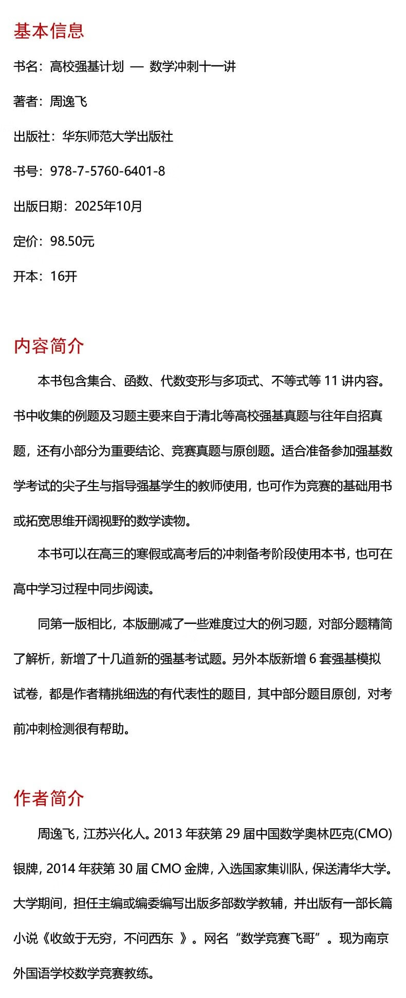 新华正版 高校强基计划.数学冲刺十一讲 教育