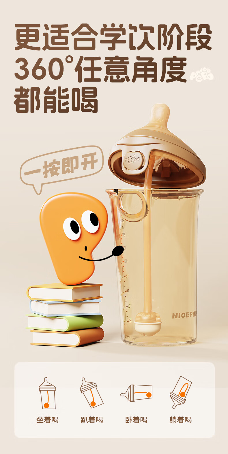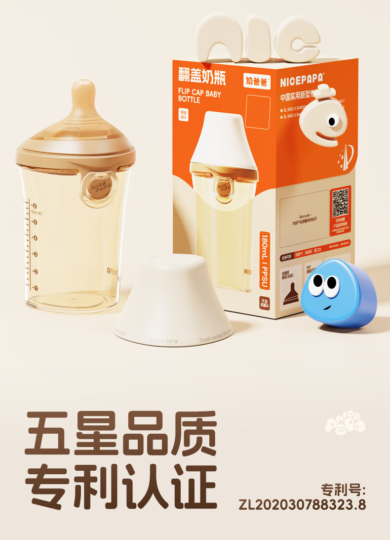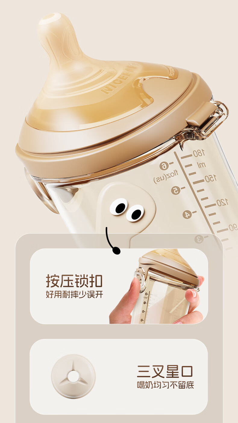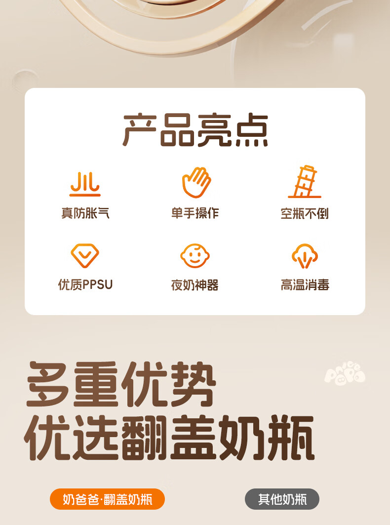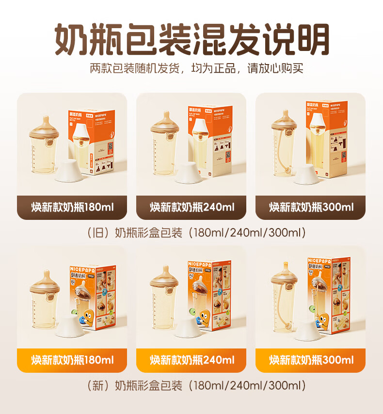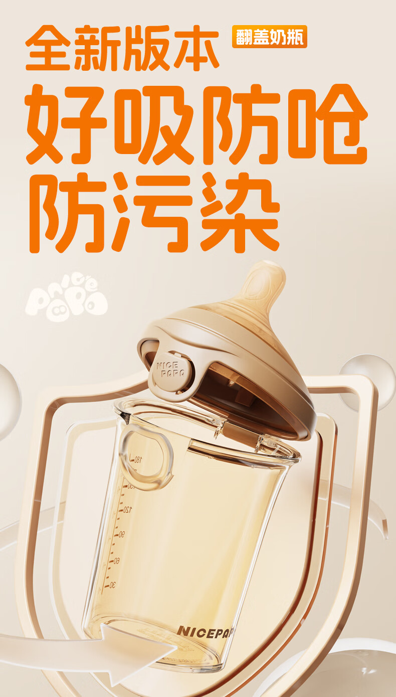 奶爸爸(Nicepapa)翻盖吸管奶瓶一岁以上宝宝PPSU奶瓶1-3岁6个月以上防胀气学饮杯 240ml 12月+ 一字孔水嘴带吸管