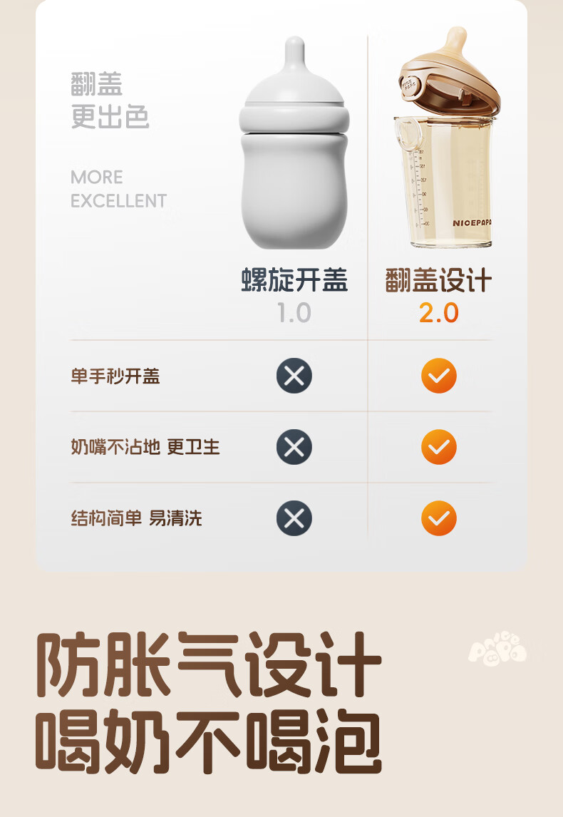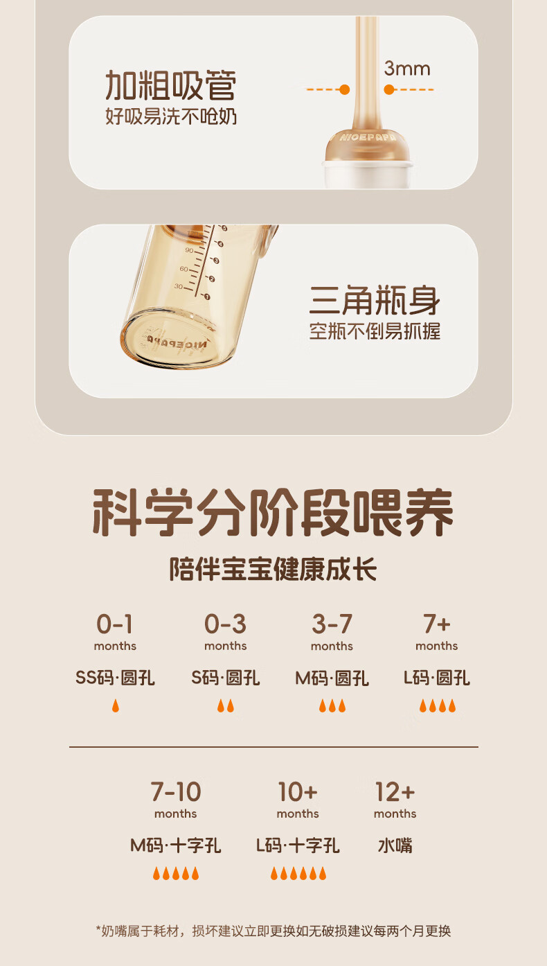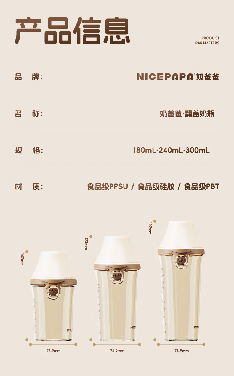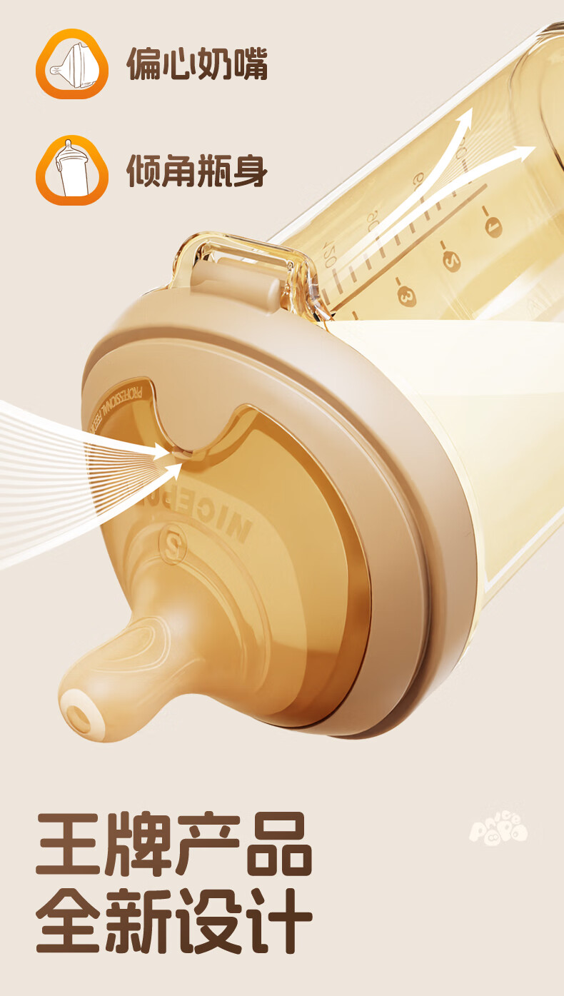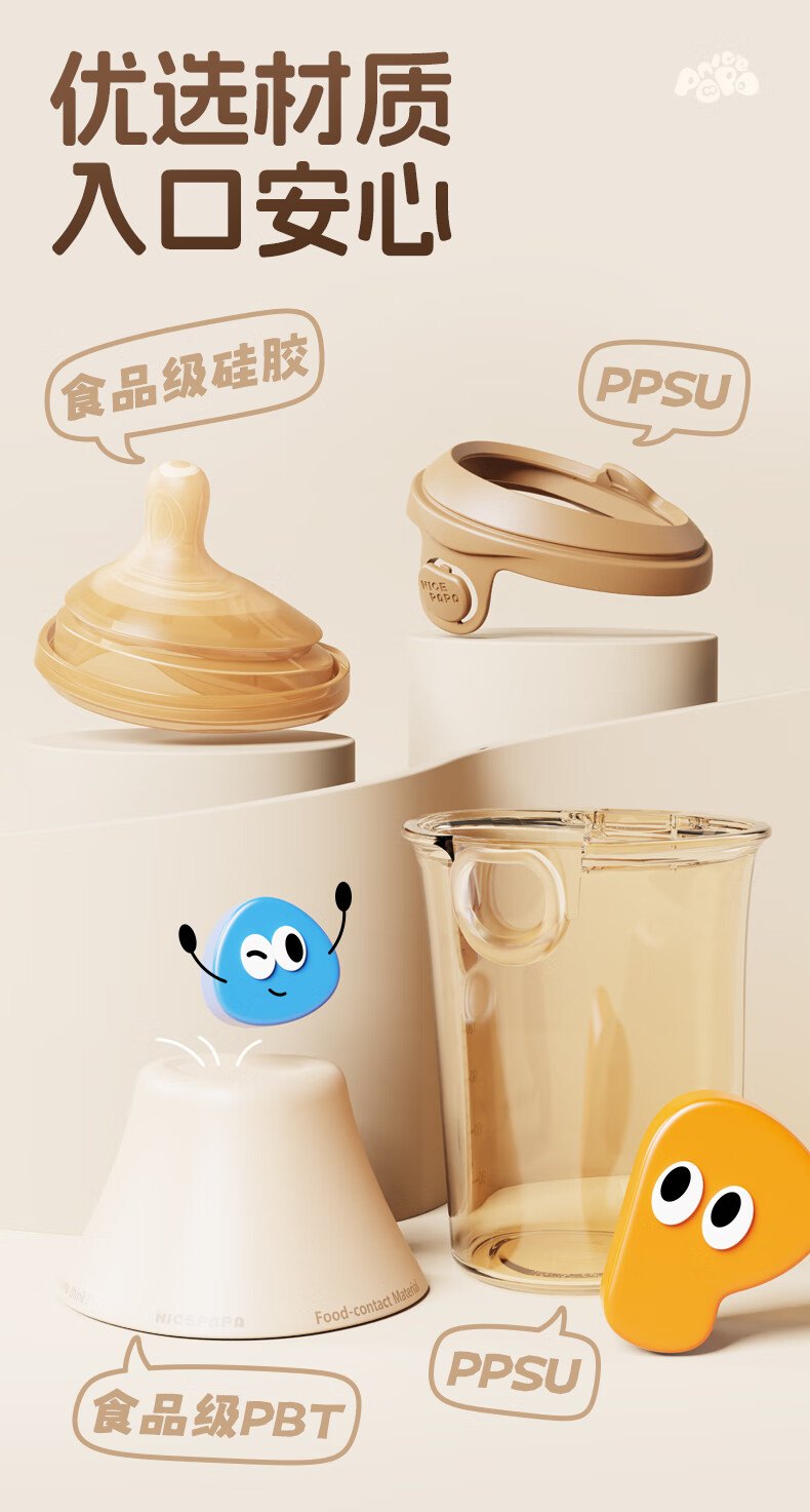 奶爸爸(Nicepapa)翻盖吸管奶瓶一岁以上宝宝PPSU奶瓶1-3岁6个月以上防胀气学饮杯 240ml 12月+ 一字孔水嘴带吸管