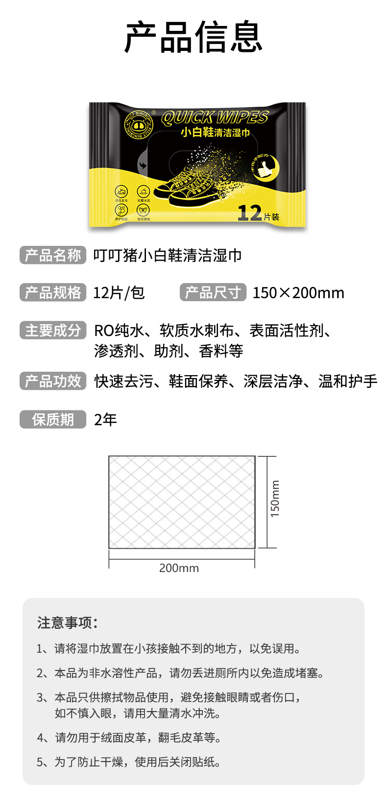 DINGDING PIGGY小白鞋擦鞋湿巾家庭去污擦鞋擦衣服羽绒服去污清洁剂免洗清洁湿巾 小白鞋清洁湿巾72片(6包)
