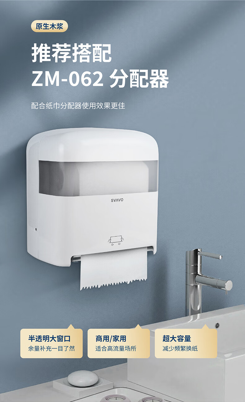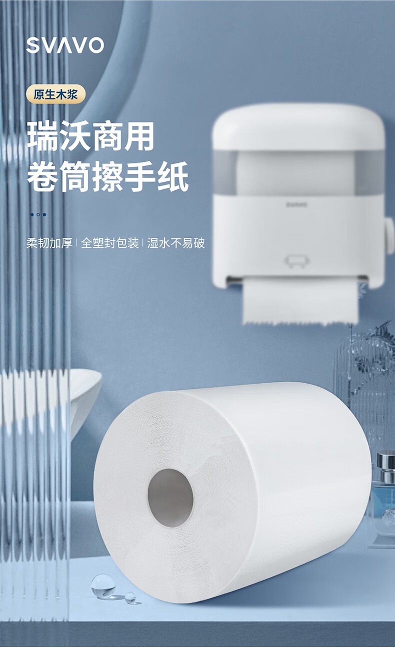 瑞沃(SVAVO)卷筒擦手纸自动感应出纸机纸卫生间有芯大卷纸 1层 1300g/卷*12卷 【V-SJ1300】
