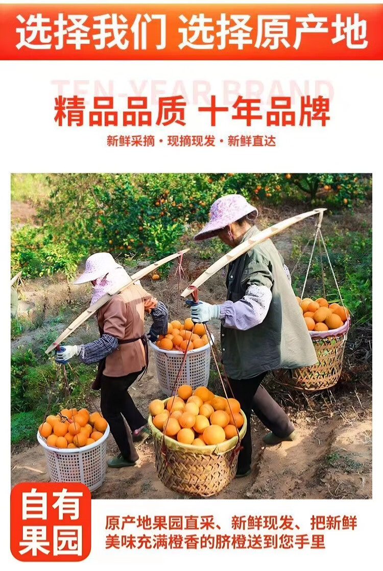(精品果)赣南脐橙 橙子 正宗江西赣州直发 新鲜采摘 送货上门A 带箱10斤 直径70-80mm