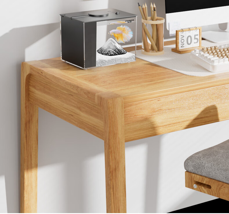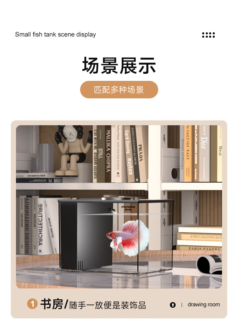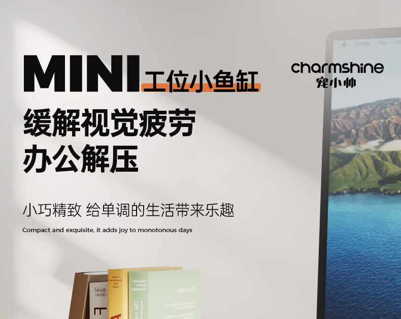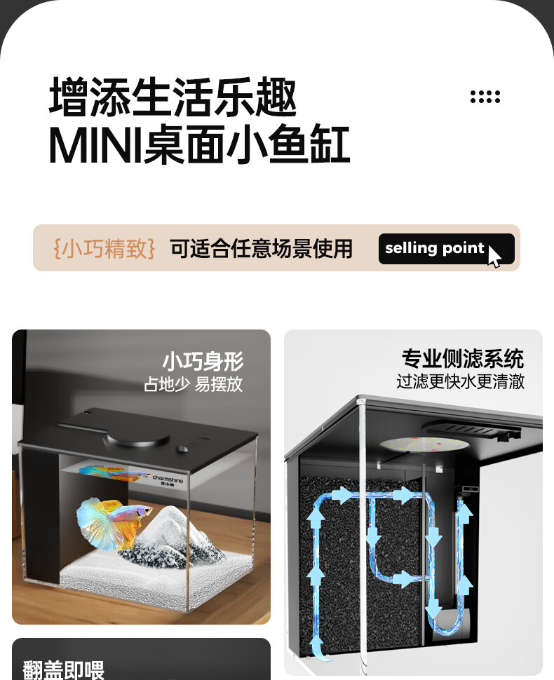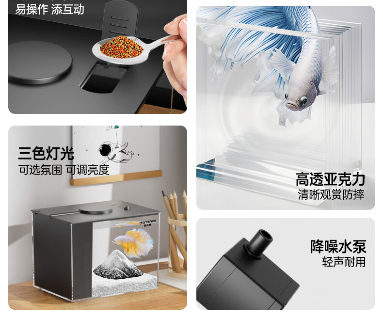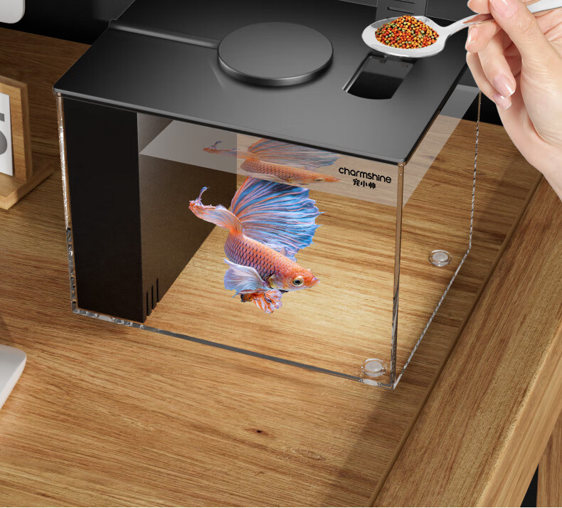 宠小帅智能桌面鱼缸办公桌小鱼缸增氧循环净水一体缸雪山造景工位斗鱼缸 酷感黑【MINI智能鱼缸】 15x11x13CM【小号】