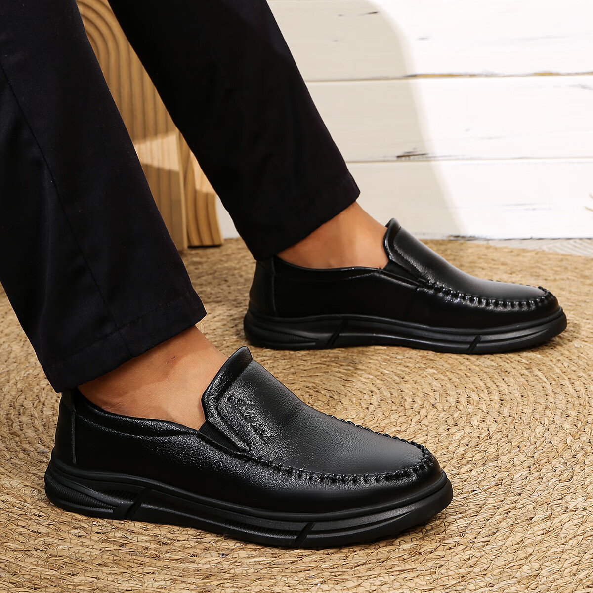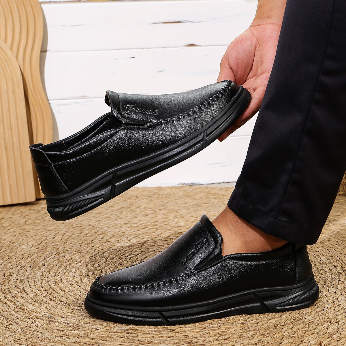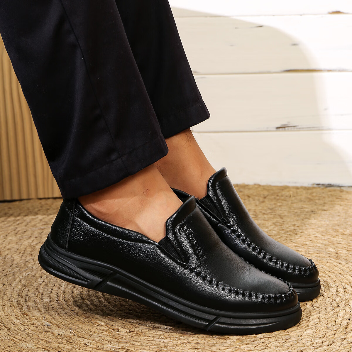 云醍桃语中老年男鞋防滑耐磨舒适商务装男士皮鞋秋季新款一脚蹬轻便皮鞋 黑色 44