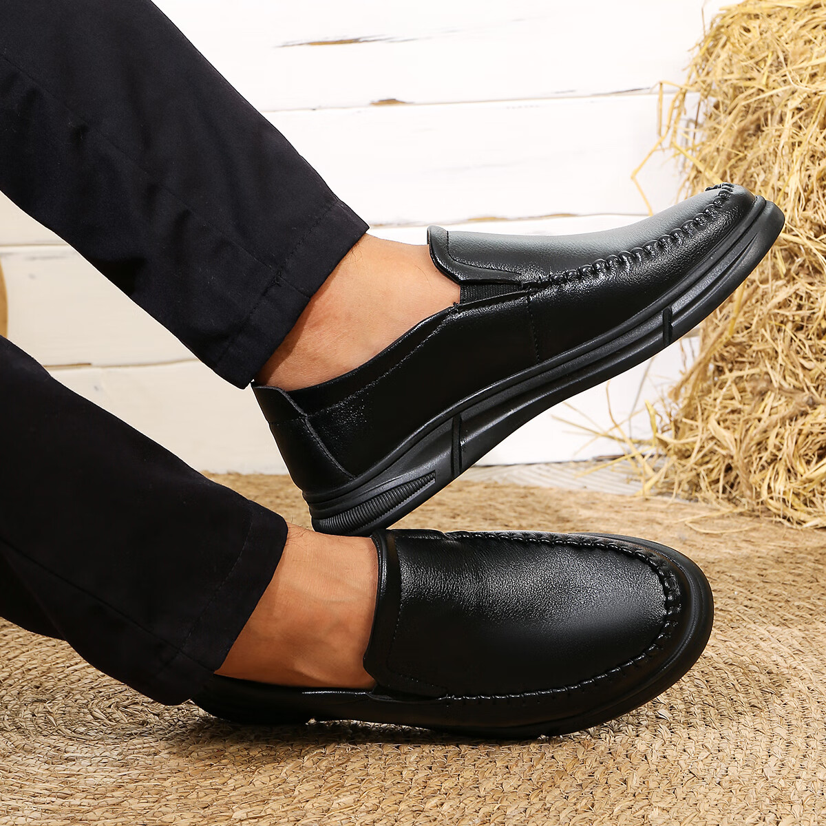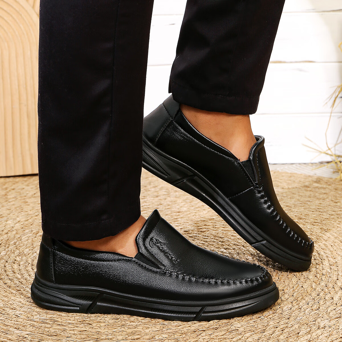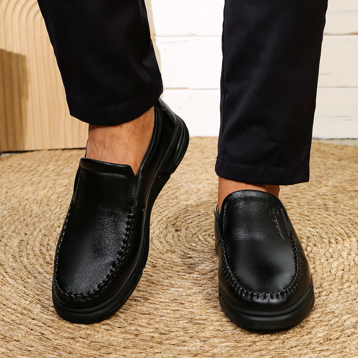 云醍桃语中老年男鞋防滑耐磨舒适商务装男士皮鞋秋季新款一脚蹬轻便皮鞋 黑色 44