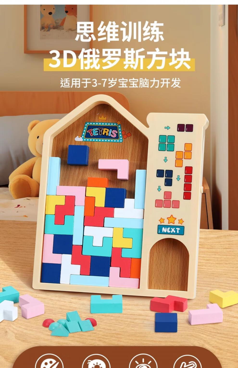 俄罗斯方块积木拼图两到岁幼儿童玩具力开发 大号俄罗斯方块+夹棍球桌游
