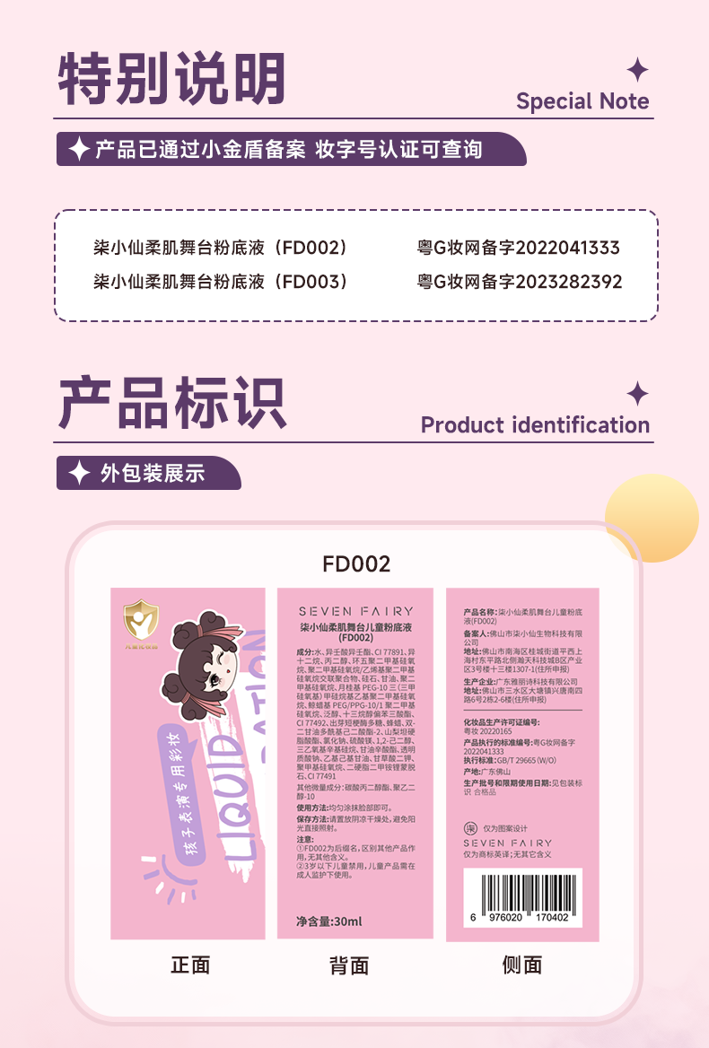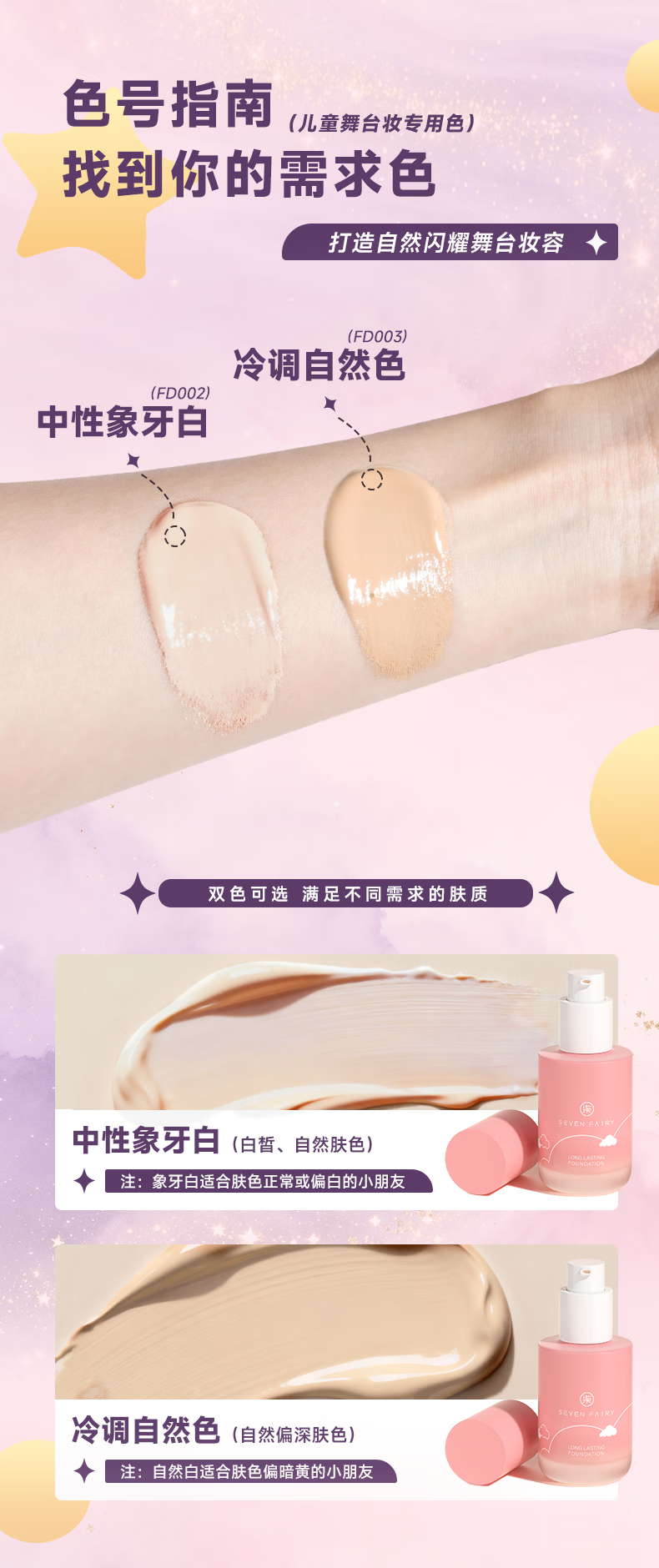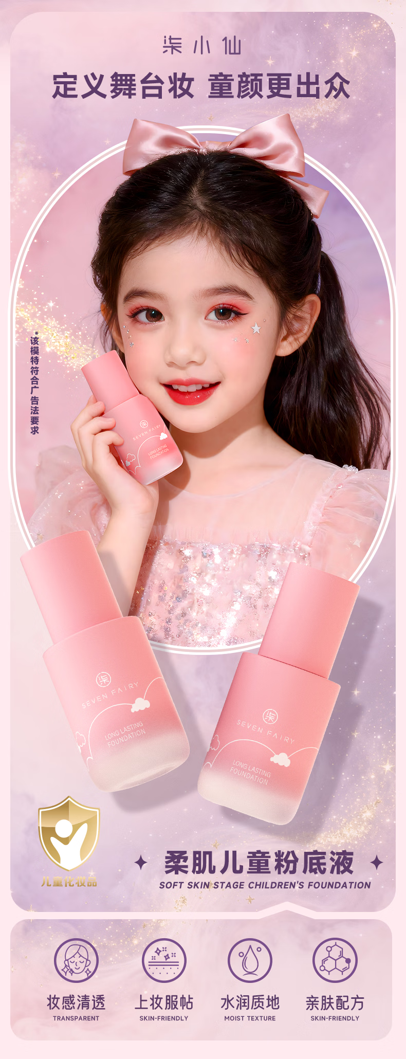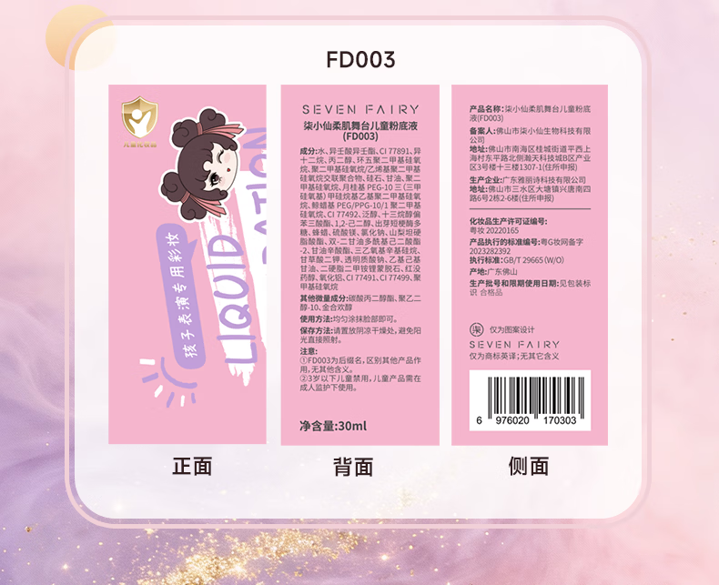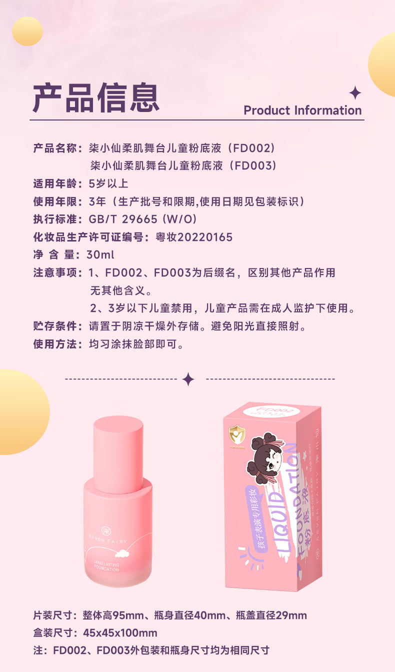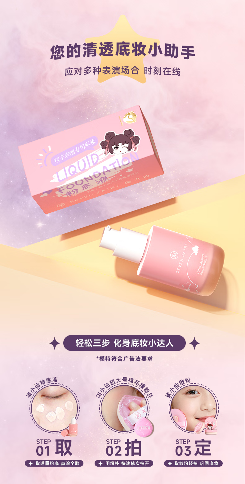 柒小仙 儿童粉底液 化妆品彩妆舞台妆元旦春节期末表演舞蹈 中性象牙白(全国京快配送)