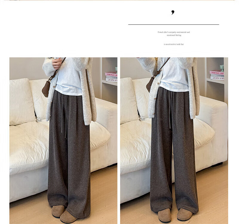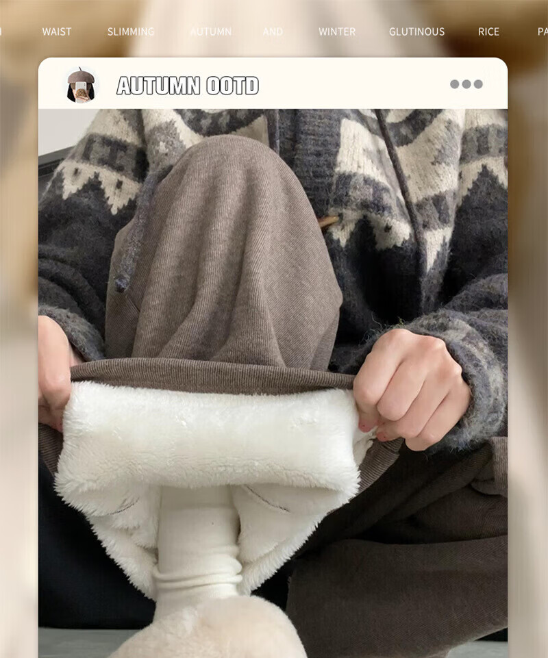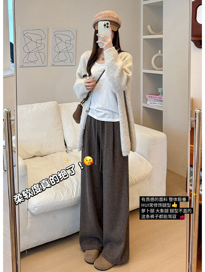 诗莉奥(SHILIAO)慵懒羊羔绒糯米裤子女秋冬加绒新款高腰休闲小个子直筒阔腿 黑色羊羔绒 加绒【无口袋】 L 适合80-110