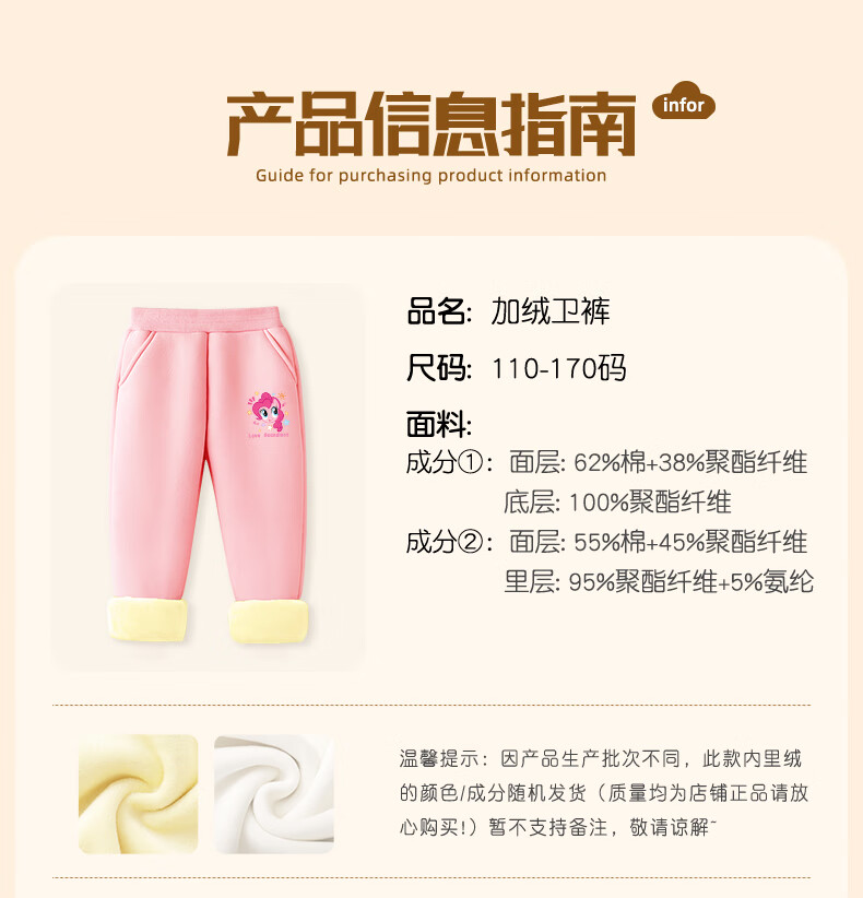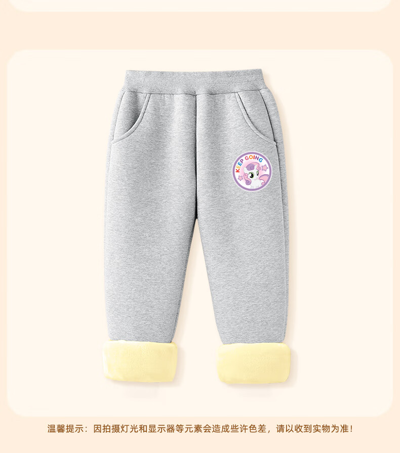 小马宝莉女童加绒裤子2025新款儿童秋冬保暖厚款长裤女孩运动卫裤 【加绒运动卫裤】闪耀碧琪灰 140