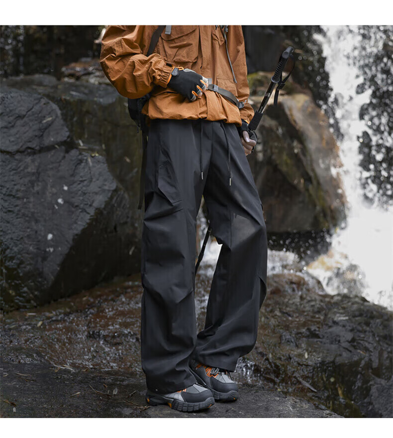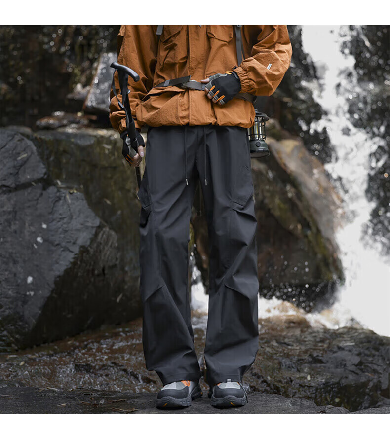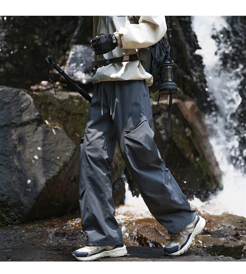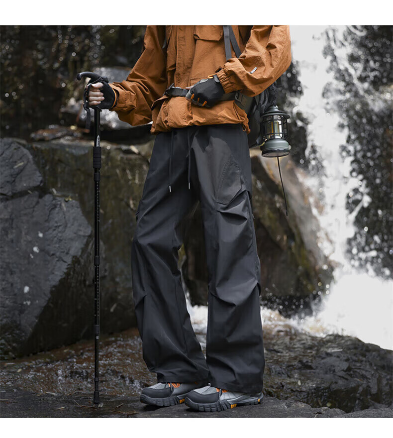 花花公子(PLAYBOY)冲锋裤男2025秋冬季新款伞兵休闲裤子男加绒宽松直筒 深灰色 加绒款 4XL (建议175-188斤)