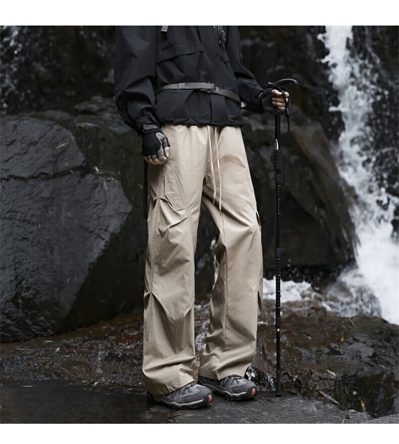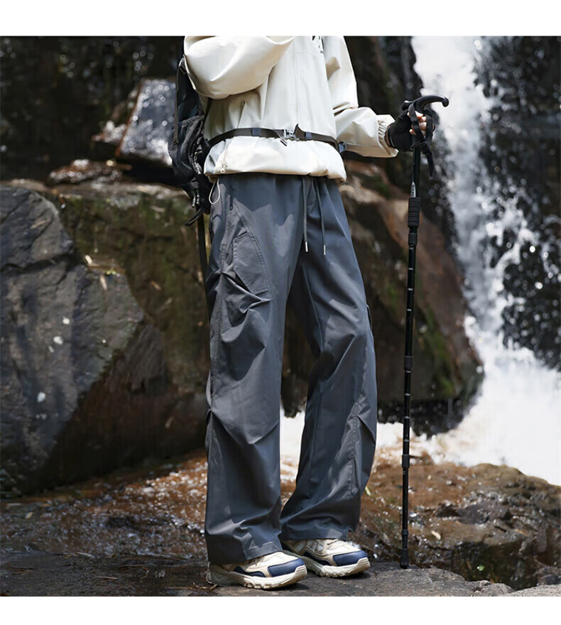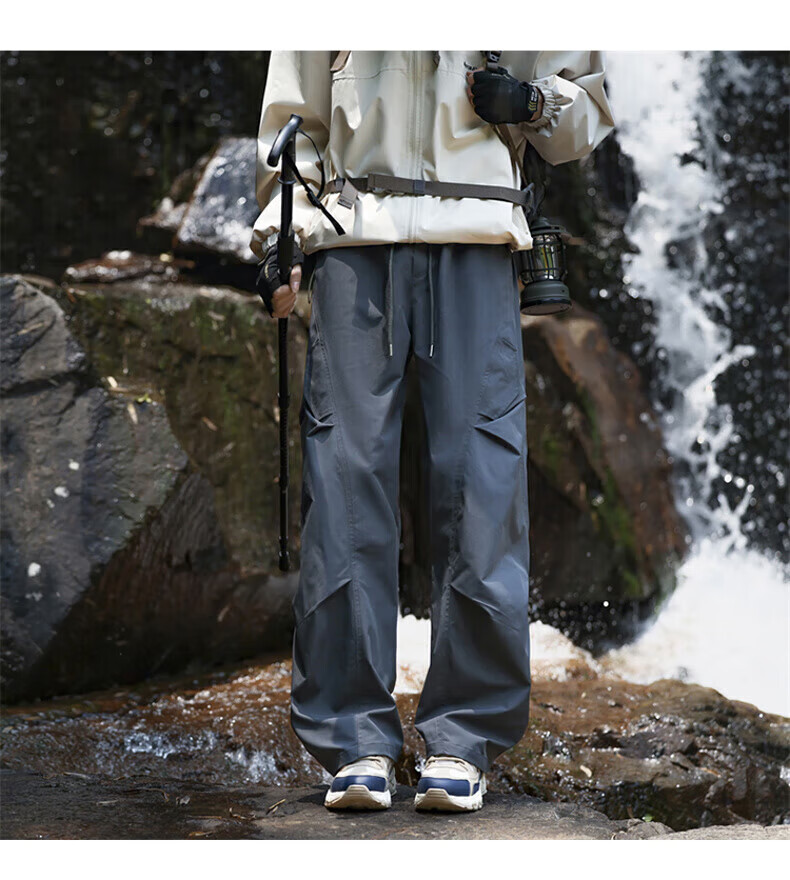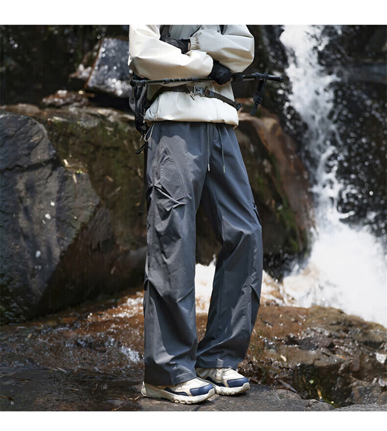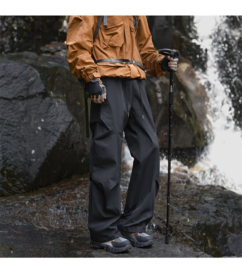 花花公子(PLAYBOY)冲锋裤男2025秋冬季新款伞兵休闲裤子男加绒宽松直筒 深灰色 加绒款 4XL (建议175-188斤)