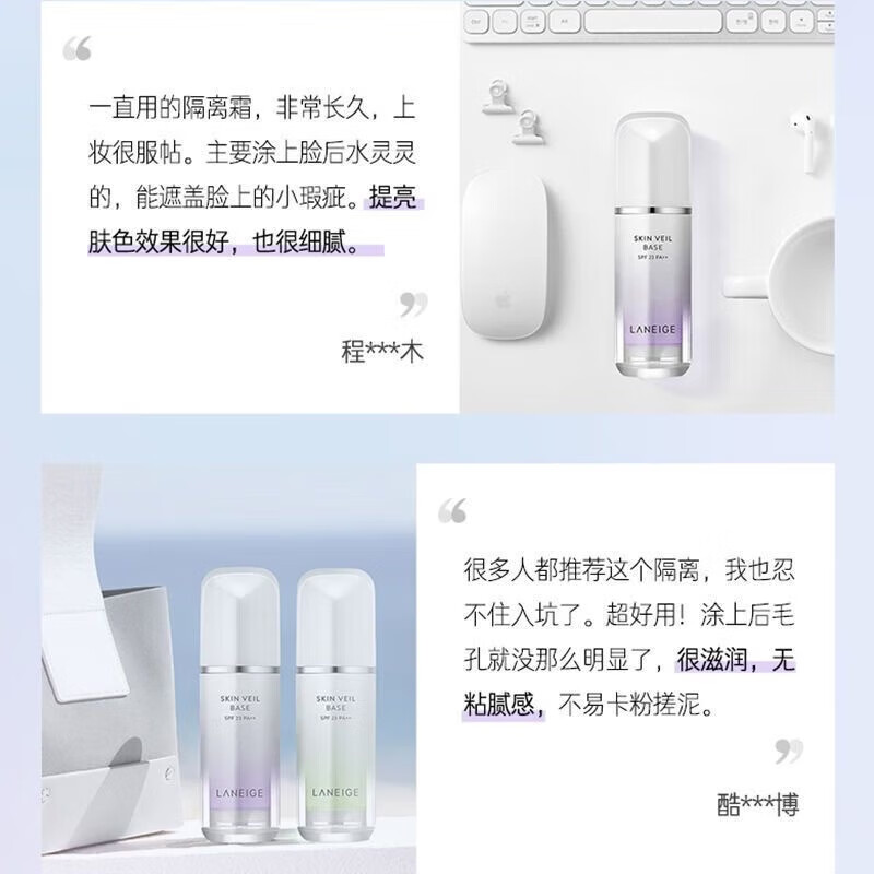 兰芝隔离霜雪纱丝柔防晒妆前隔离乳男女化妆品提亮肤色 紫色隔离(修饰暗沉黄皮)30ml