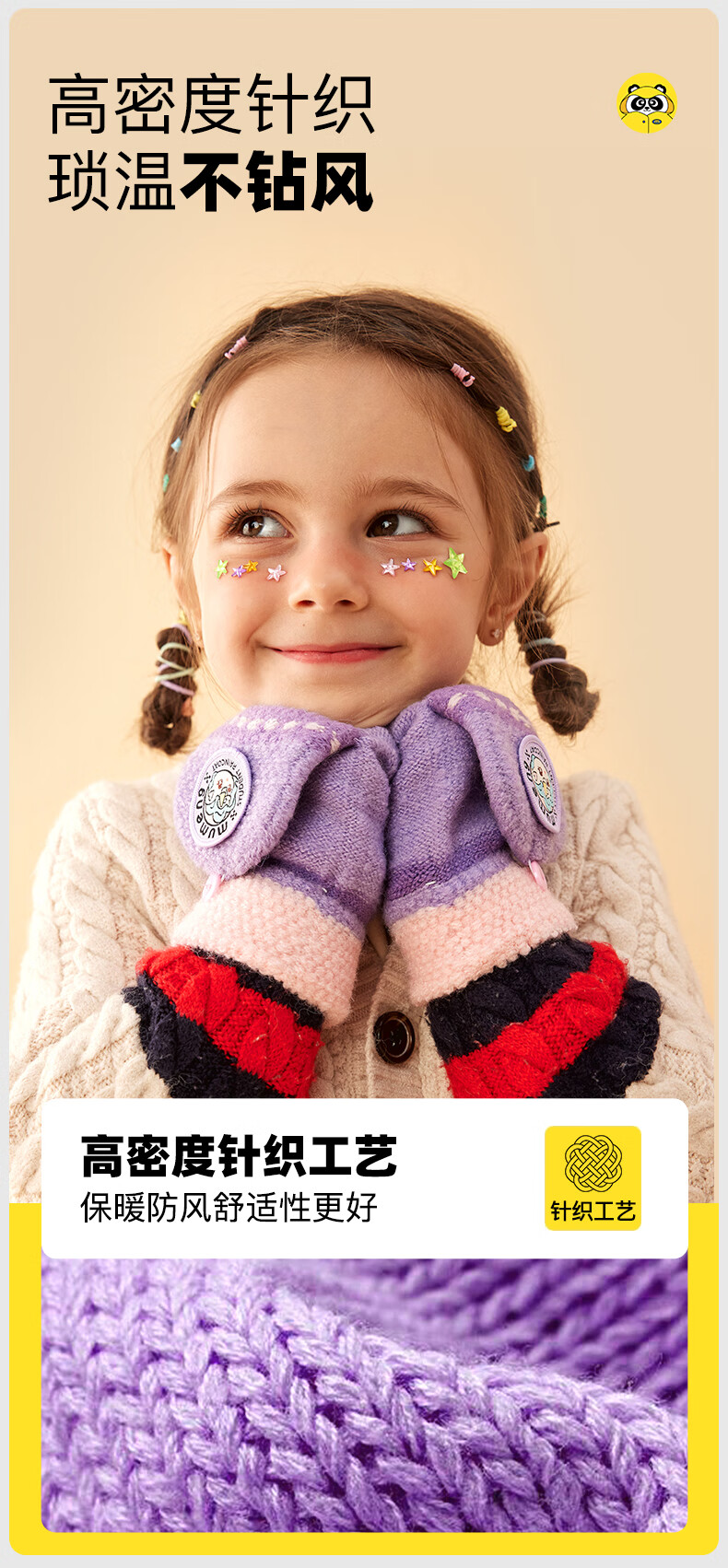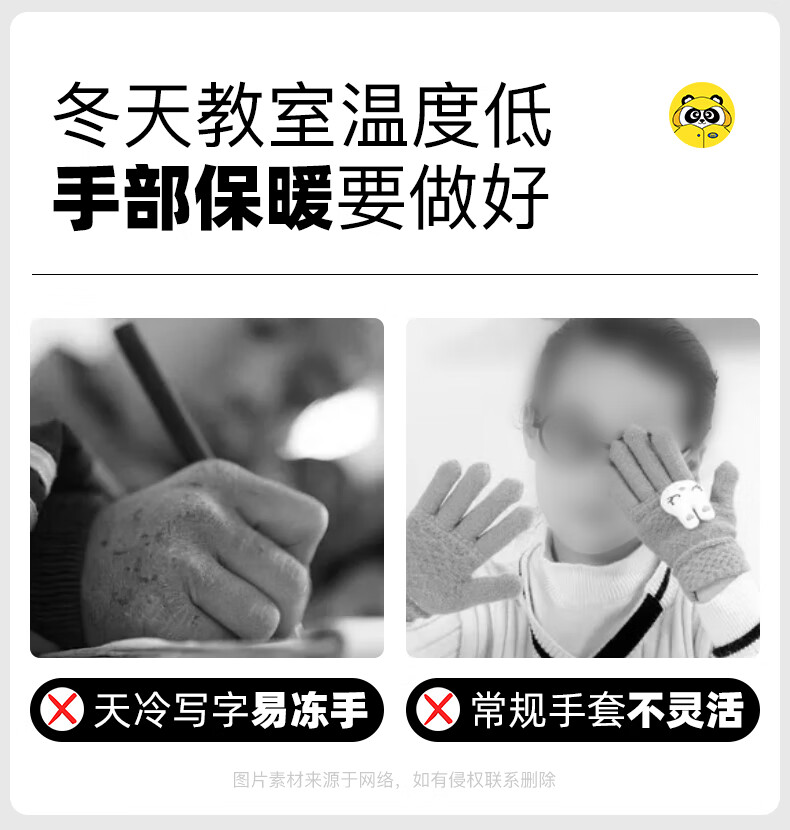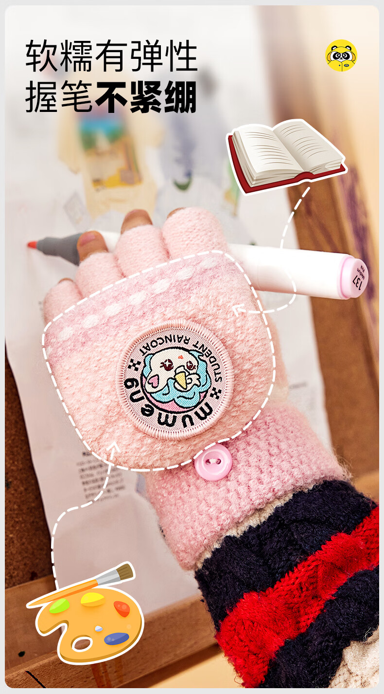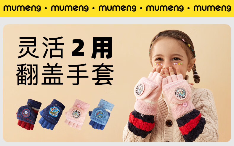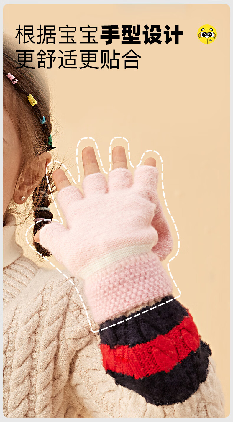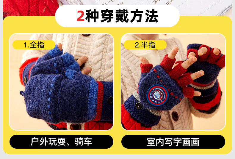 牧萌儿童手套男童女童秋冬季翻盖手套保暖小学生半指写字可爱毛线手套 深蓝恐龙【半指-翻盖两用】 2-9岁宝宝【高弹力】