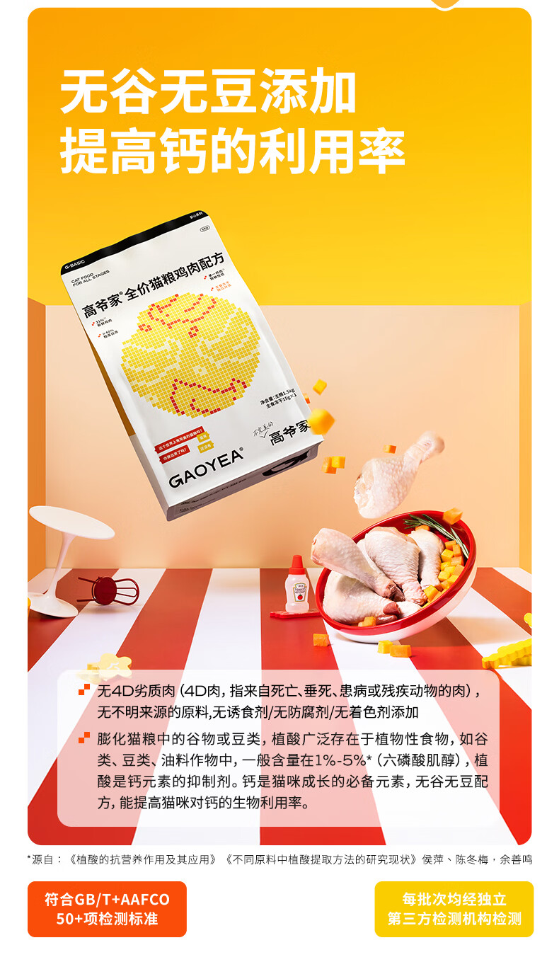 高爷家麦肯鸡全价猫粮 鲜肉含量31% 升级2.0鸡肉配方 麦肯鸡1.5kg*3包