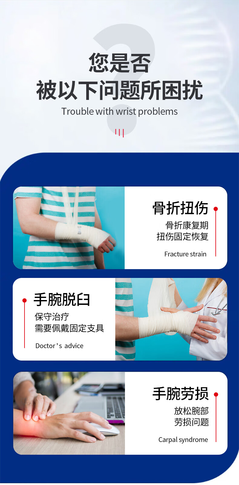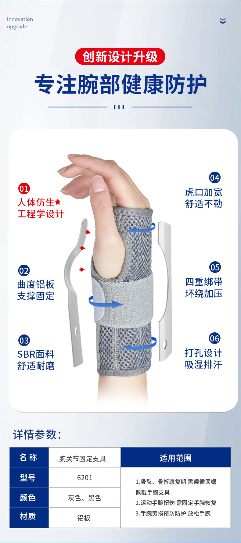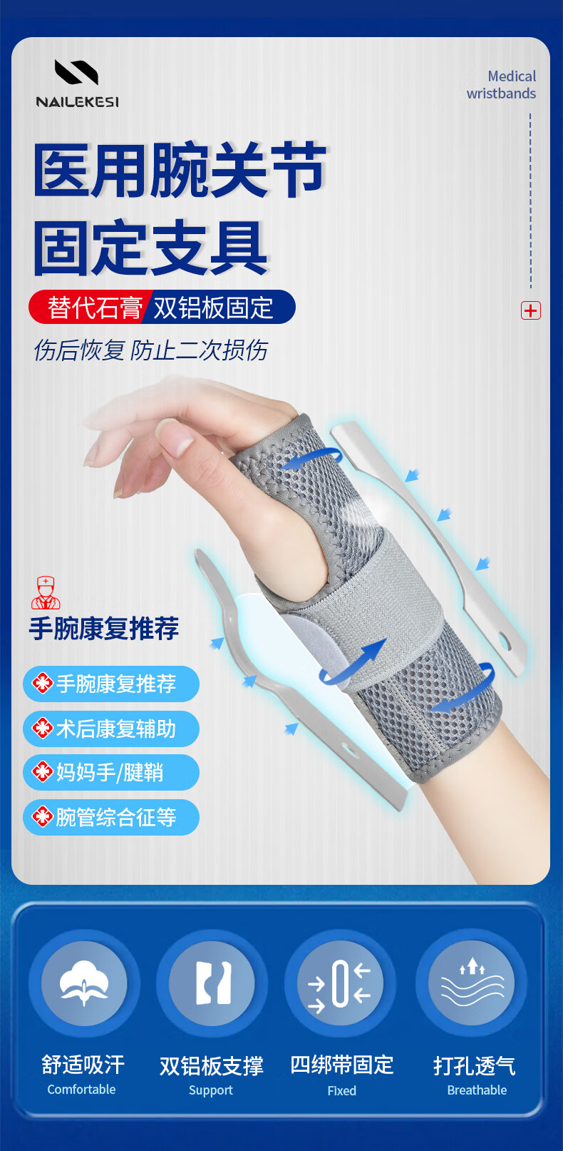 耐力克斯腕关节医用固定钢板护腕手腕管综合征扭伤护具腱鞘炎骨折支具绑带