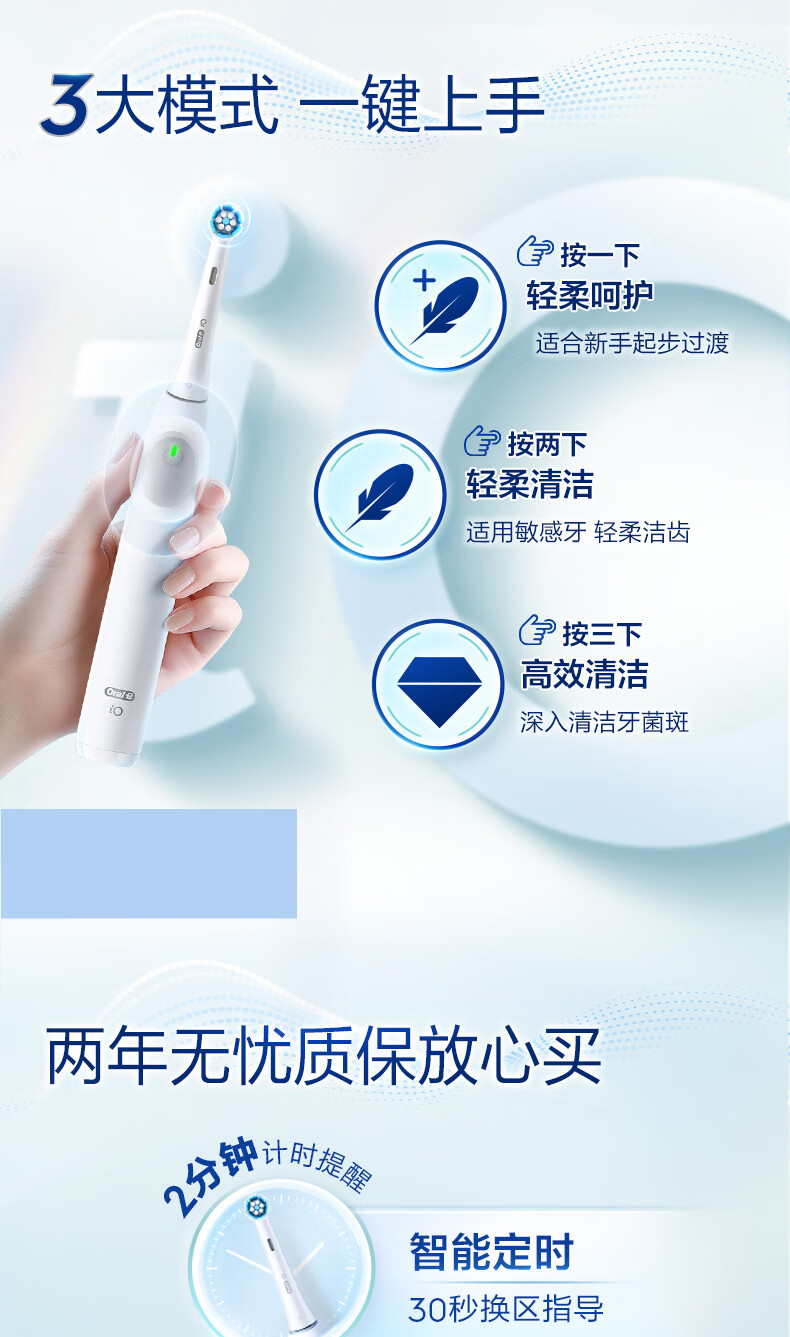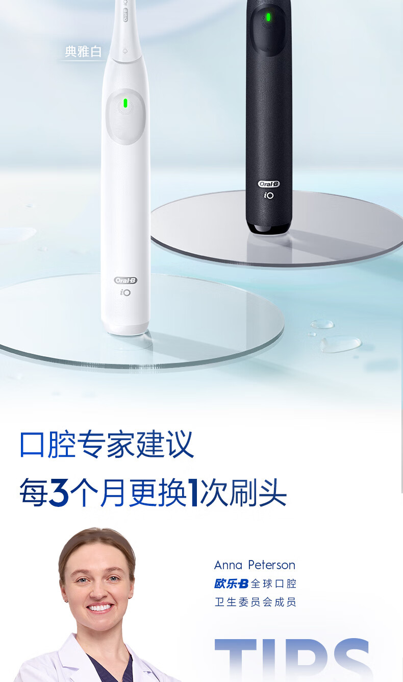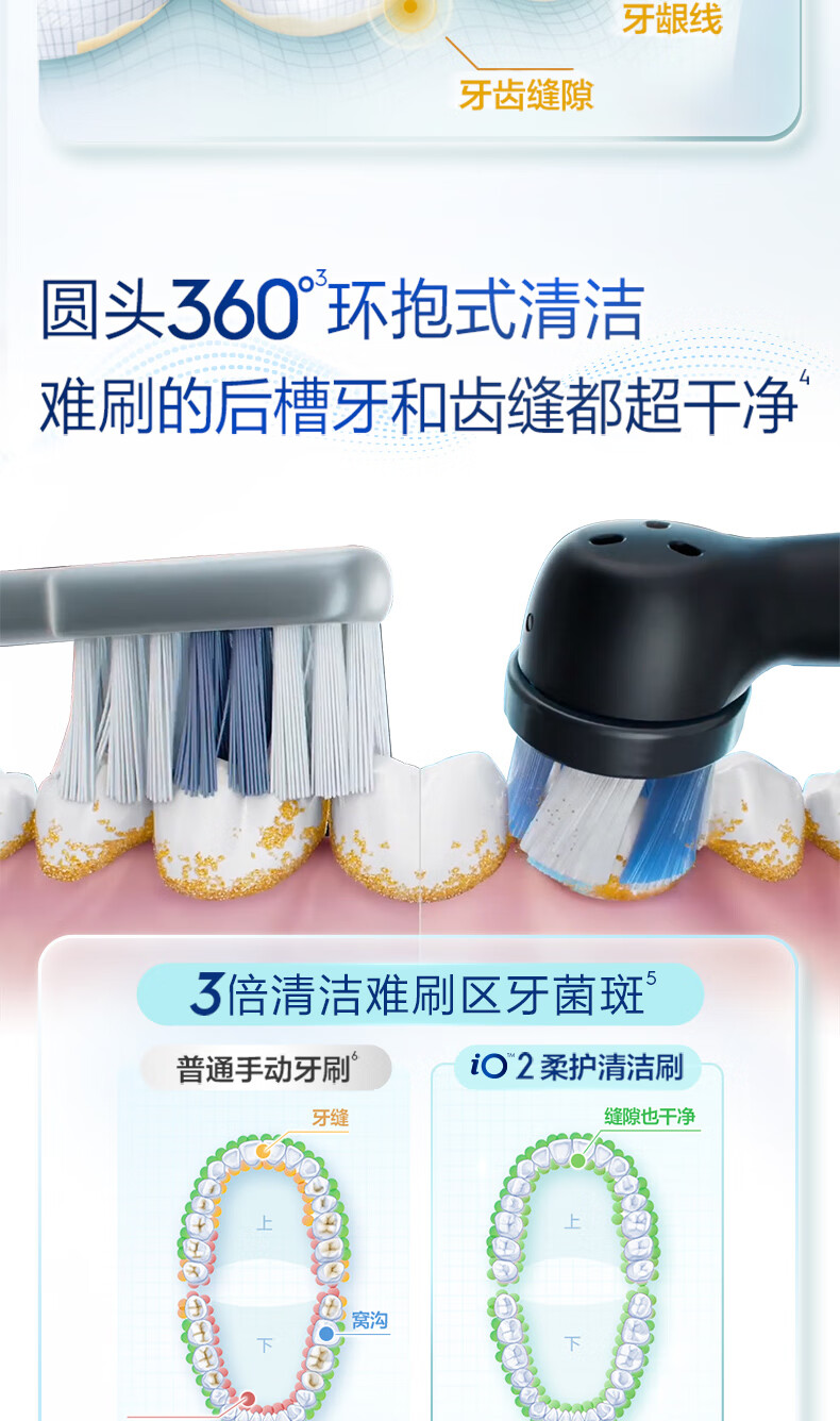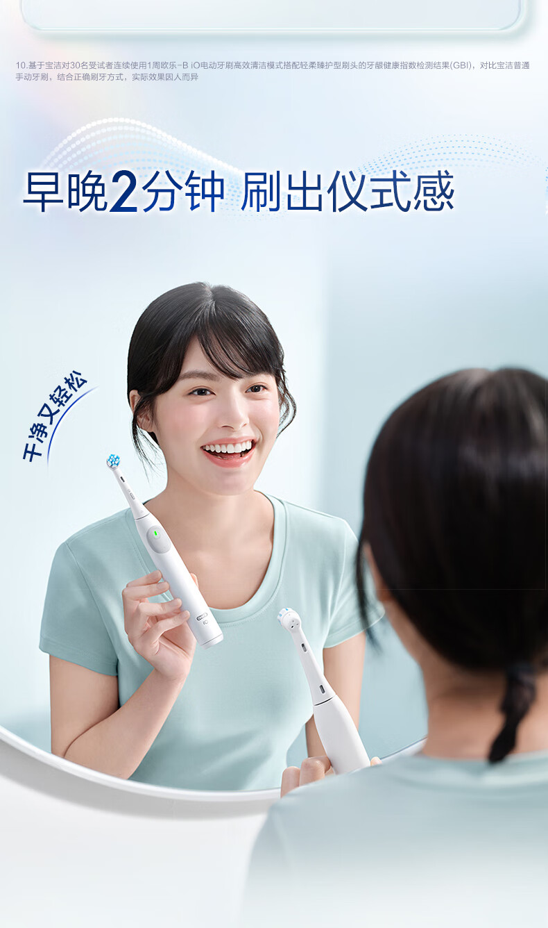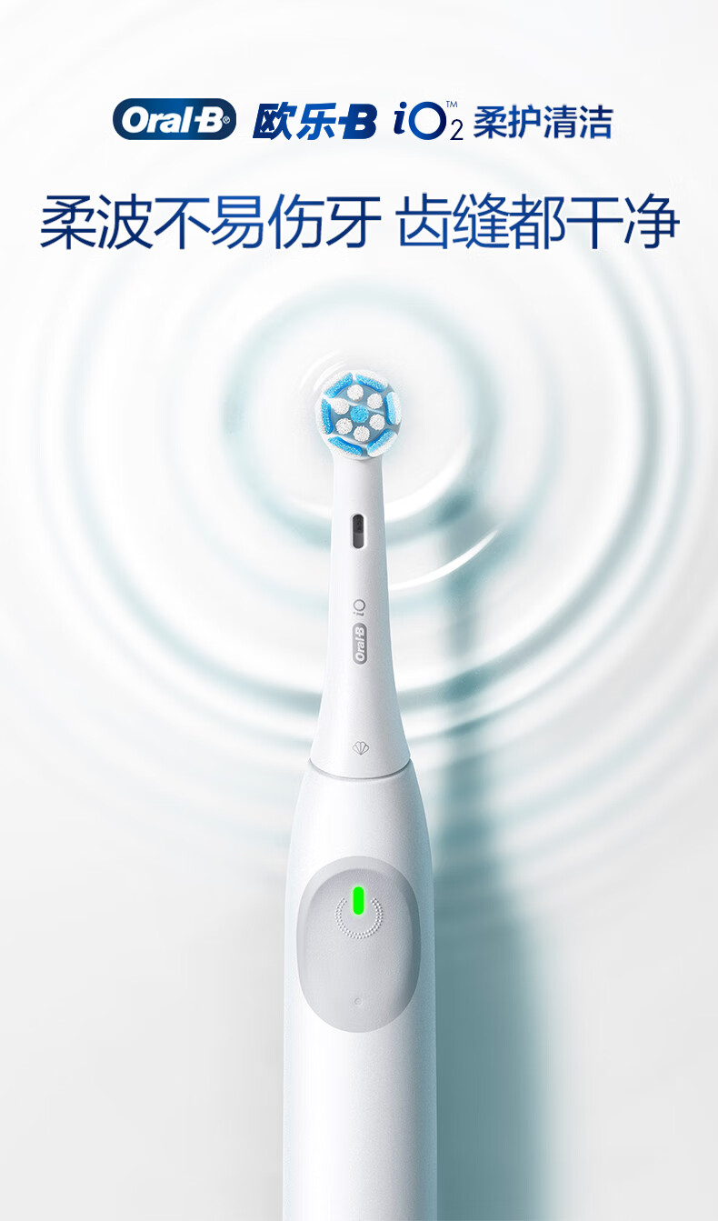 欧乐B德国进口智能电动牙刷iO2典雅白刷头*1柔波双净刷国家补贴京东自营生日礼物情侣送礼赠新年礼物