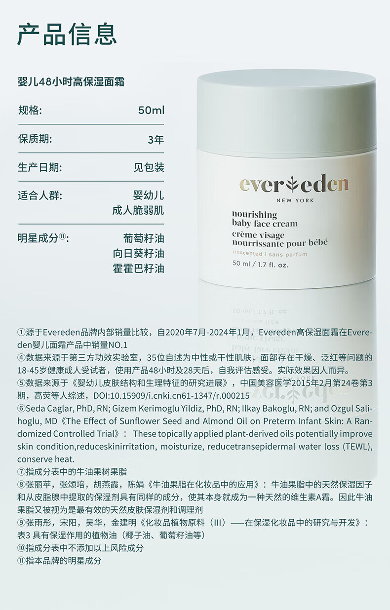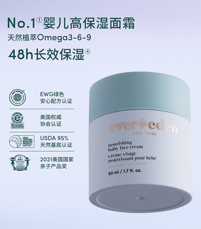 EVER EDEN儿童面霜宝宝面霜安唯伊婴儿面霜高保湿面霜保湿滋润补水润肤 【星品推荐】高保湿面霜50ml