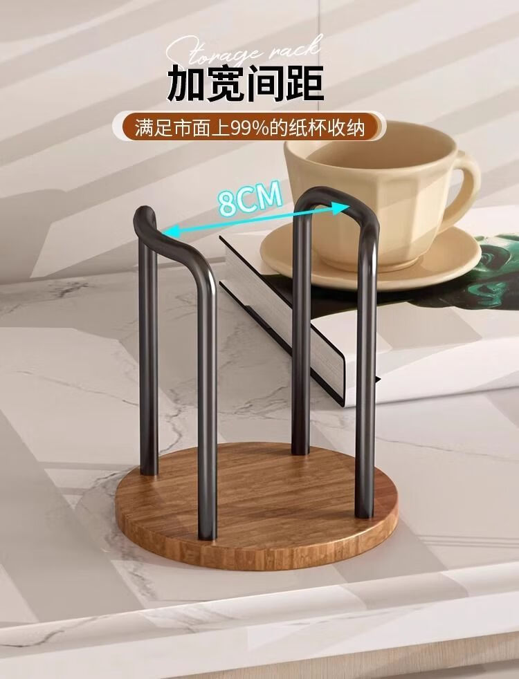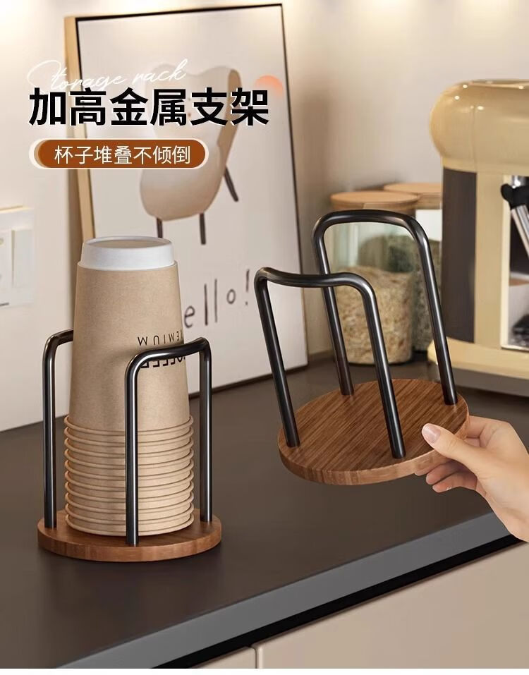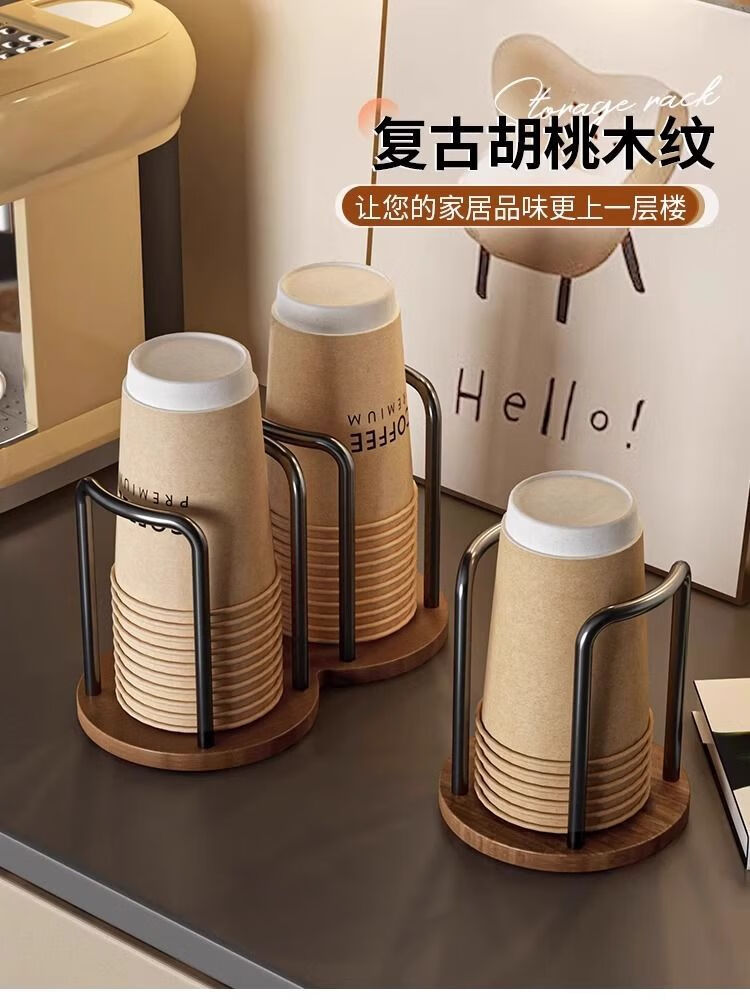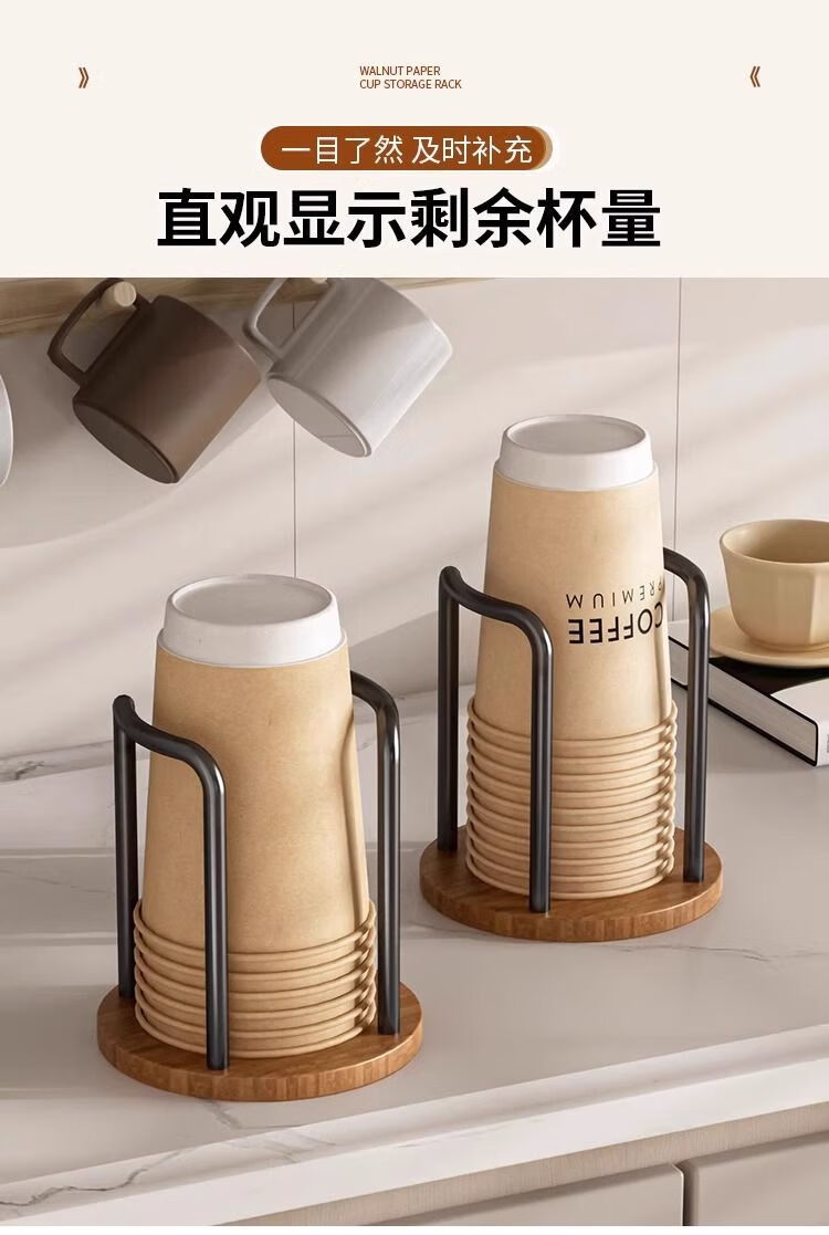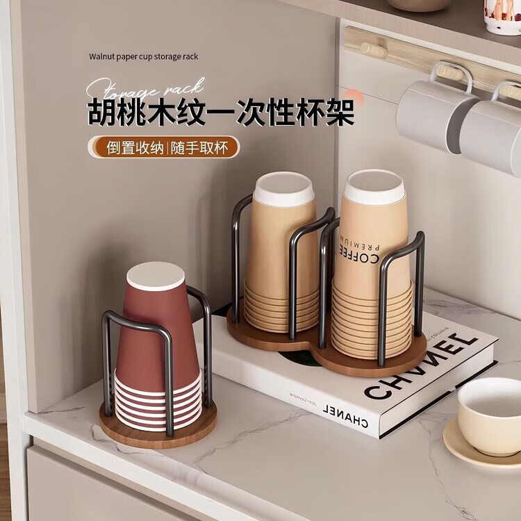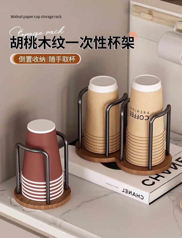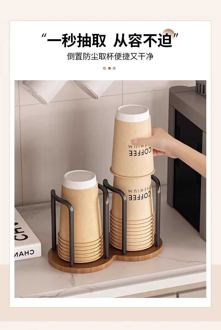 简漾一次性杯架高级杯子桌面防尘装水杯收纳置物架家用茶杯纸杯取杯器 金色款 竹韵杯架一胡桃木色-单