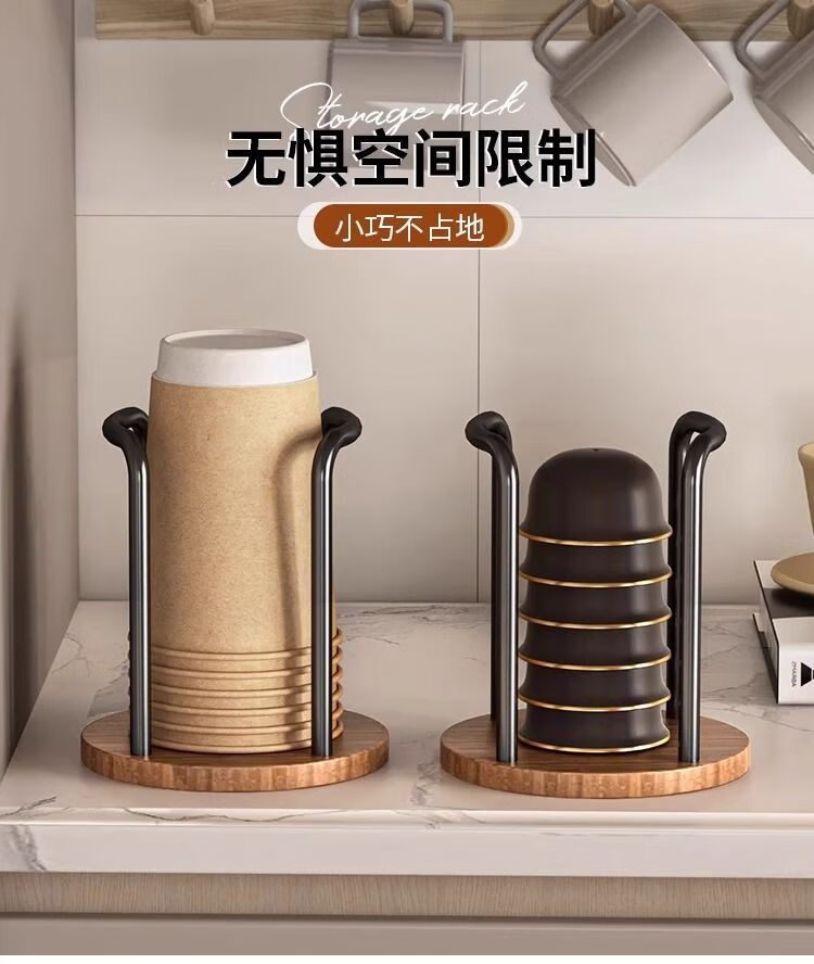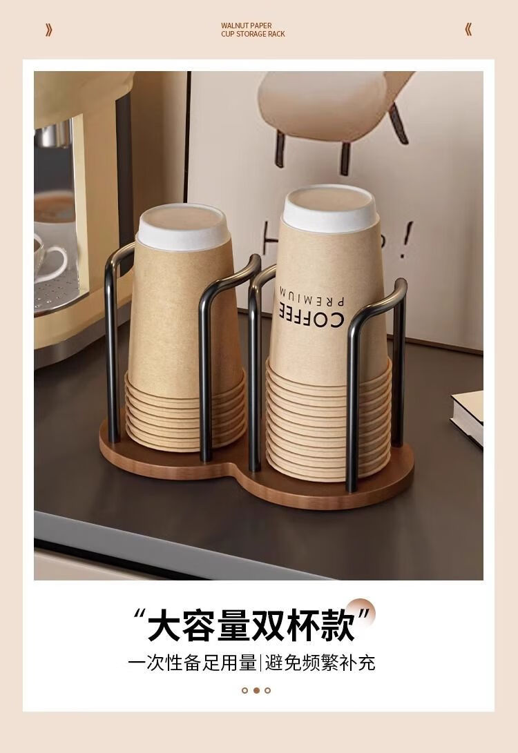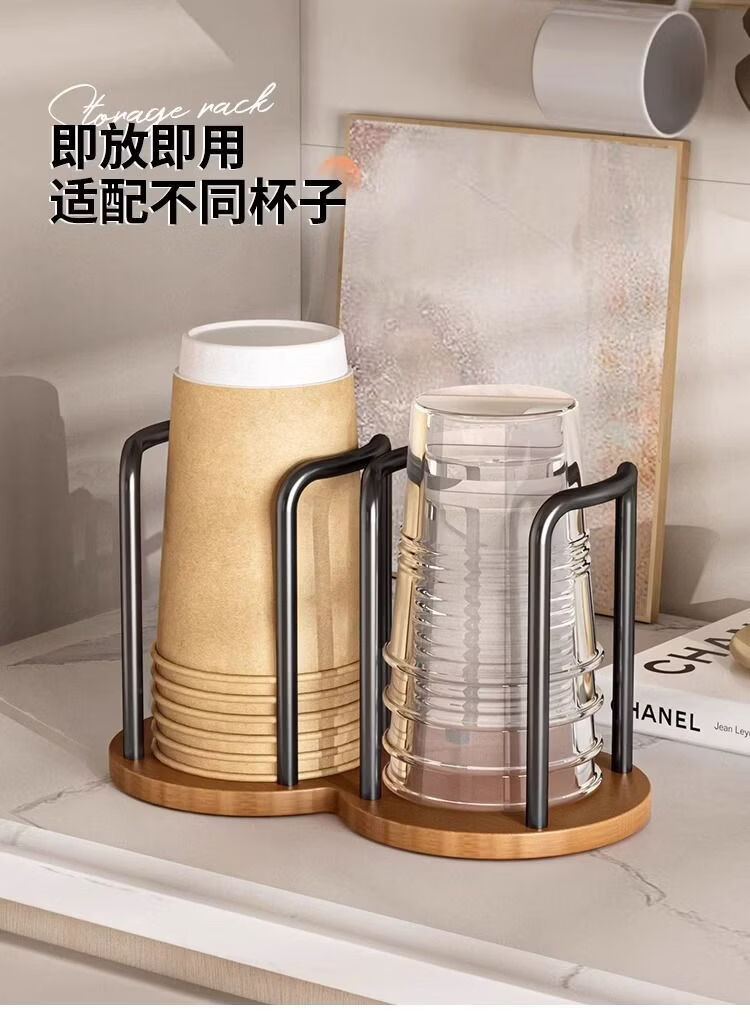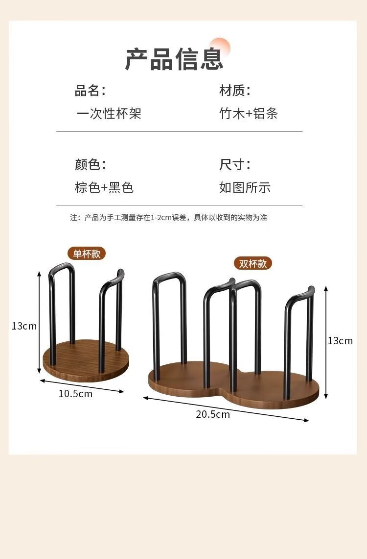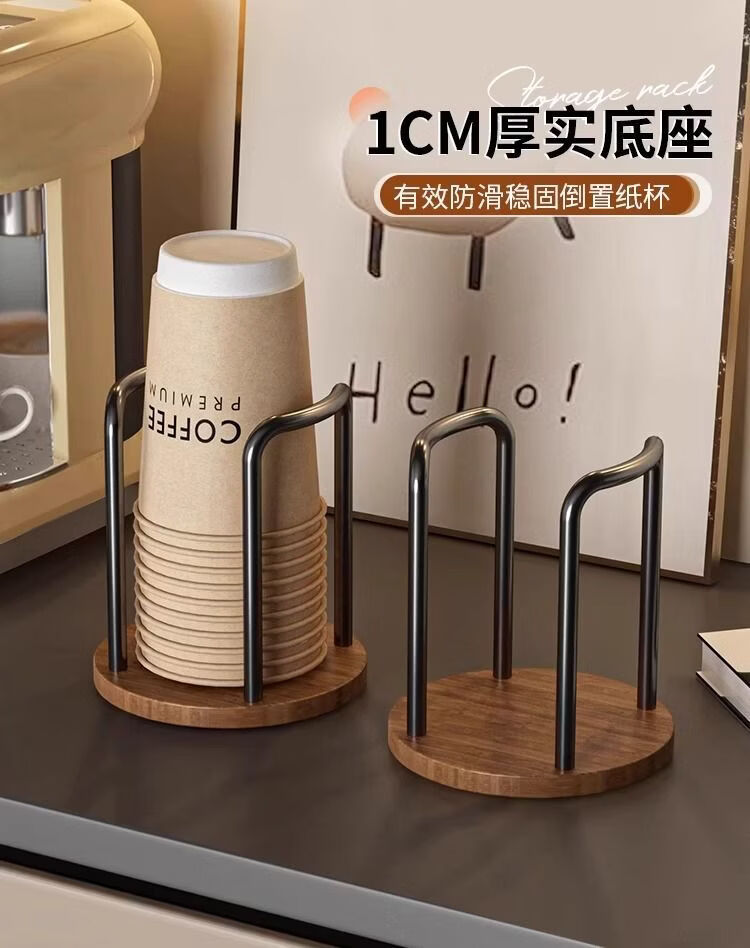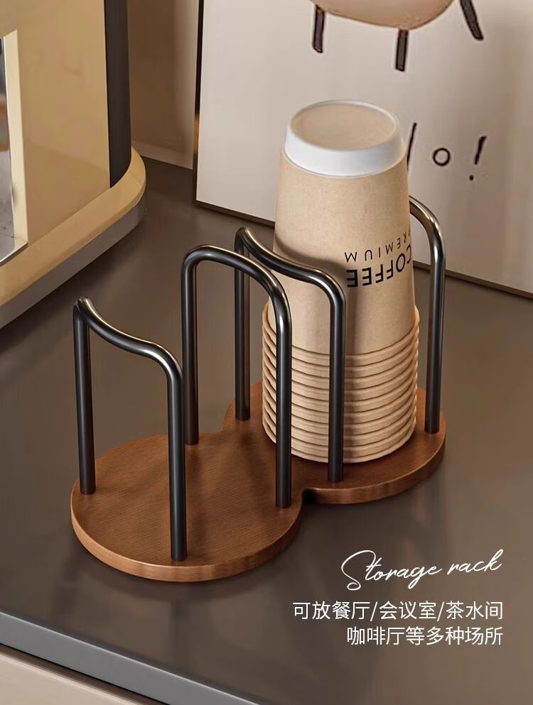 简漾一次性杯架高级杯子桌面防尘装水杯收纳置物架家用茶杯纸杯取杯器 金色款 竹韵杯架一胡桃木色-单