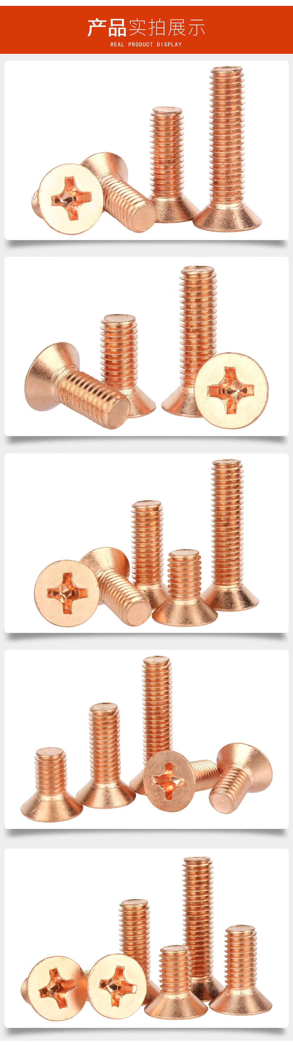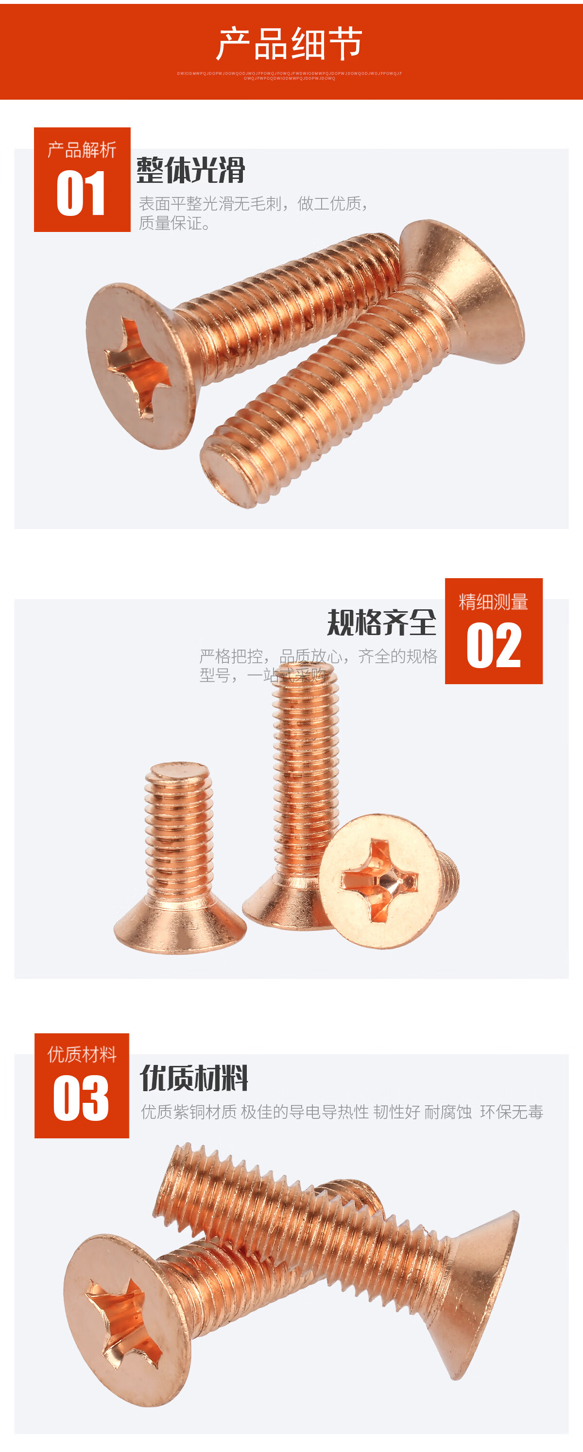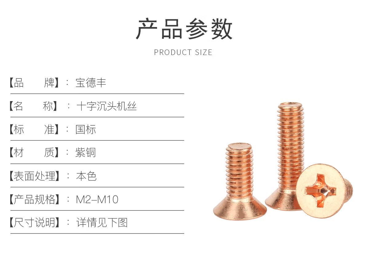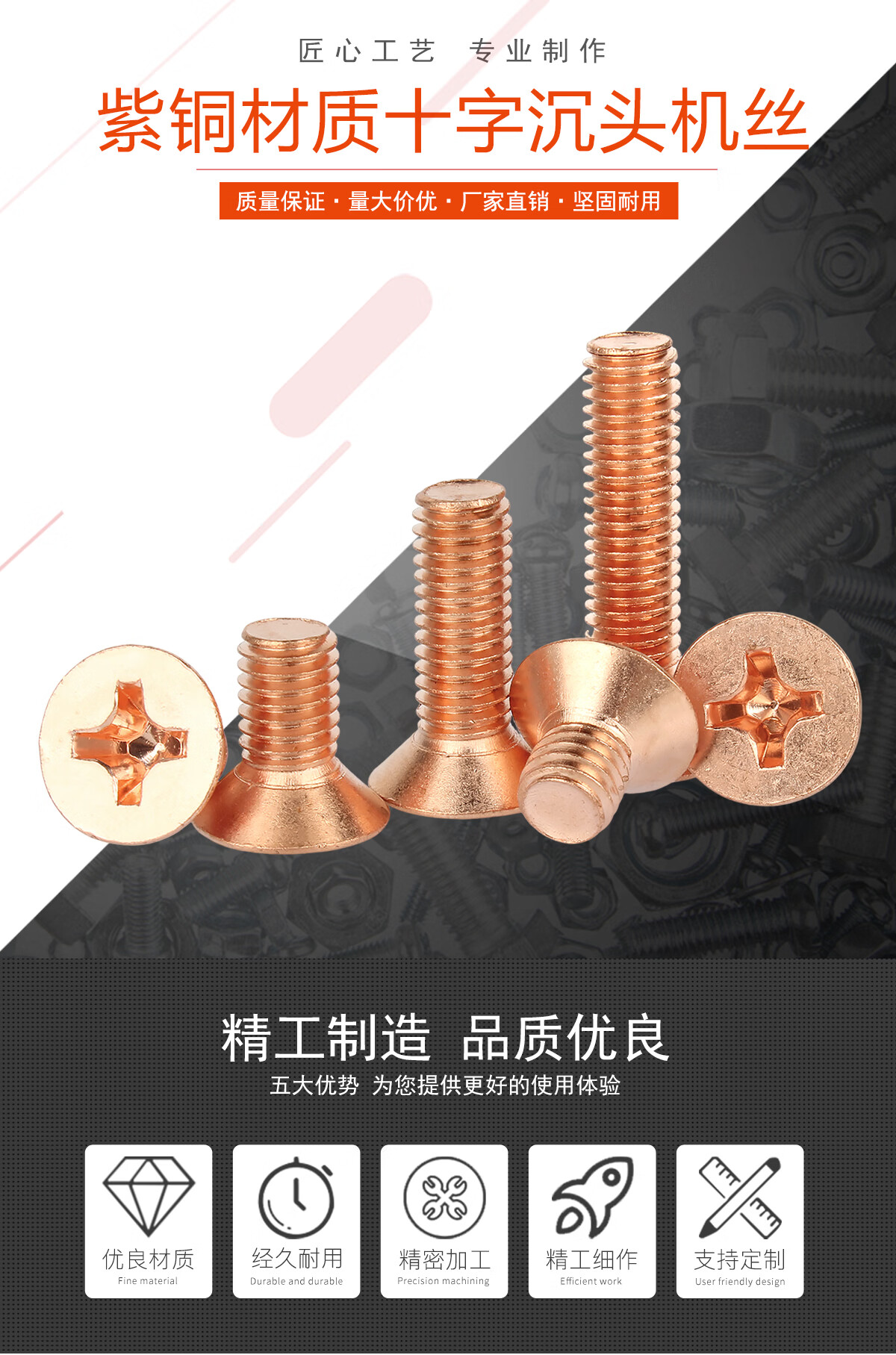 宝德丰紫铜十字平机螺丝紫铜沉头螺丝紫铜GB819 M2M2.5M3M4M5M6M8M10mm M2x4[20只]