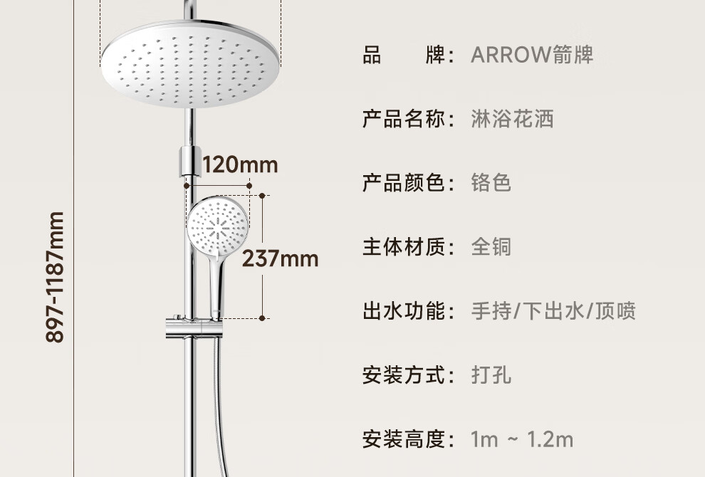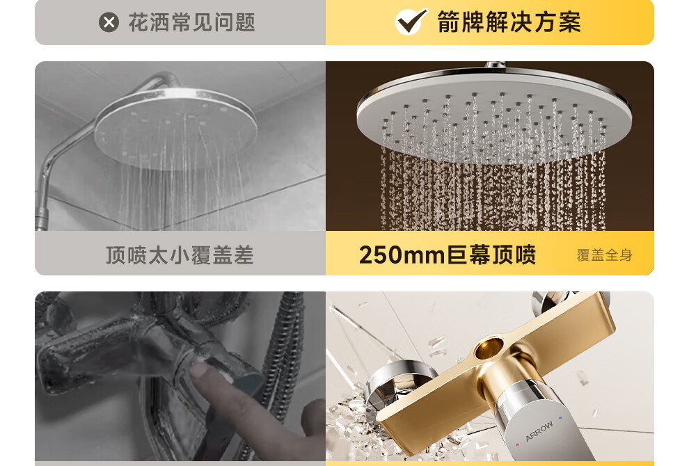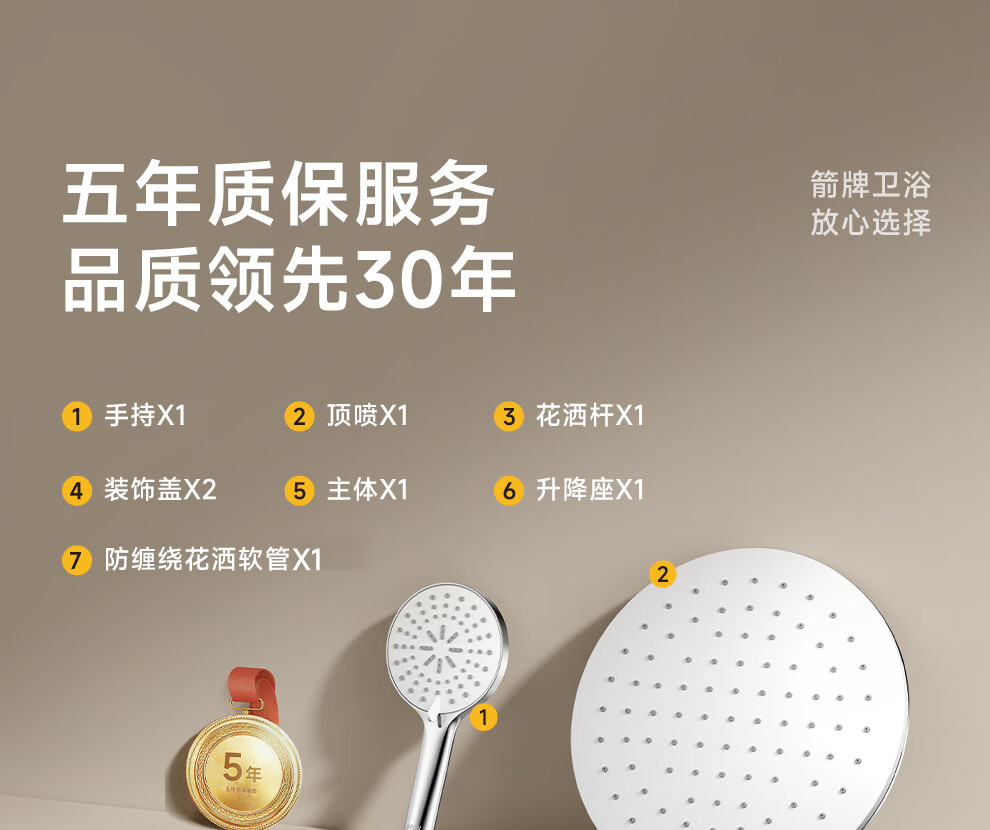 箭牌淋浴花洒套装 精铜主体增压淋浴花洒套装手持顶喷【政府补贴15%】