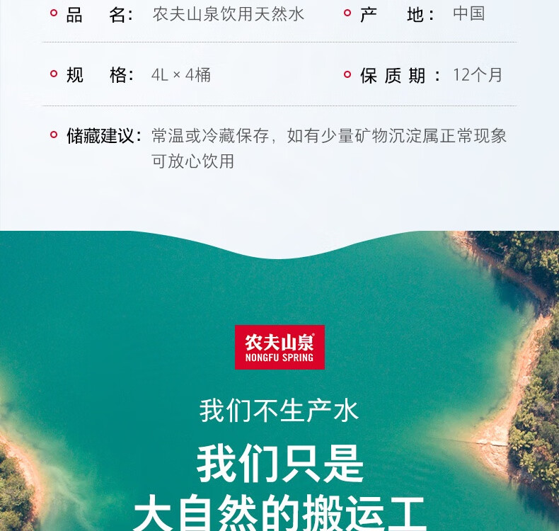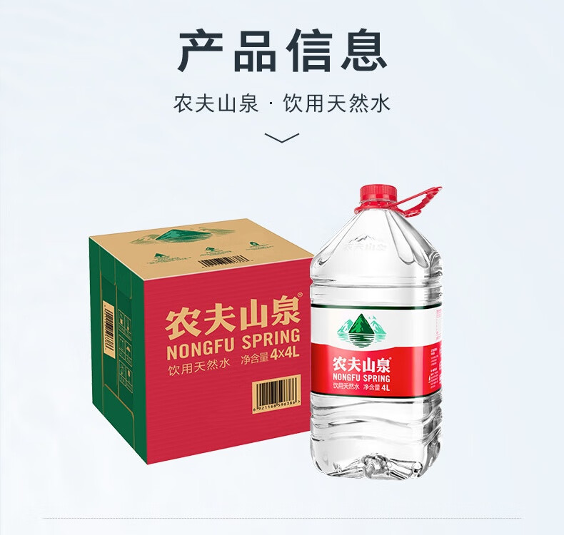 农夫山泉 饮用水 饮用天然水4L*4桶 整箱装 桶装水