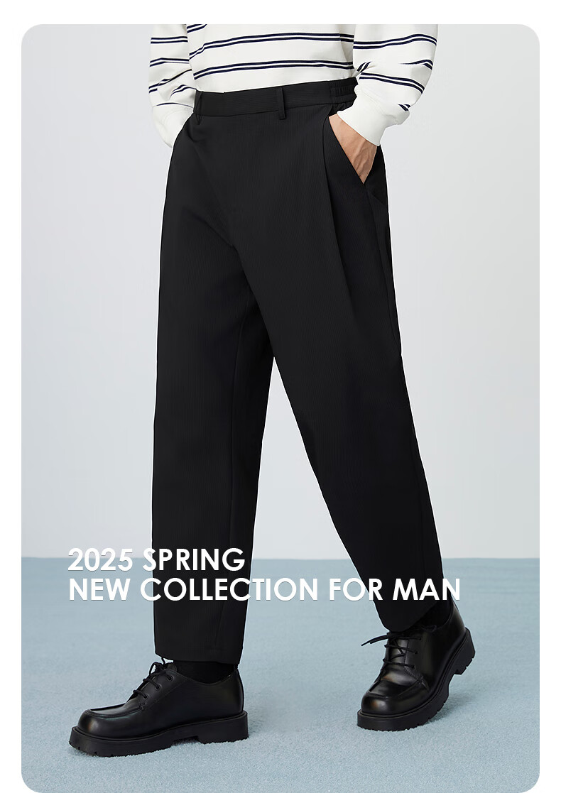 GXG男装【索罗娜】男士西裤通勤长裤25春新品 黑色 165/S