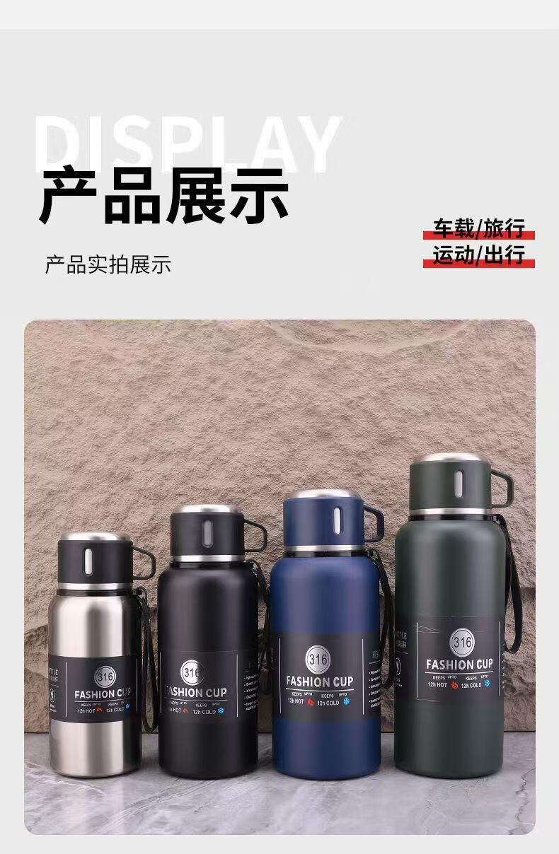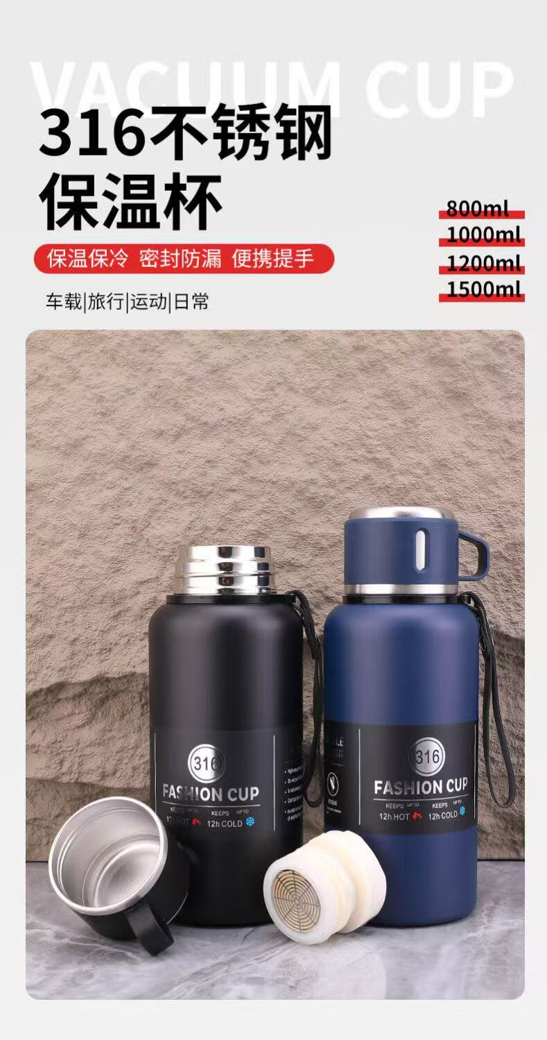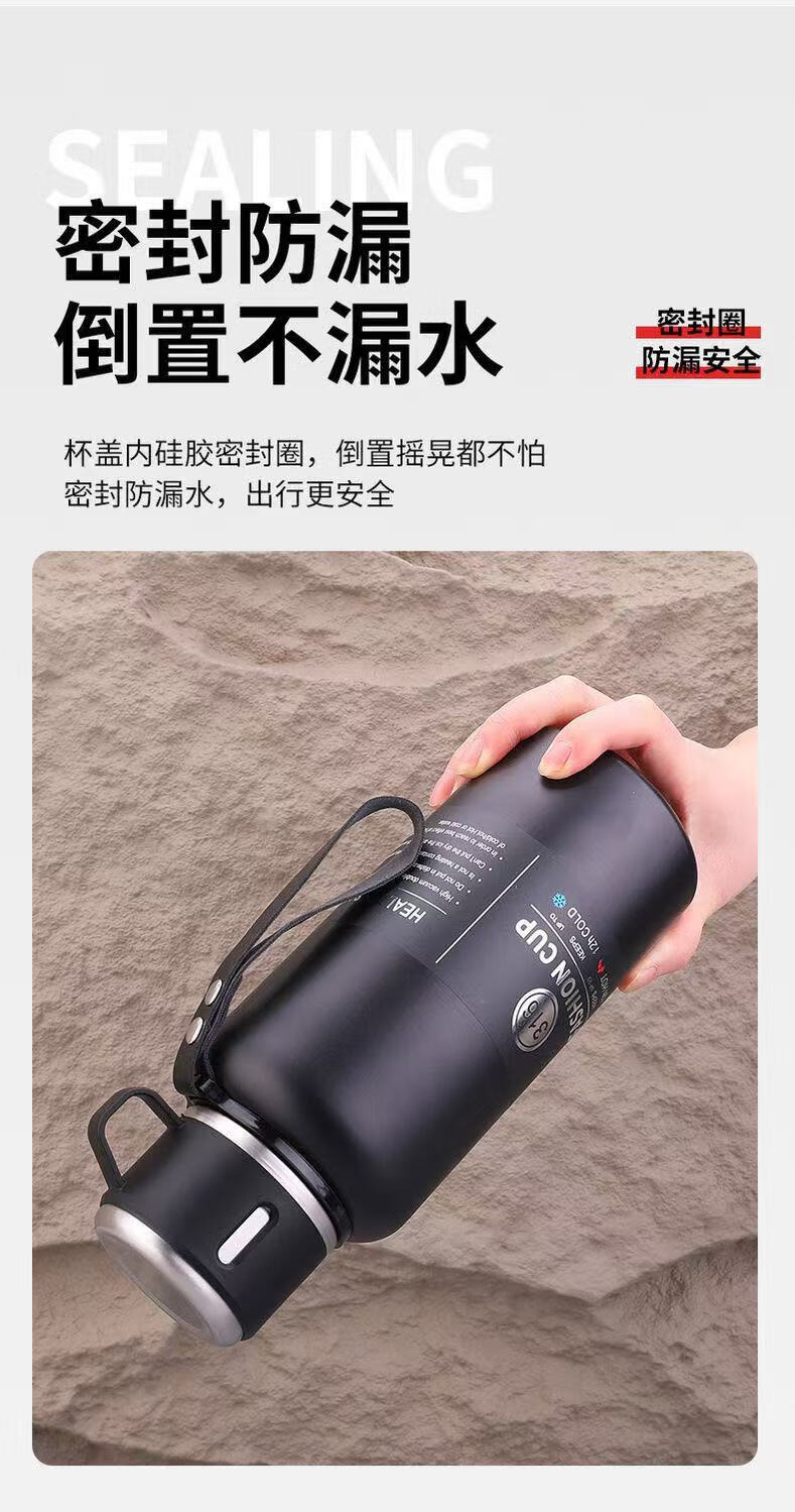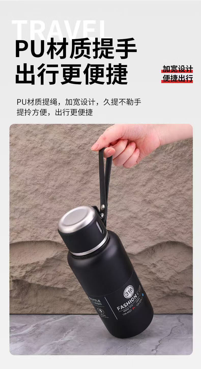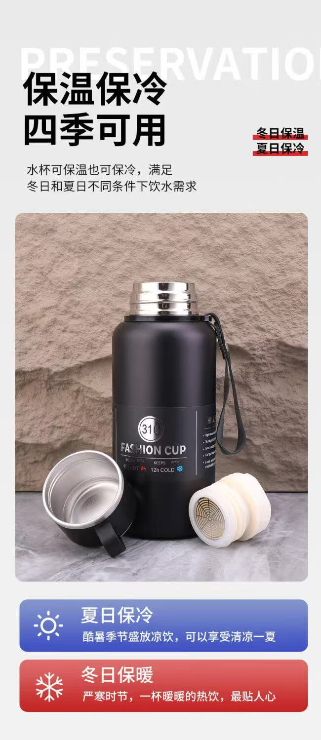 咏夏超大容量316不锈钢泡茶保温杯茶杯杯子户外车载便携旅行水壶水杯 800黑色+杯刷