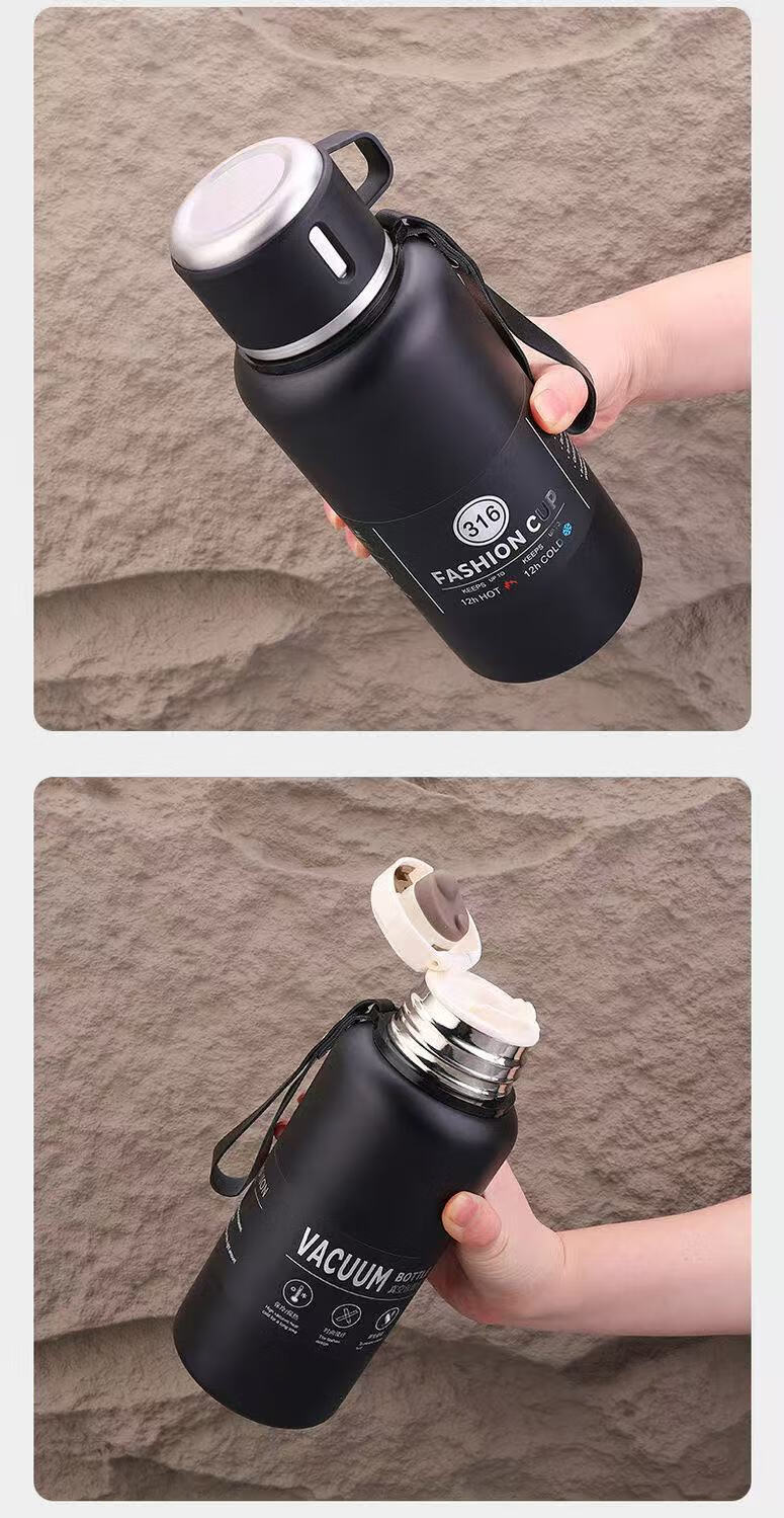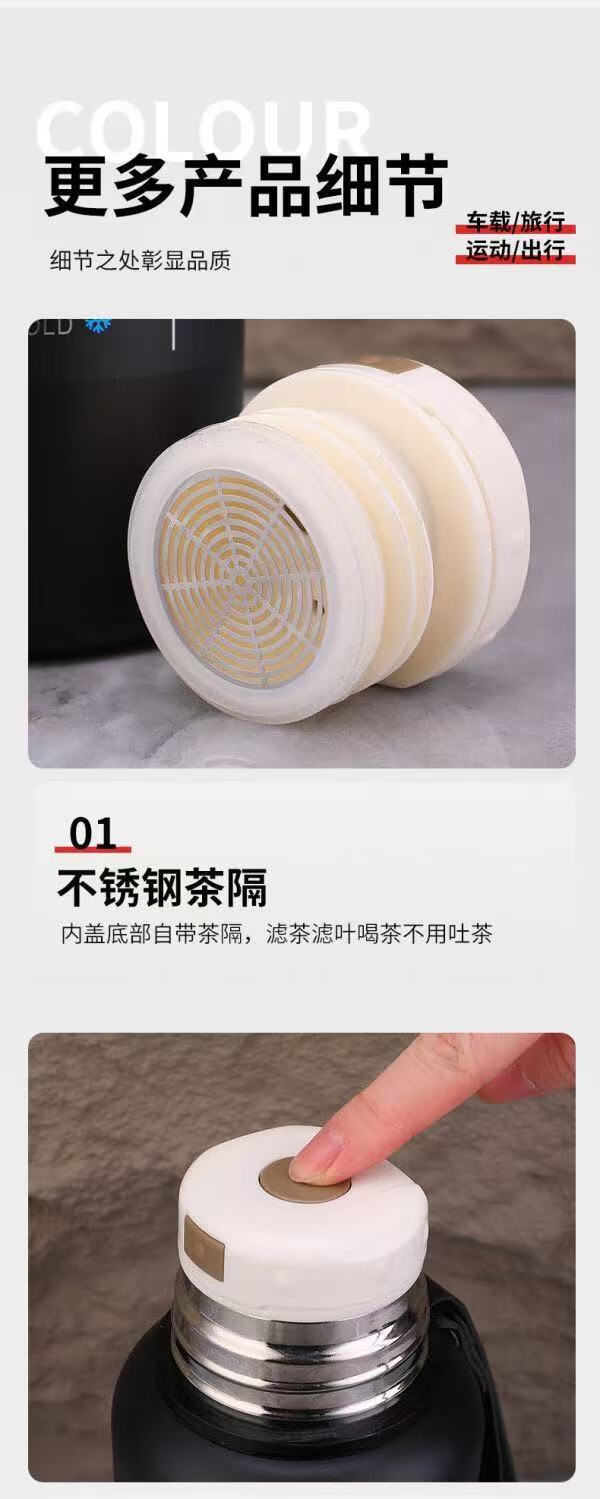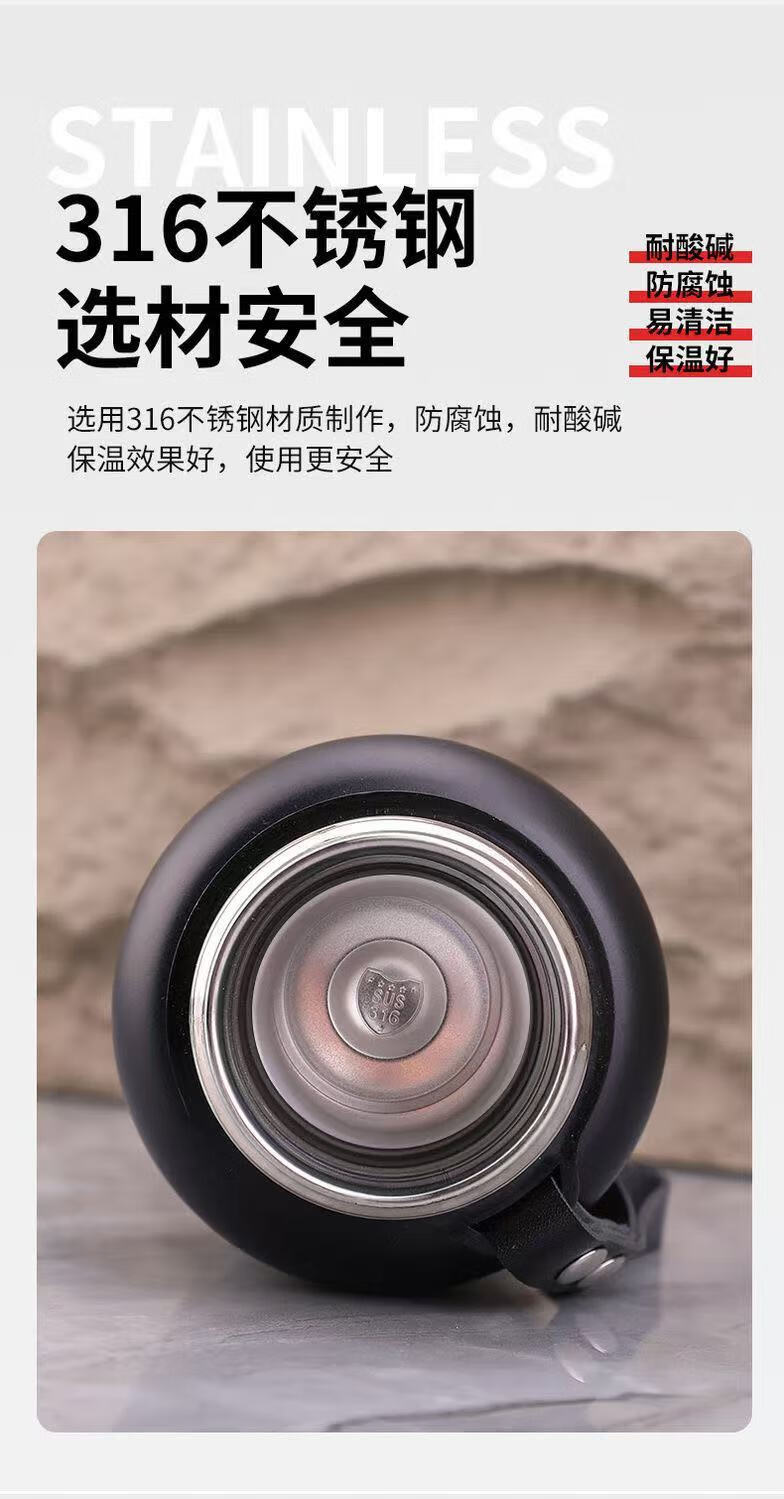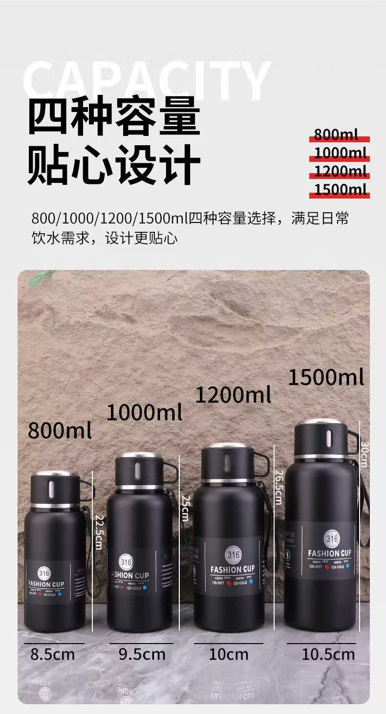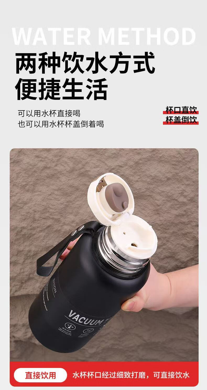 咏夏超大容量316不锈钢泡茶保温杯茶杯杯子户外车载便携旅行水壶水杯 800黑色+杯刷