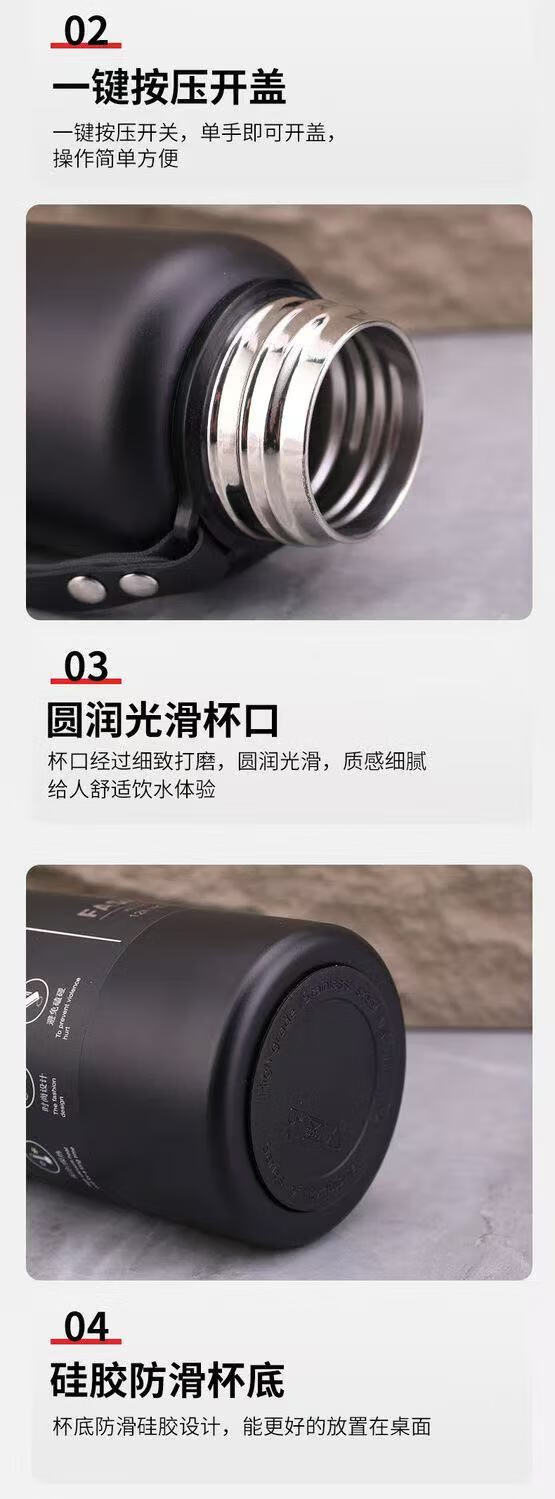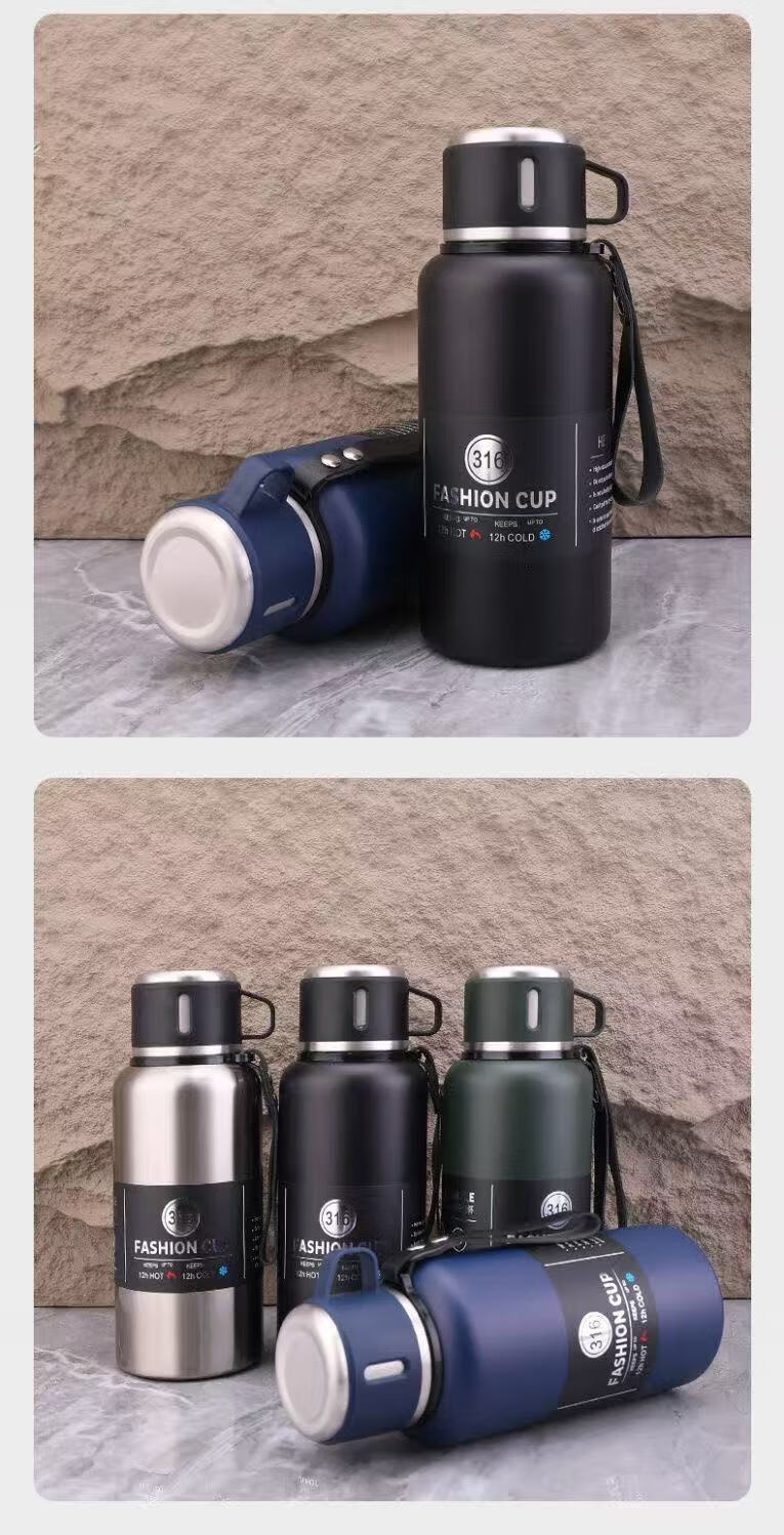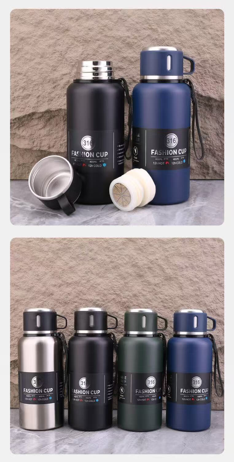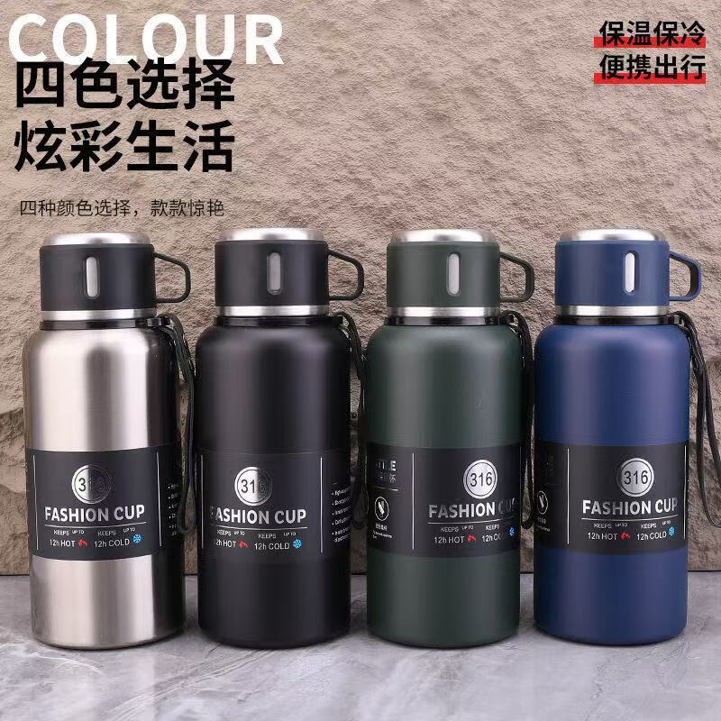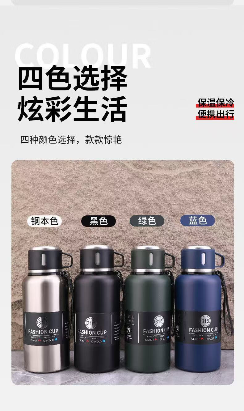 咏夏超大容量316不锈钢泡茶保温杯茶杯杯子户外车载便携旅行水壶水杯 800黑色+杯刷