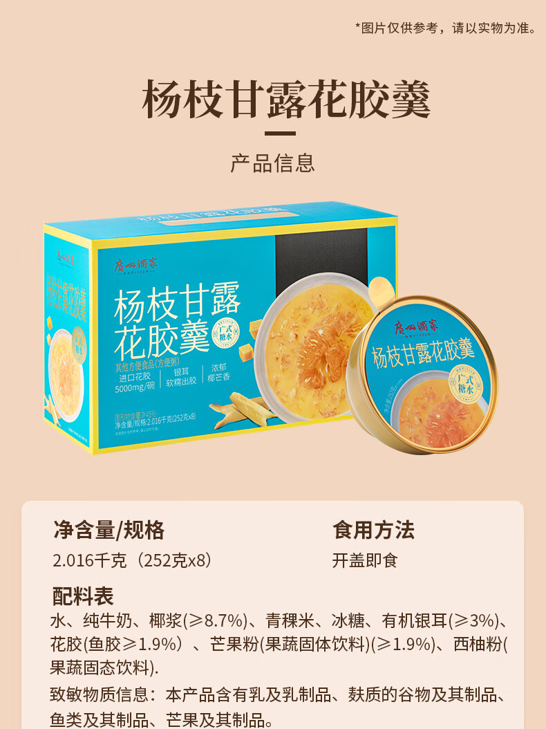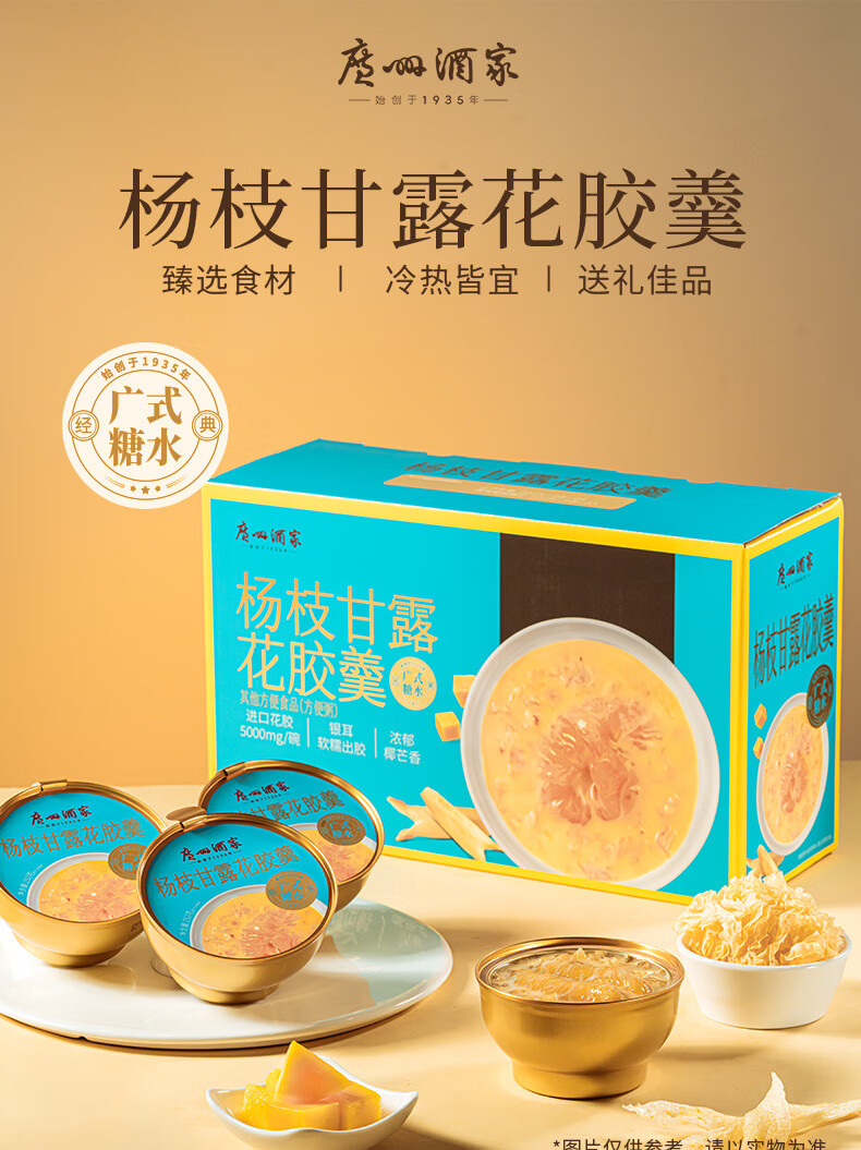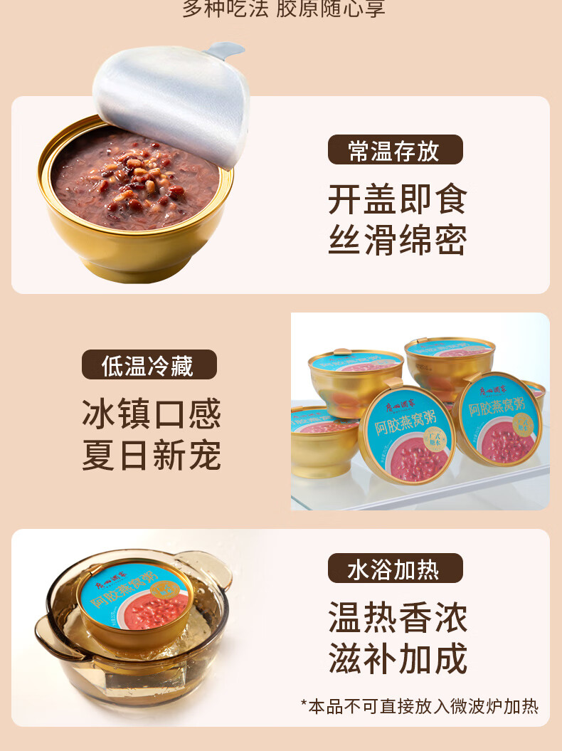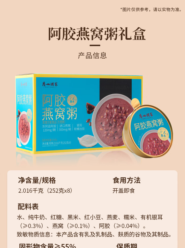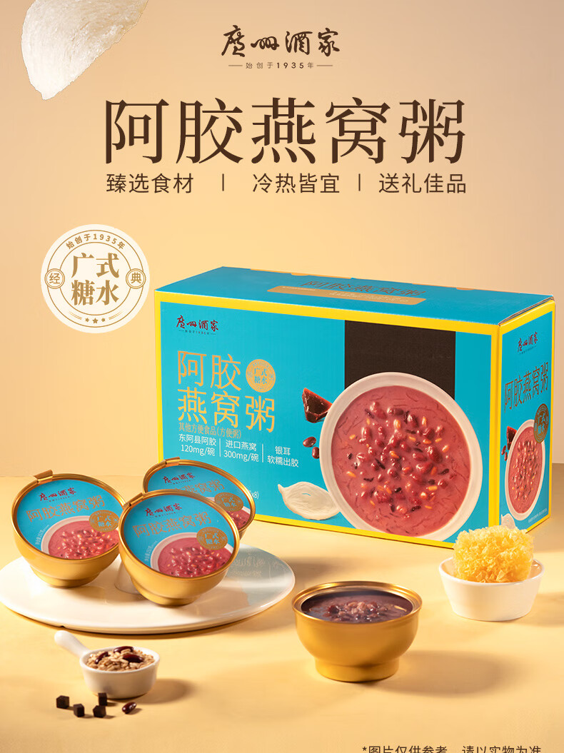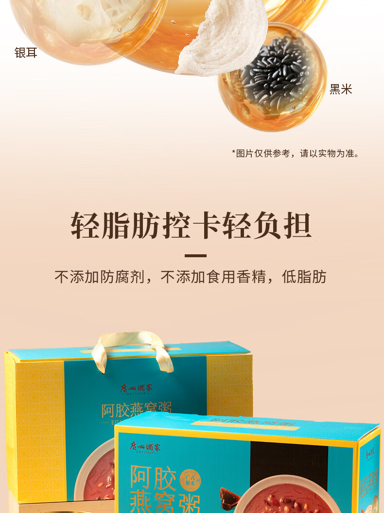 广州酒家糖水速食粥礼盒 阿胶燕麦粥杨枝甘露花胶羹椰粒开心果 过节送礼 【礼盒装】阿胶燕窝粥礼盒 2016g(8盒装)