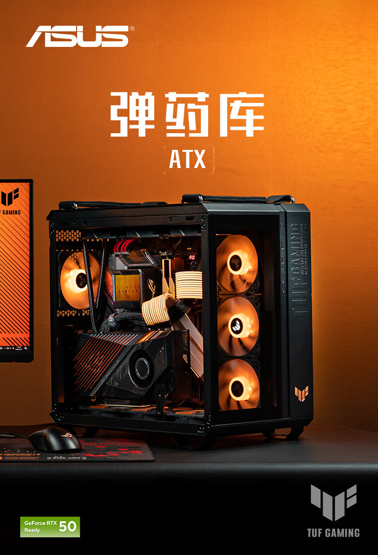 华硕TUF GAMING GT502 弹药库机箱 双仓设计/免工具拆卸/黑色海景房/创新散热/GPU支架